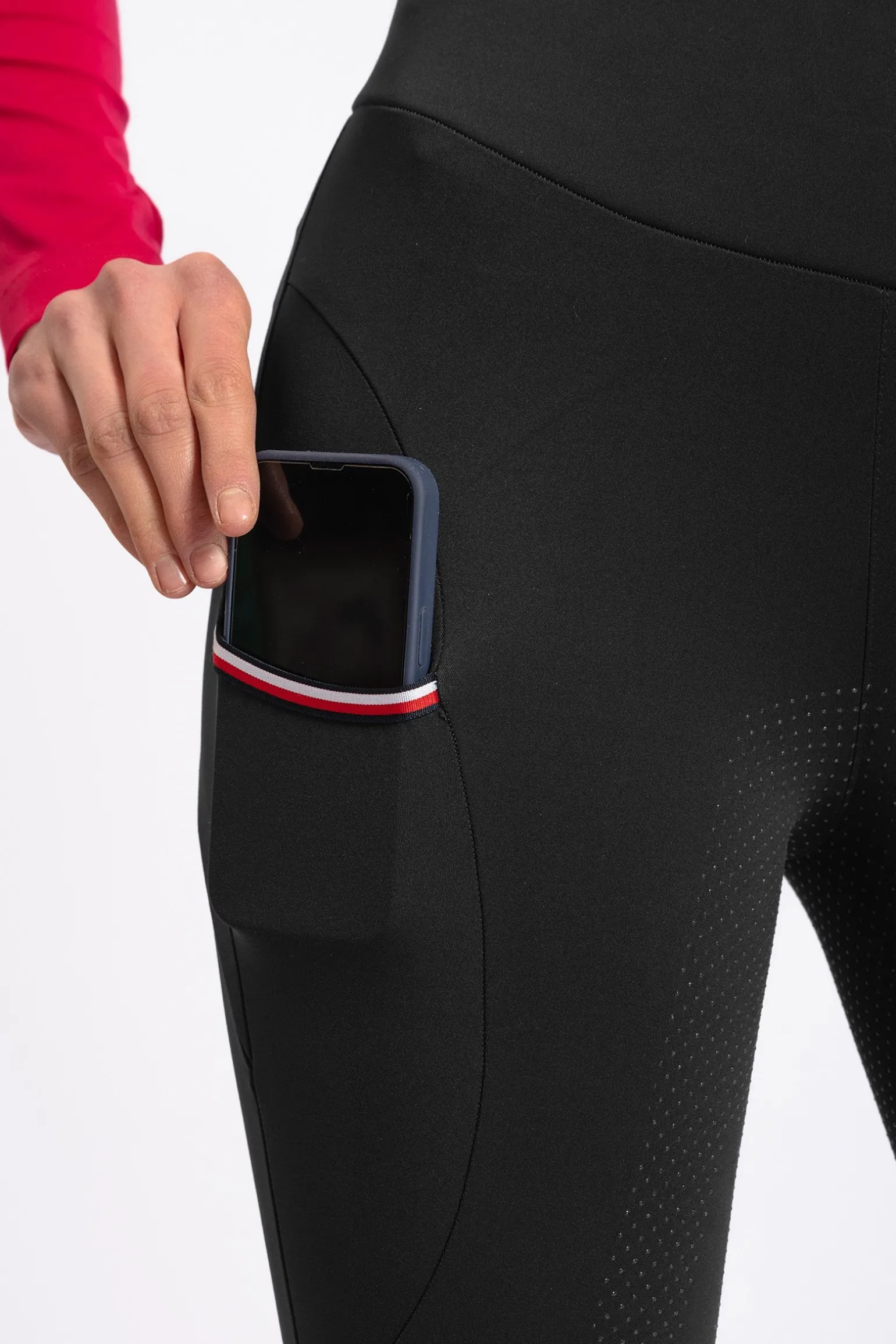 Ein Update der meistverkauften Tommy Hilfiger Logo-Leggings, die Elmira, benannt nach der Stadt, aus der Tommy Hilfigers Gründer stammt. Reite in Wärme und Komfort in dieser superstretchigen Thermo-Leggings mit breitem V-förmigem Bund für perfekte Passform und Formgebung, praktische Handy-Tasche am rechten Oberschenkel und Tommy Hilfiger-Branding am linken Oberschenkel. Mit reaktivem Wärmeausgleichsmaterial, das die Wärme bei wärmeren Temperaturen abgibt und bei kühleren Temperaturen einschließt, und einer gebürsteten Innenseite für zusätzliche Winterwärme.