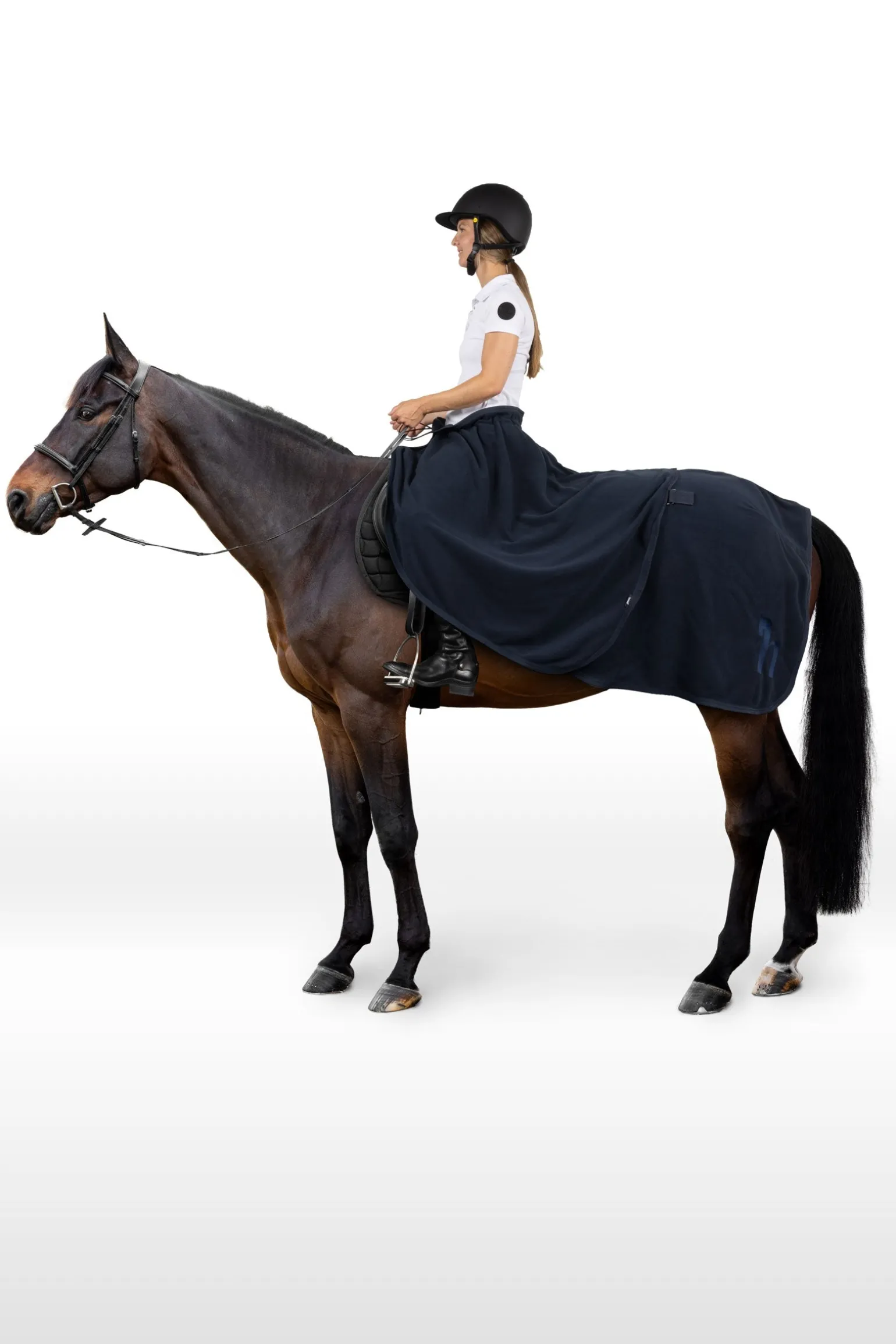 Fleece-Reitdecke mit abnehmbarem Teil für den Reiter – flexibel, komfortabel und praktisch im Einsatz.