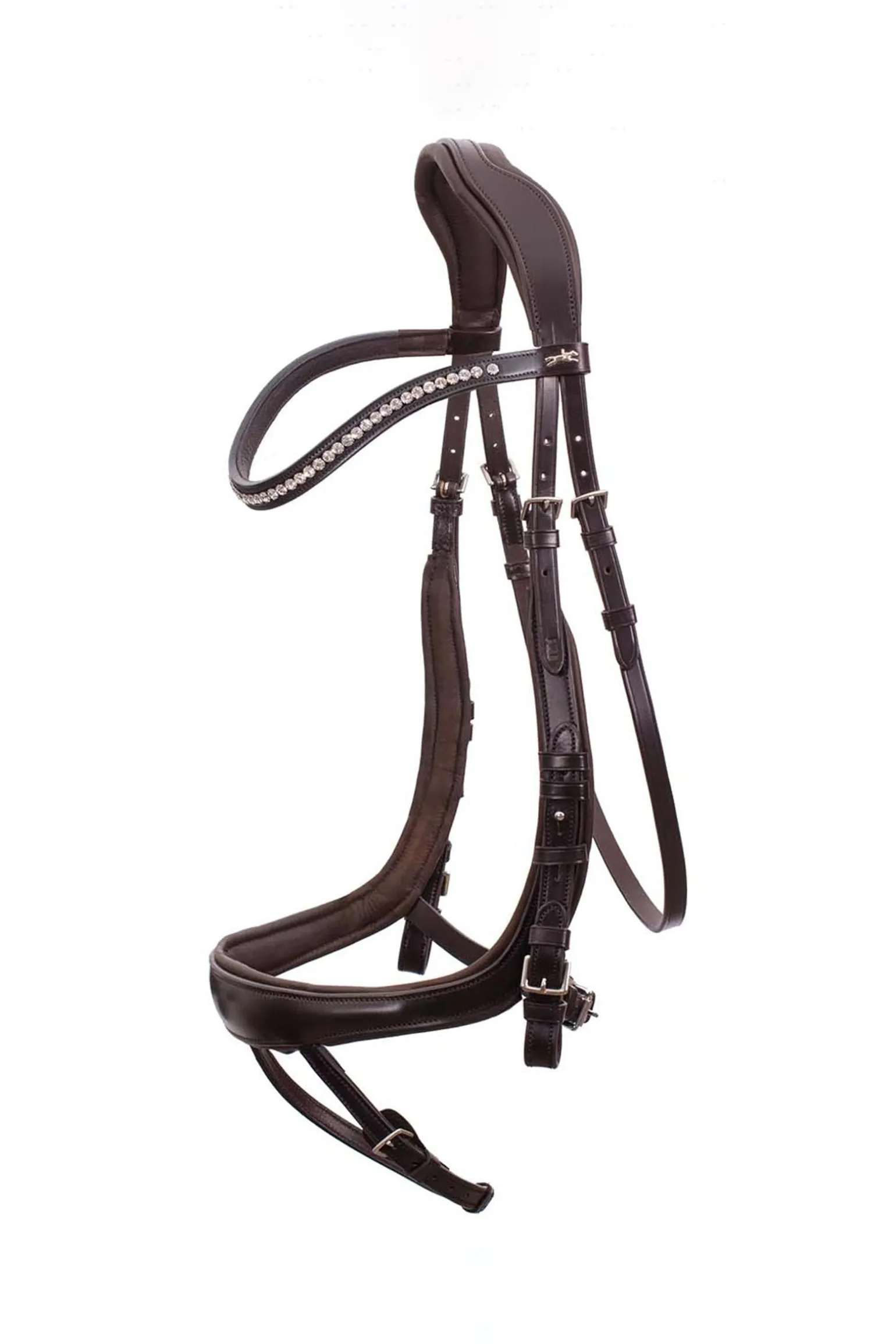 Nach dem durchschlagenden Erfolg des ersten international design-patentierten Trensen-Modells EQUITUS ALPHA wird mit der EQUITUS BETA die Serie anatomischer Spezialtrensen weiter fortgesetzt: Ein breiteres Nasenband und ein großzügig mit Kristallen versehenes Stirnband sorgen bei der EQUITUS BETA für einen klassisch- eleganten Look, der sich damit vom schlichteren Modell EQUITUS ALPHA abhebt.