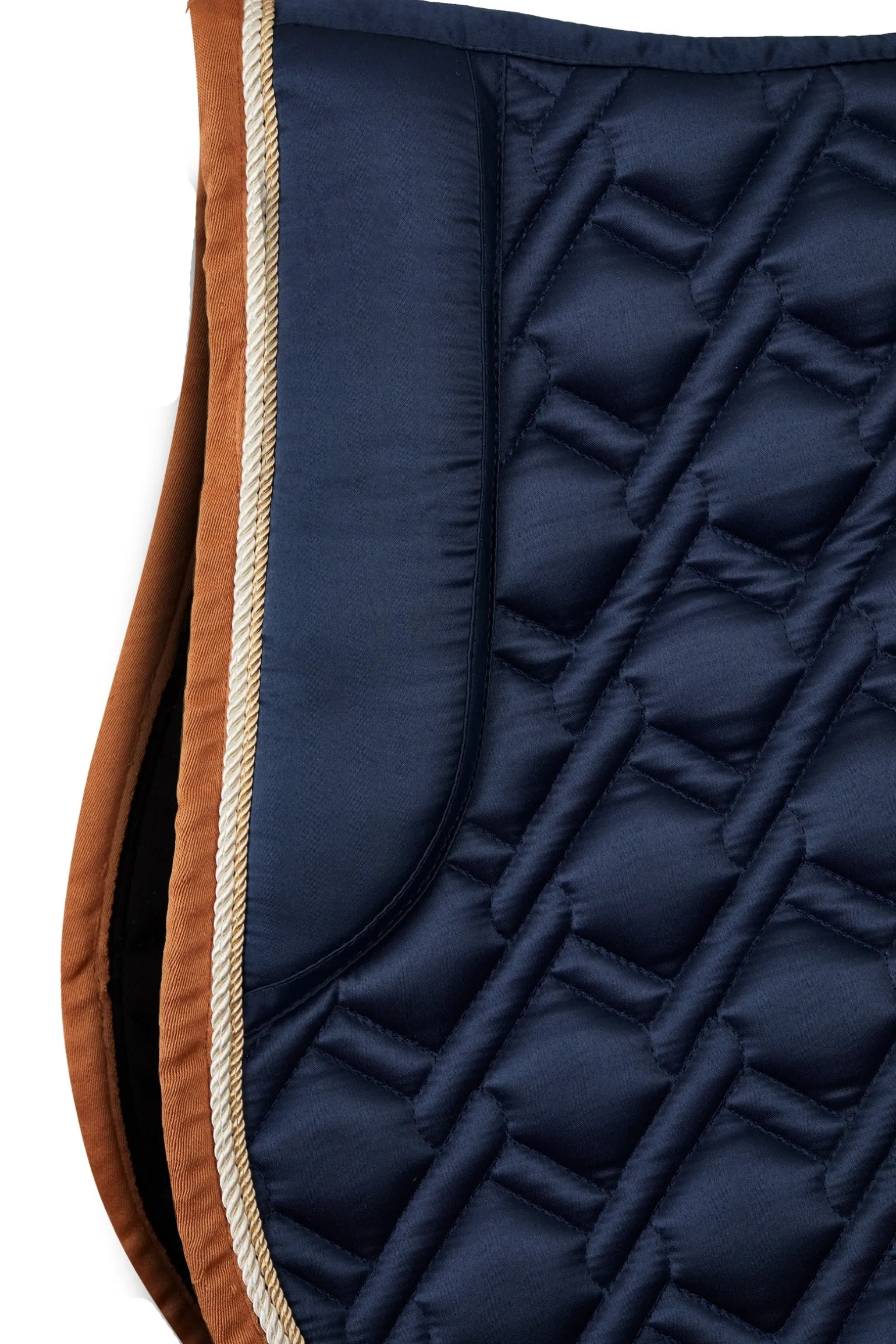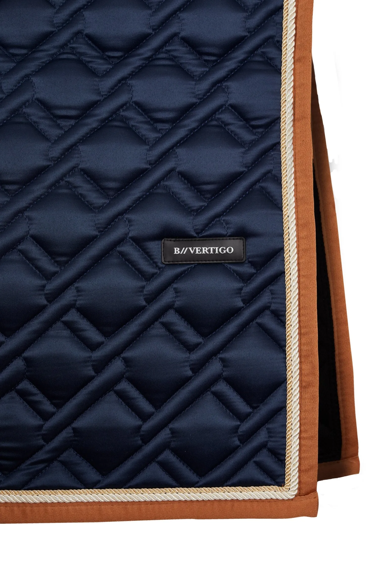 Diese Schabracke ist anatomisch geformt und passt sich perfekt an den Rücken deines Pferdes an. Das Anti-Rutsch-Polster sorgt dafür, dass der Sattel an seinem Platz bleibt. Die große, zaunartige Steppung sorgt für einen Hauch von Eleganz. Mit kontrastierenden Paspeln und Kordeln besticht diese Schabracke durch ihr raffiniertes Design. Die Gurtschlaufe ist mit einer Logostickerei verziert, die ein dezentes Markendetail darstellt. Die Schabracke ist zusätzlich mit einem zarten B Vertigo-Logo auf der linken Seite verziert und zeigt, wie viel Liebe zum Detail in dieser Schabracke steckt. Hebe deine Leistung mit der B Vertigo Evolve Springschabracke hervor.
