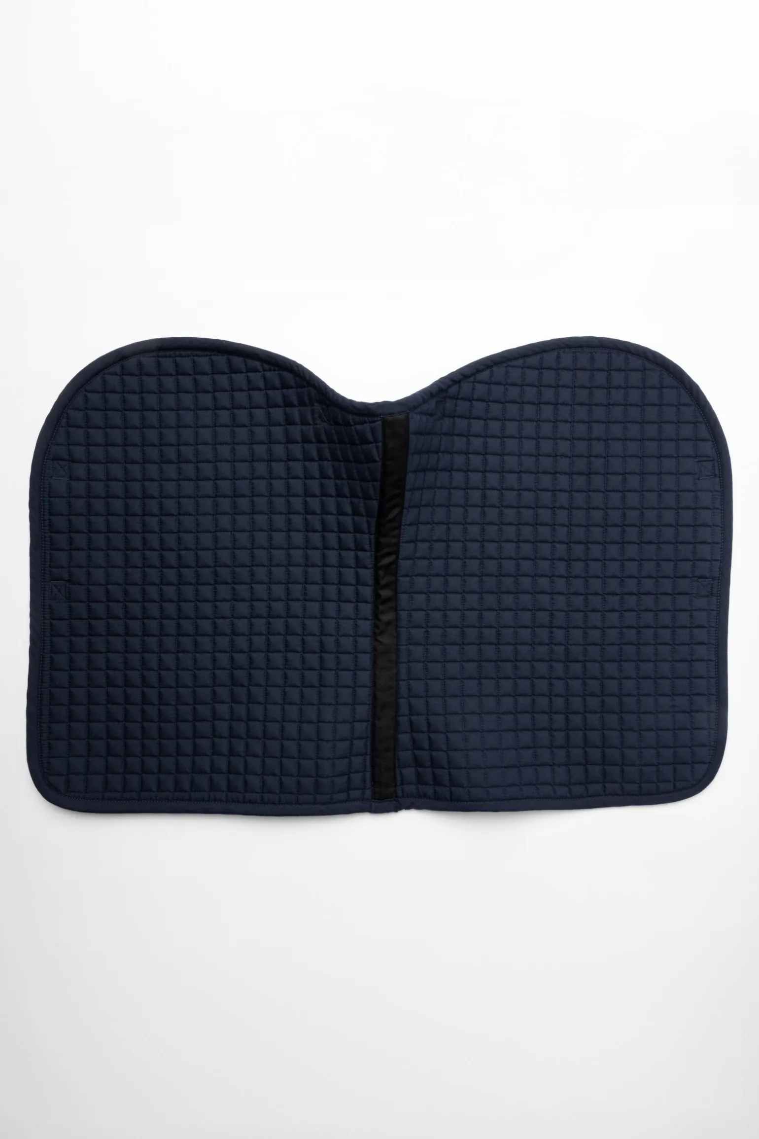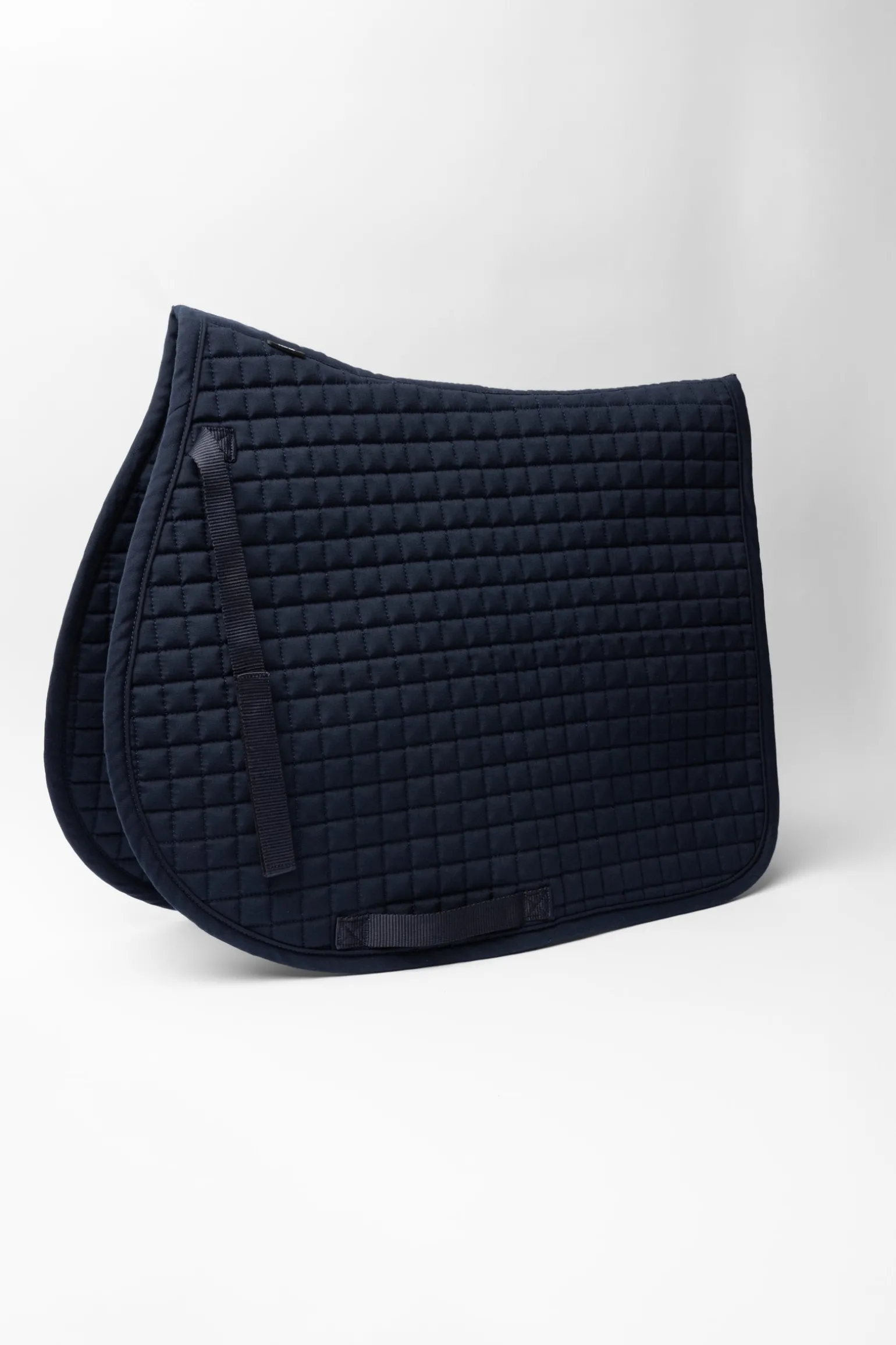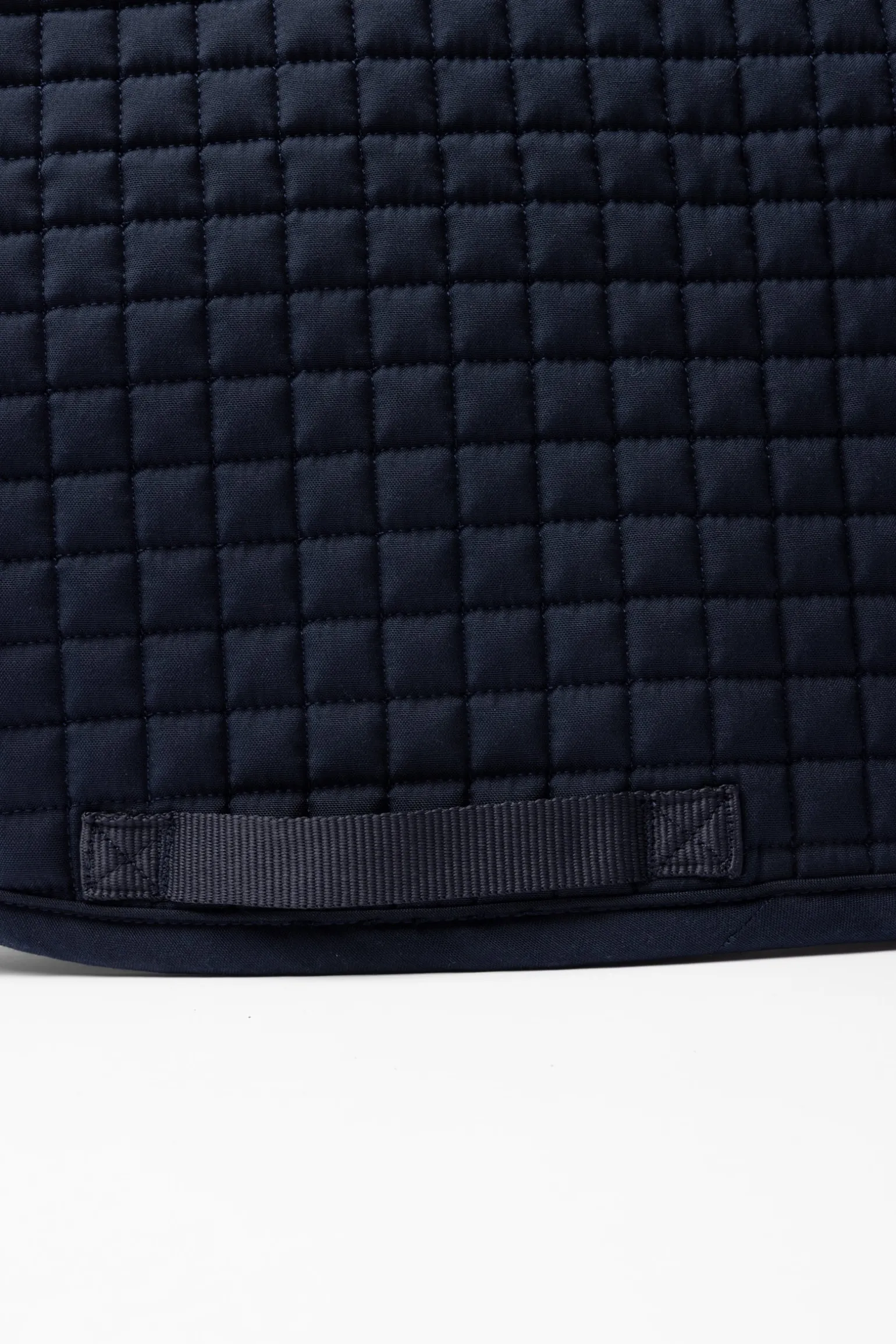 Diese Vielseitigkeitsschabracke kombiniert zeitlose Eleganz mit funktionalen Details. Das traditionelle quadratische Steppmuster sorgt nicht nur für ein stilvolles Erscheinungsbild, sondern auch für eine gleichmäßige Druckverteilung. Die robusten Nylon-Gurtstrippen mit Klettverschluss gewährleisten einen sicheren Sitz, während die Einfassung aus eigenem Stoff das Design harmonisch abrundet. Ein kleines Gummiabzeichen im Bereich des Widerrists setzt einen dezenten, aber stilvollen Akzent und verleiht der Schabracke eine edle Note.