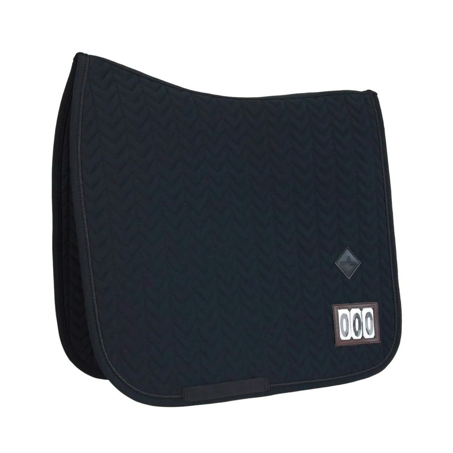 Die Fishbone Competition Saddle Pad verfügt über einen abnehmbaren Aufnäher aus Kunstleder, an dem du die Startnummer anbringen kannst (3 StartnummernSets werden mit der Schabracke geliefert). Diese Schabracke mit Fischgrät-Muster besteht aus einem atmungsaktiven Material (43% Nylon, 43% Polyester und 14% Elasthan) und eignet sich daher perfekt für Turniere oder das Training zu Hause. Du kannst den Aufnäher mit den Nummern auch durch ein Kentucky Logo ersetzen. Die Schabracke hat keine störenden Schlaufen zum Befestigen am Sattel, sondern nur einen Nylonriemen für den Gurt. Diese Schabracke hat ein dezentes Lederlogo in der gleichen Farbe wie die Schabracke und bietet dennoch genügend Platz, um sie bei Bedarf zu besticken. Maschinenwaschbar bei 30 °, kein Trockner.