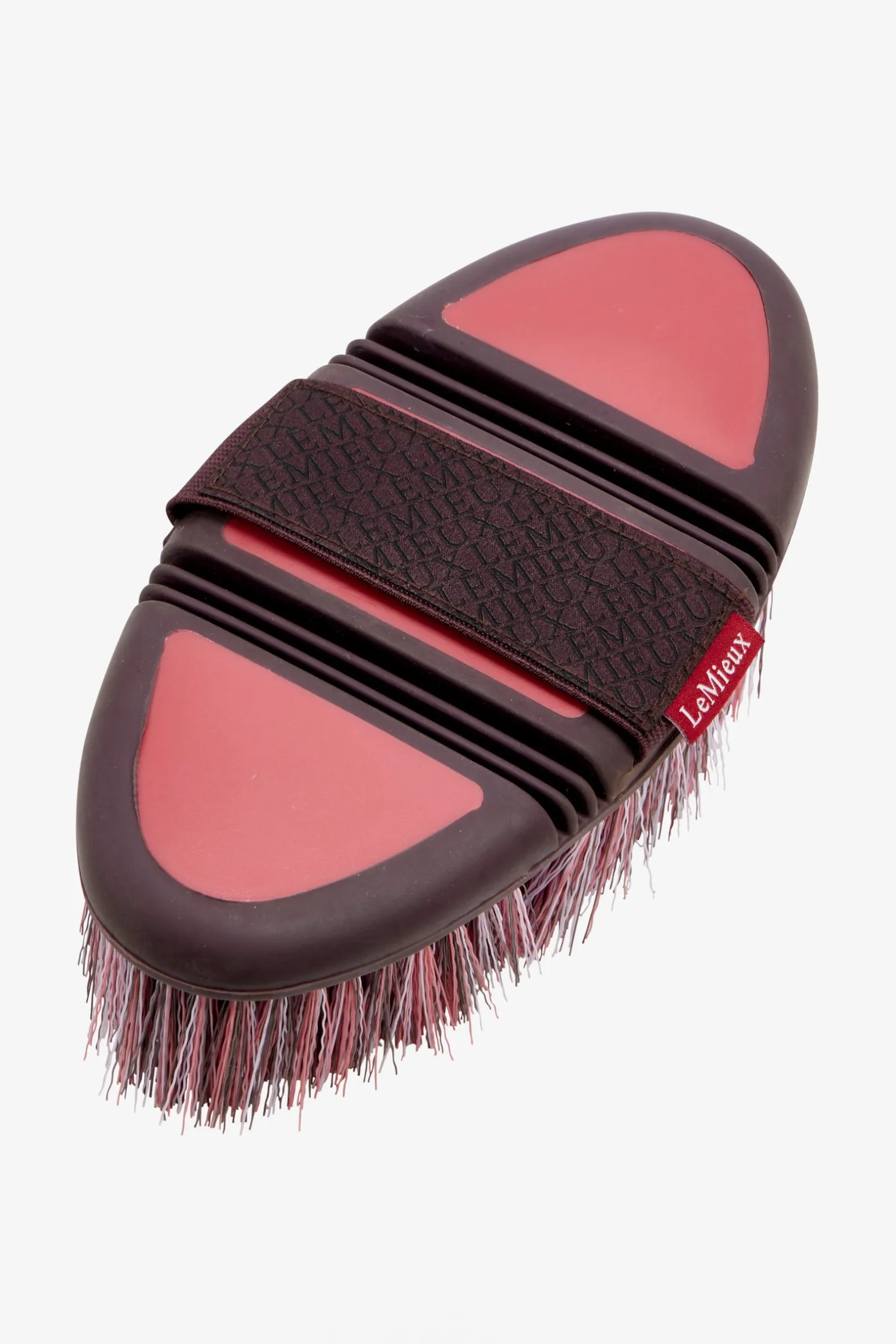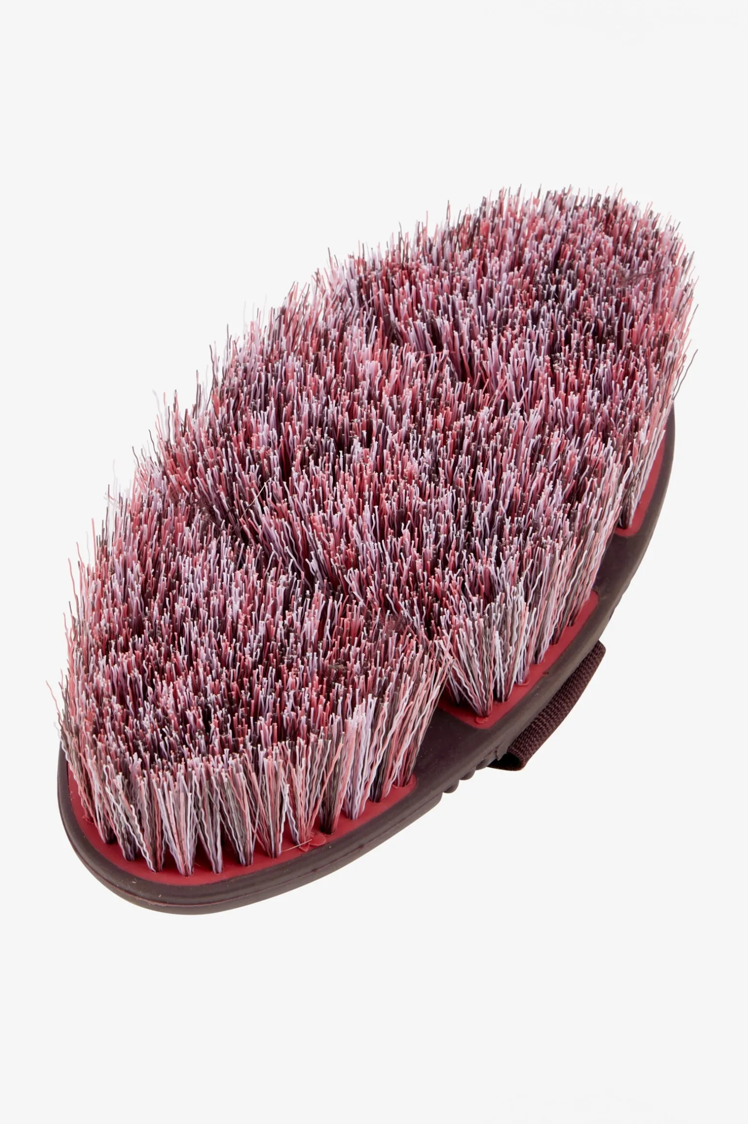 Ist dies die tollste Pferdepflegebürste auf dem Markt? Die langen, zurückfedernden Borsten eignen sich perfekt, um Staub und Schmutz vom Fell zu entfernen, während die flexible Form mühelos jede Kontur erreicht. Durch den elastischen Webriemen liegt sie perfekt in der Hand.