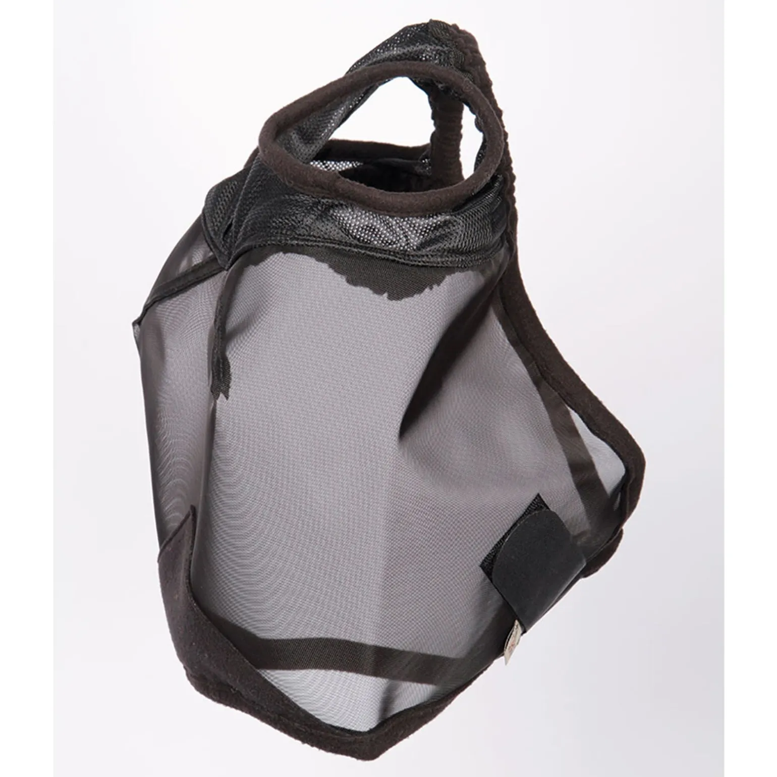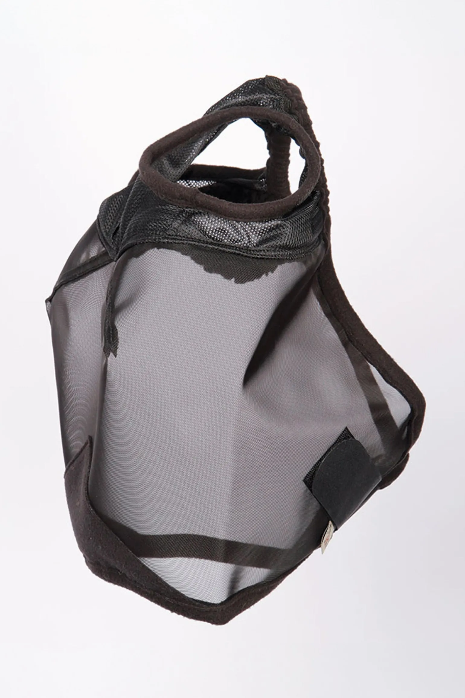 Fliegenmaske mit ausgestellten Nähten, um die Augen und Wimpern freizuhalten. Aus Netz und Lycra mit Fleecebesatz.