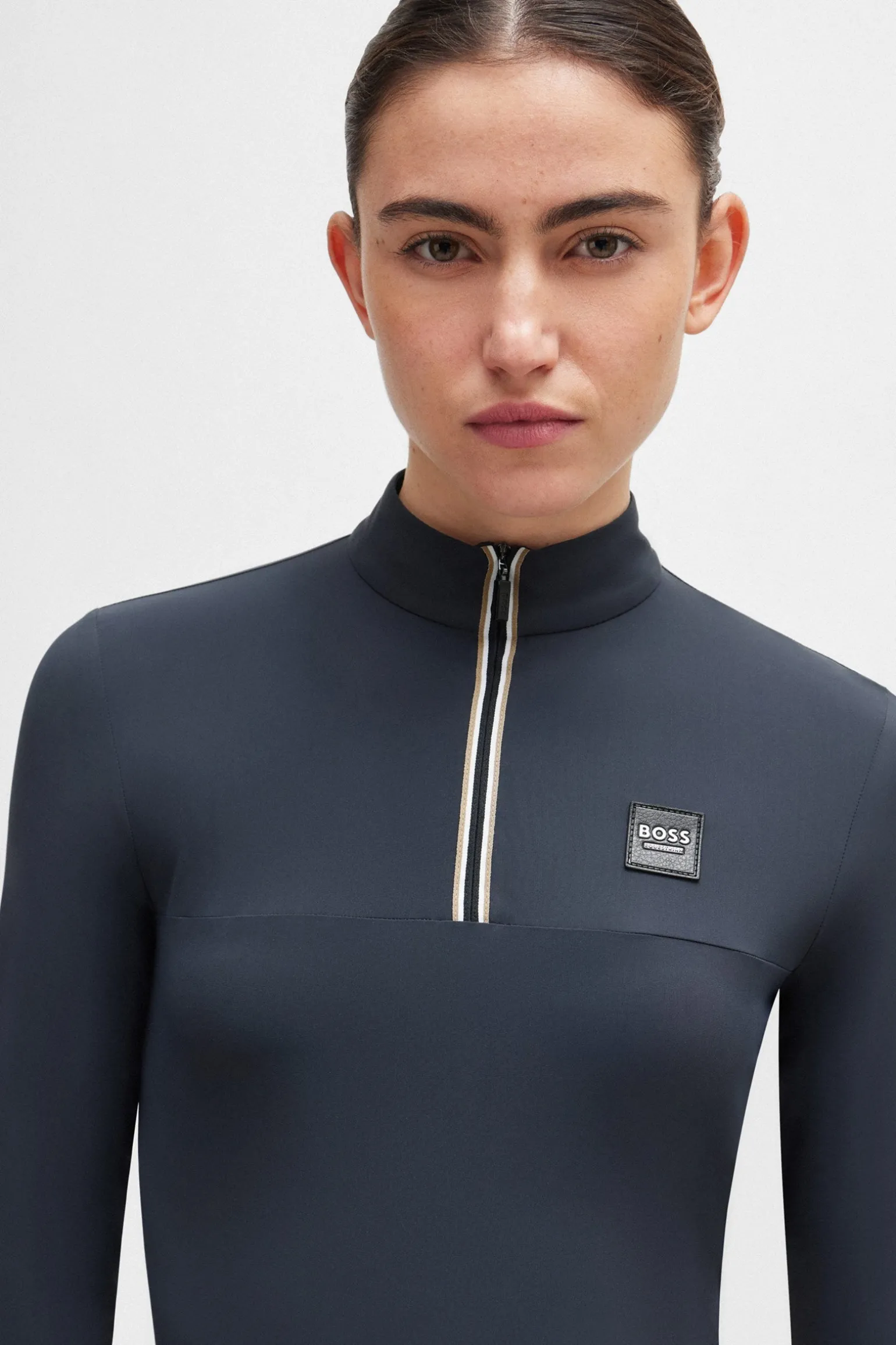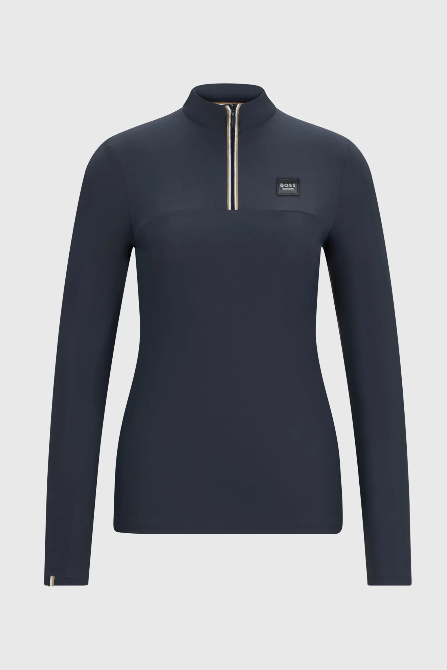 1st Layer Trainingsshirt mit Signature Stripe Piping entlang des Reißverschlusses, kleiner Signature Stripe Flag auf dem rechten Ärmel oberhalb der Manschette und BOSS Logo Patch aus Kunstleder auf der linken Brust.