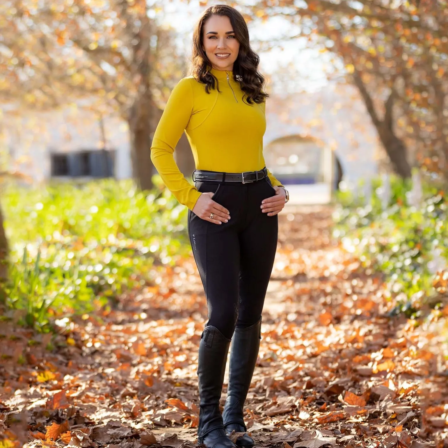 Die LeMieux Freya Reithose ist aus weichem, sehr strapazierfähigem Material gefertigt und ist sowohl stylisch als auch praktisch. Der 4-Wege-Stretch und das nahtlose Design sorgen für maximalen Komfort. Die leichte Reithose bietet volle Bewegungsfreiheit und sitzt durch den stützenden, hohen Bund an der gewünschten Stelle. Die charakteristischen, abgesenkten Schwungtaschen sind perfekt platziert, um dein Handy ohne Einschränkung während des Ritts sicher aufzubewahren. Der Silikon Vollbesatz sorgt für ein sicheres Gefühl und Halt im Sattel, während das schmal zulaufende Bein mit nahtlosen anatomischen Elast-Bündchen für zusätzlichen Komfort sorgt. Abgerundet wird die Hose mit einem elastischen Bund und Paspelierung.