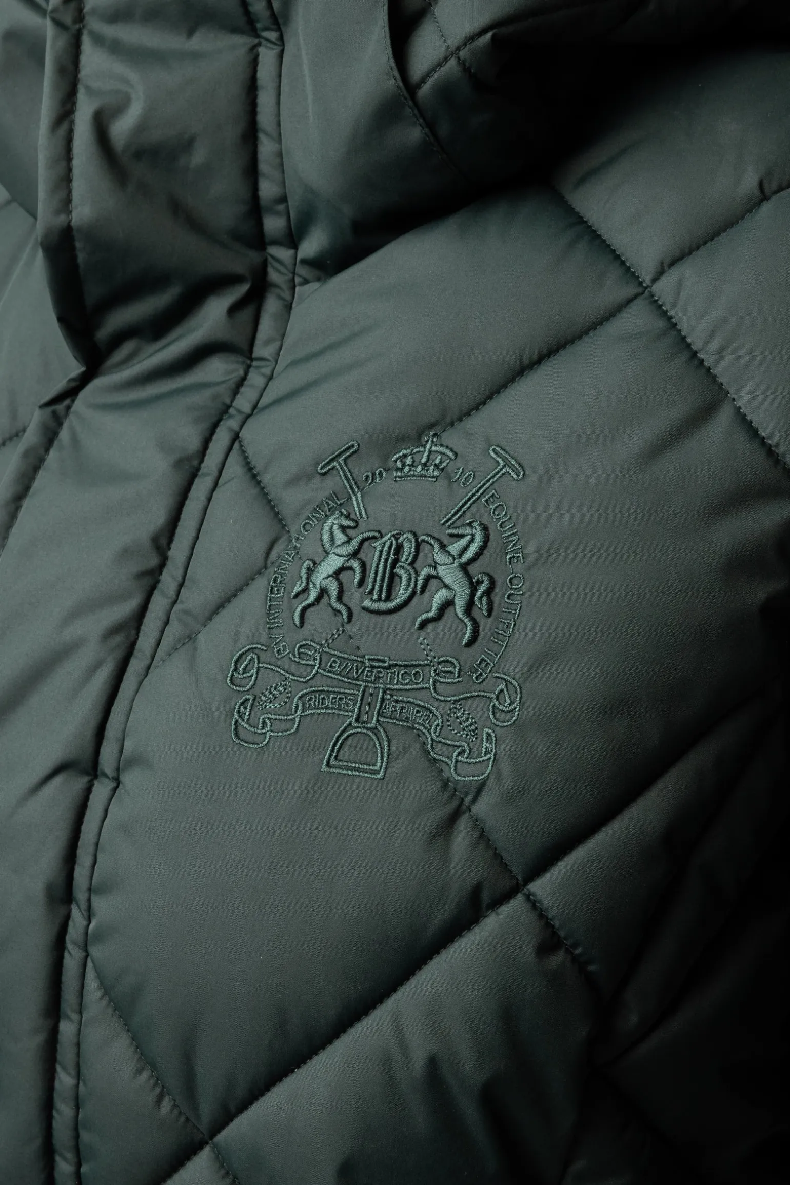 Dieser Mantel hat eine Wasserdichte von 3000 mm, damit du auch an Regentagen trocken bleibst. Mit einer Atmungsaktivität von 3000mvp lässt sie Feuchtigkeit entweichen und hält dich von innen trocken und komfortabel. Die warme Wattierung sorgt für eine hervorragende Isolierung und hält dich bei kühlen Temperaturen warm. Der längere Schnitt bietet erweiterte Abdeckung und Schutz. Die storm cuffs verhindern, dass Wind und Regen durch die Ärmel eindringen. Die abnehmbare Kapuze sorgt für Vielseitigkeit und ermöglicht es dir, dich an wechselnde Wetterbedingungen anzupassen. Der Öffnungsschlitz am Rücken erhöht die Bewegungsfreiheit, während die elastischen Riemen es dir ermöglichen, den Mantel während des Reitens an deinen Beinen zu befestigen.