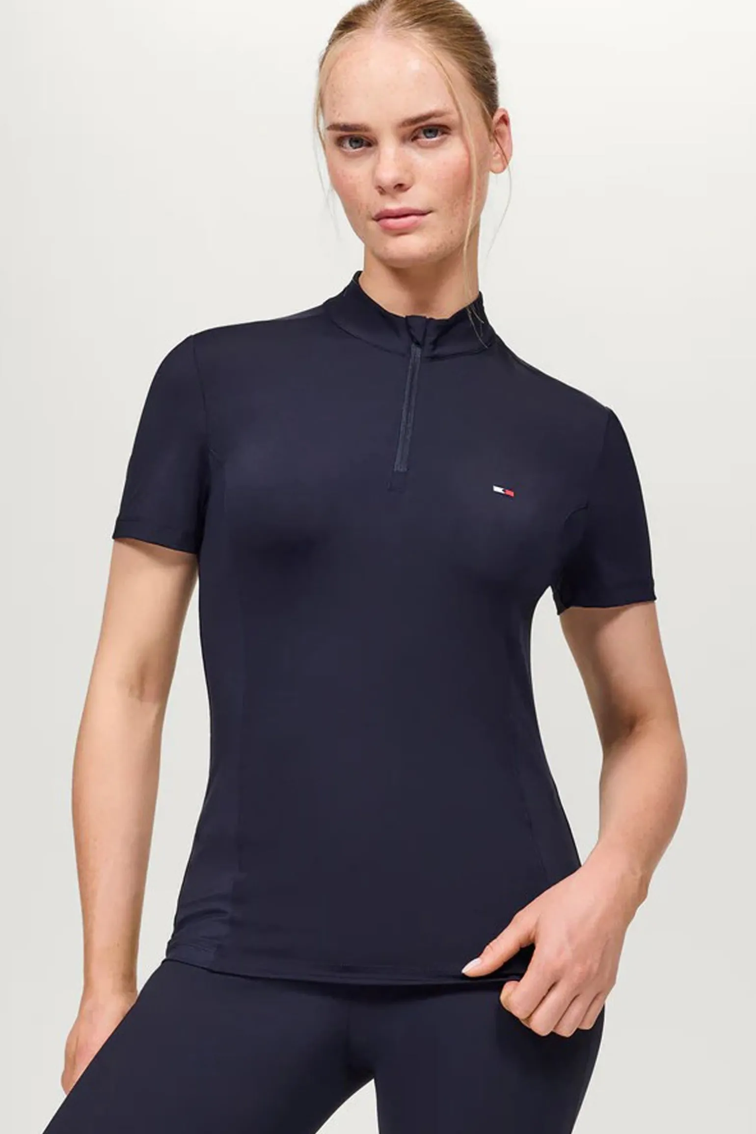 Erlebe ultimativen Komfort und Stil mit unserem Train Top Genoa! Der verdeckte Reißverschluss mit Tommy Hilfiger Logo verleiht dem klassischen Design eine besondere Note, während das leichte 4-Wege-Stretchmaterial sich wie eine zweite Haut anfühlt. Die figurbetonte Passform mit seitlichen Einsätzen sorgt bei jedem Training für eine schmeichelhafte Silhouette.