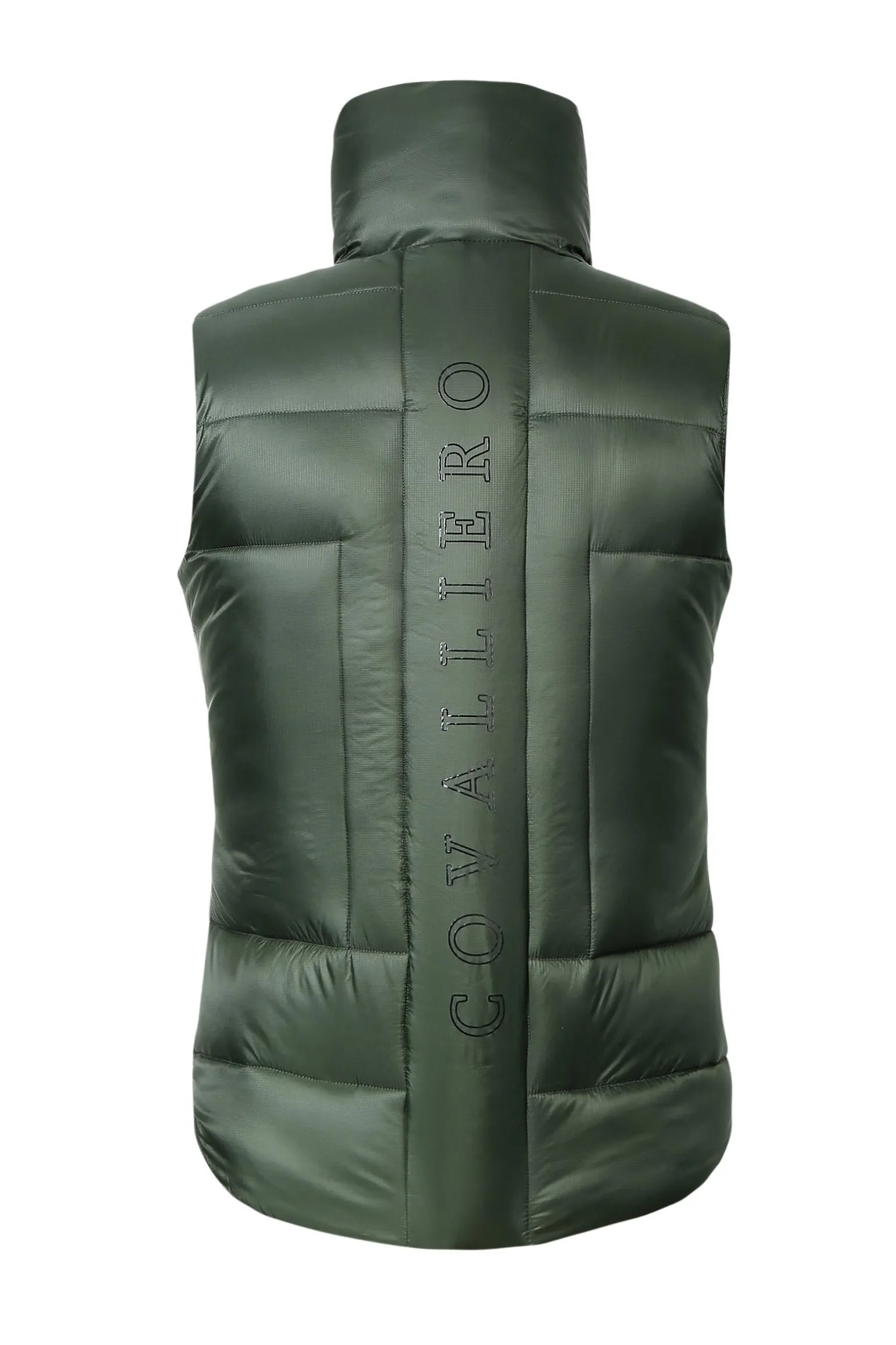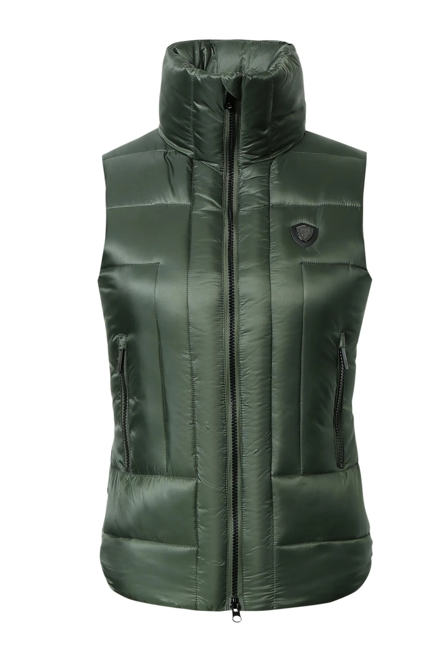 Die Weste mit femininem Schnitt ist ein praktischer Begleiter im Alltag und auch im Stall. Der hohe Kragen, wasserabweisendes Material und extra wärmende Taschen für die Hände halten dich auch bei ungemütlichem Wetter warm.
