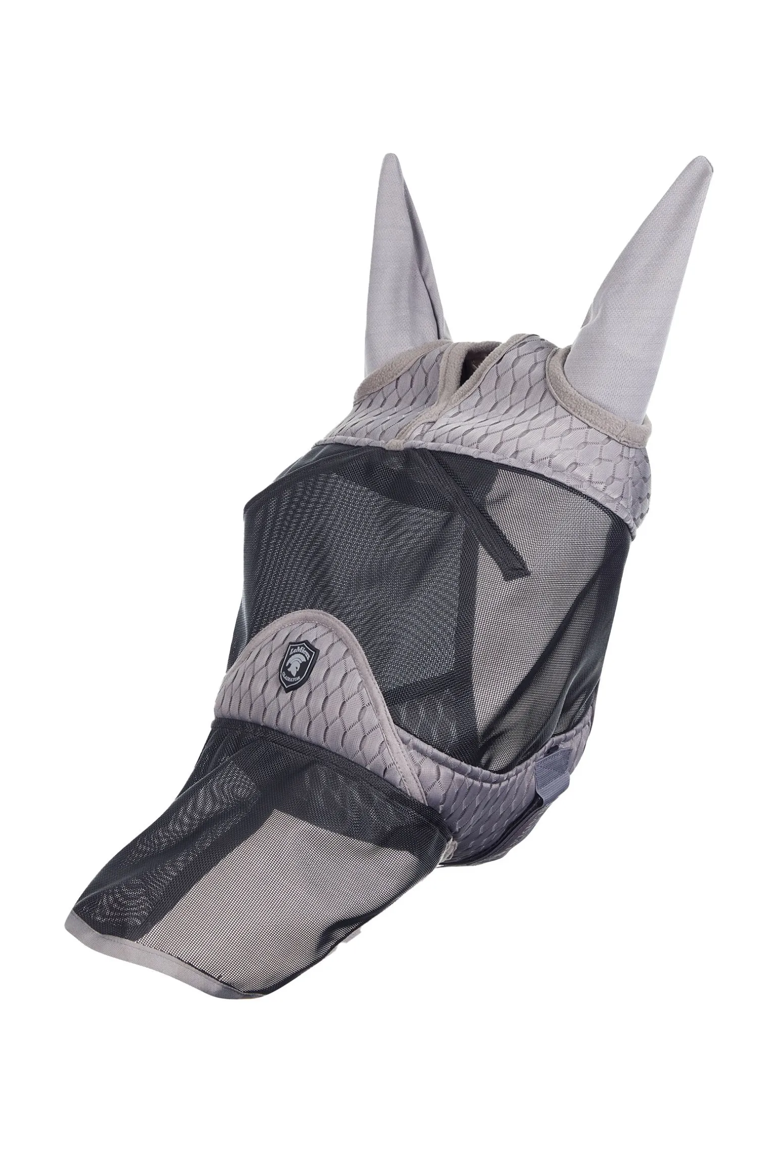 Als ultimativer Fliegenschutz sind die LeMieux Gladiator Fliegenmasken super robust und langlebig und bieten deinem Pferd gleichzeitig höchsten Komfort. Das kräftige schwarze UV-Schutznetz ist ultra-stark und macht diese Maske perfekt für den Turniereinsatz, und die dunkle Farbe blockiert schädliche UV-Strahlen. Eine großzügige Passform über den Augenabnähern, die ein Abheben über das Gesicht ermöglicht, sowie weiche, atmungsaktive Bambusfutterstreifen über Stirn und Nase verhindern Reibung und sorgen für Freiraum über den Augen. Das Obermaterial aus grauem 3D-Carbonmesh sorgt für reichlich Luftzirkulation, um dein Pferd kühl zu halten, und das elastische Kopfstück und der Kehlriemen sorgen für einen festen Sitz. Der Vorderschlitz im Stirnbereich sorgt für mehr Komfort und Sicherheit. Atmungsaktive Ohren aus Mesh verhindern Irritationen durch Fliegen und Mücken und der verlängerte Nasenbereich bietet empfindlichen Nasen einen UV-Schutz.