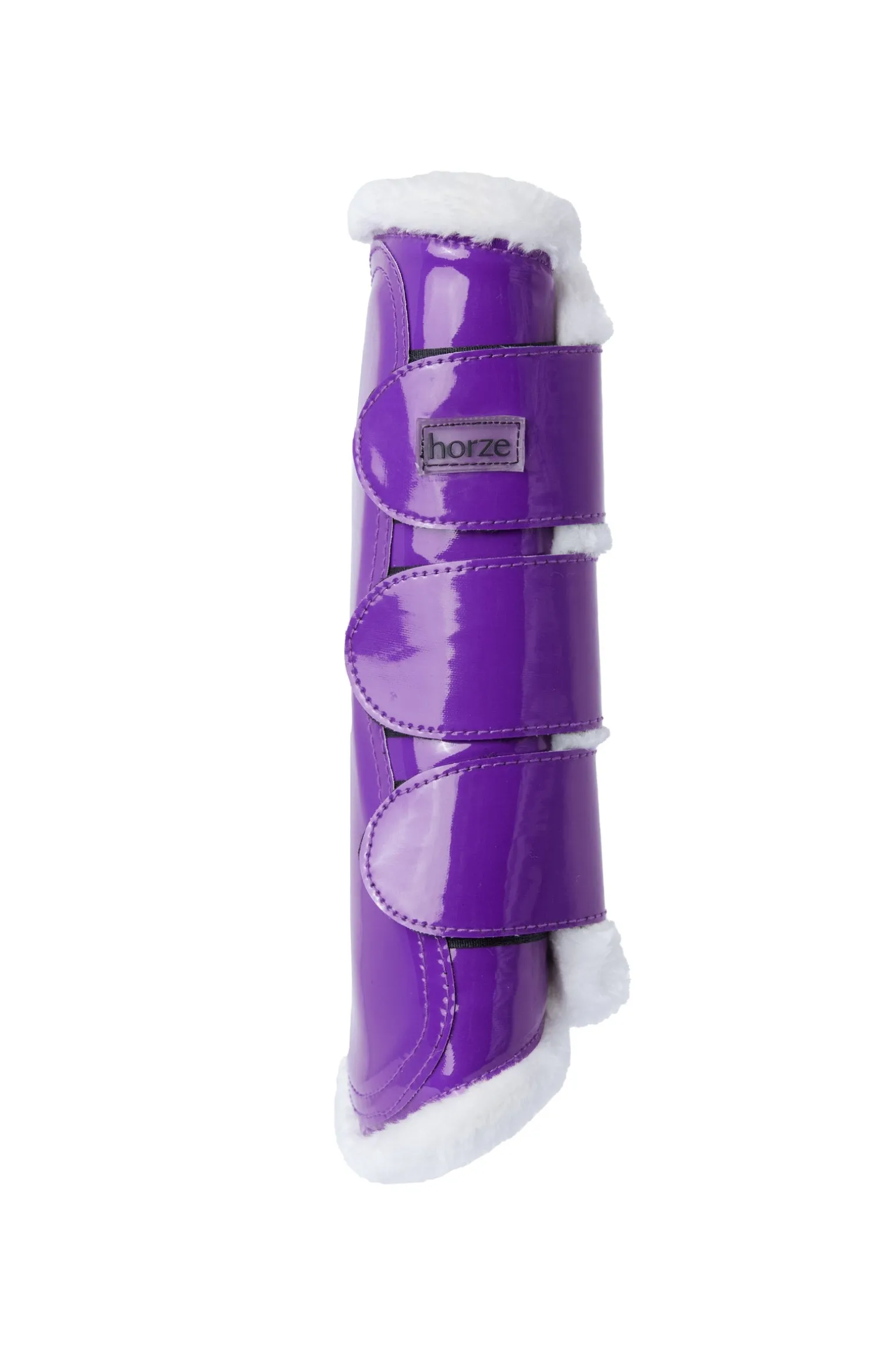 Diese Horze Gamaschen sind aus glänzendem Kunstleder gemacht und mit weichem Kunstfell gefüttert. Sie schließen bequem mit Klettverschlüssen und sind super leicht zu reinigen.