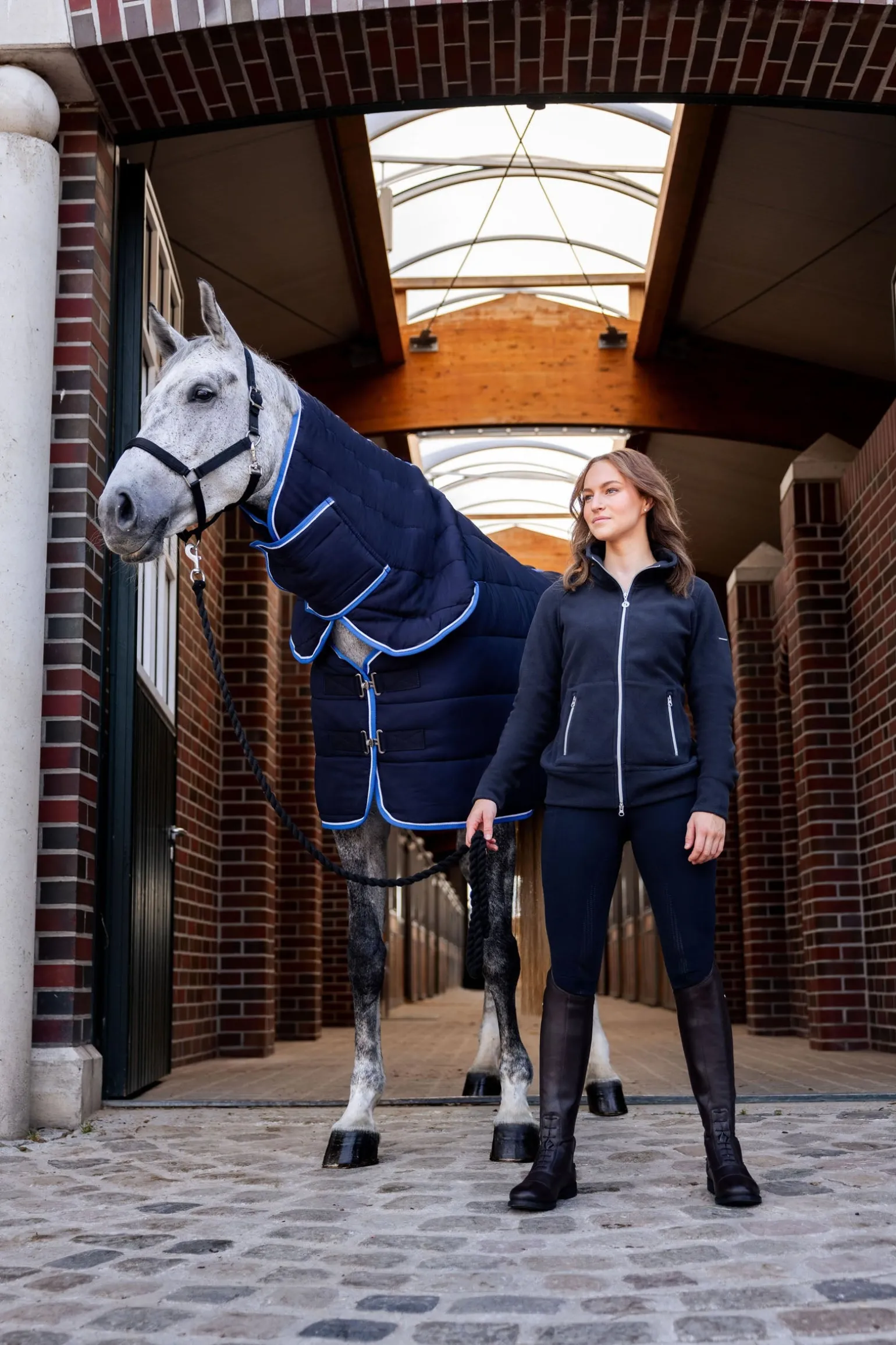 Diese leichte Unterdecke kann allein oder in Kombination mit einer Regendecke getragen werden. Das leichte, atmungsaktive Material ist mit einer Anti-Rutsch-Oberfläche ausgestattet. Zusätzliche T-Schnallen, Kreuzgurte und ein Schweifriemen halten die Decke in Position. Klettverschlüsse am Halsteil machen das An- und Ausziehen einfach. Ein zeitloses Design macht sie zu einem jahrelangen, treuen Begleiter.