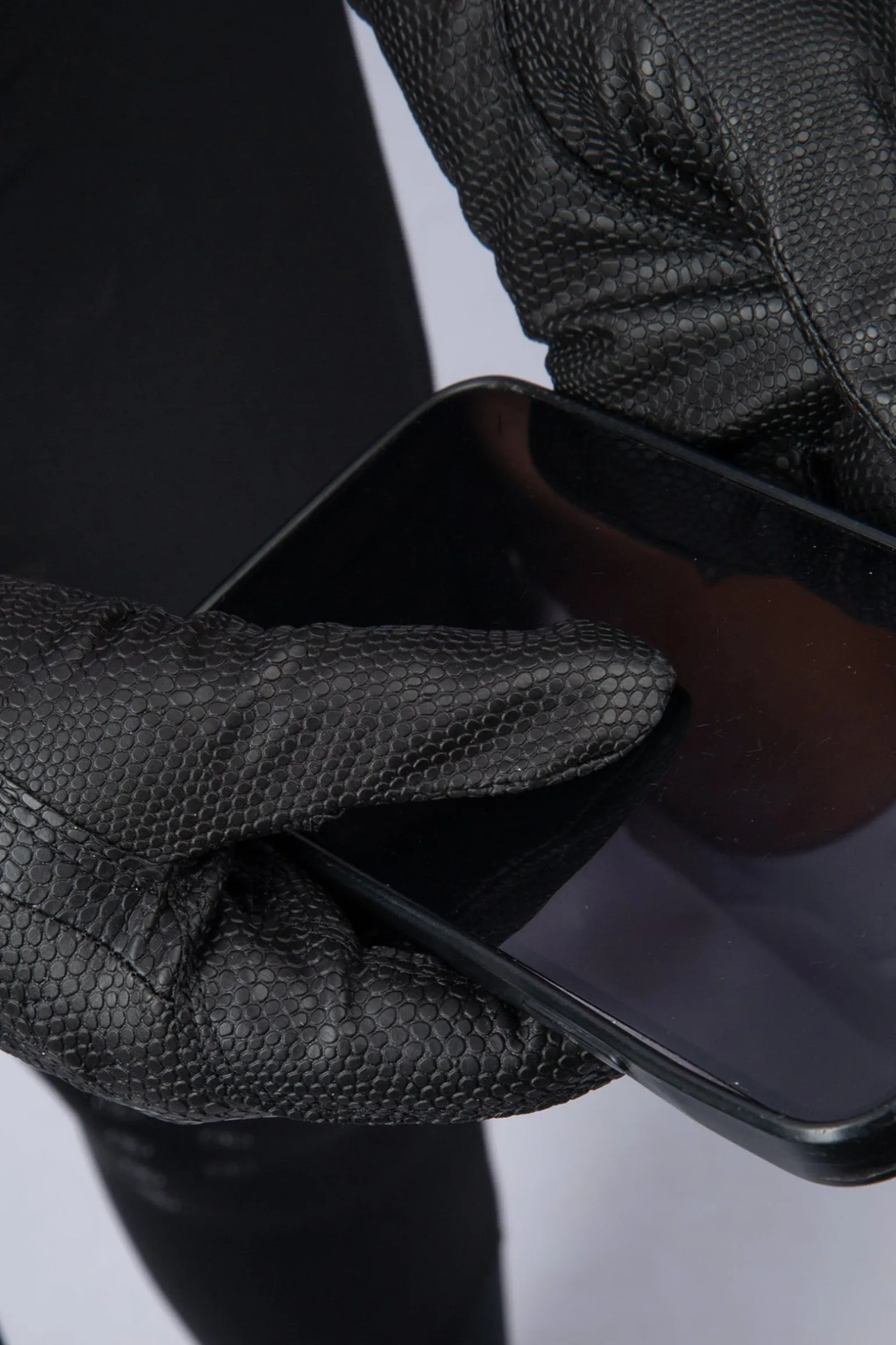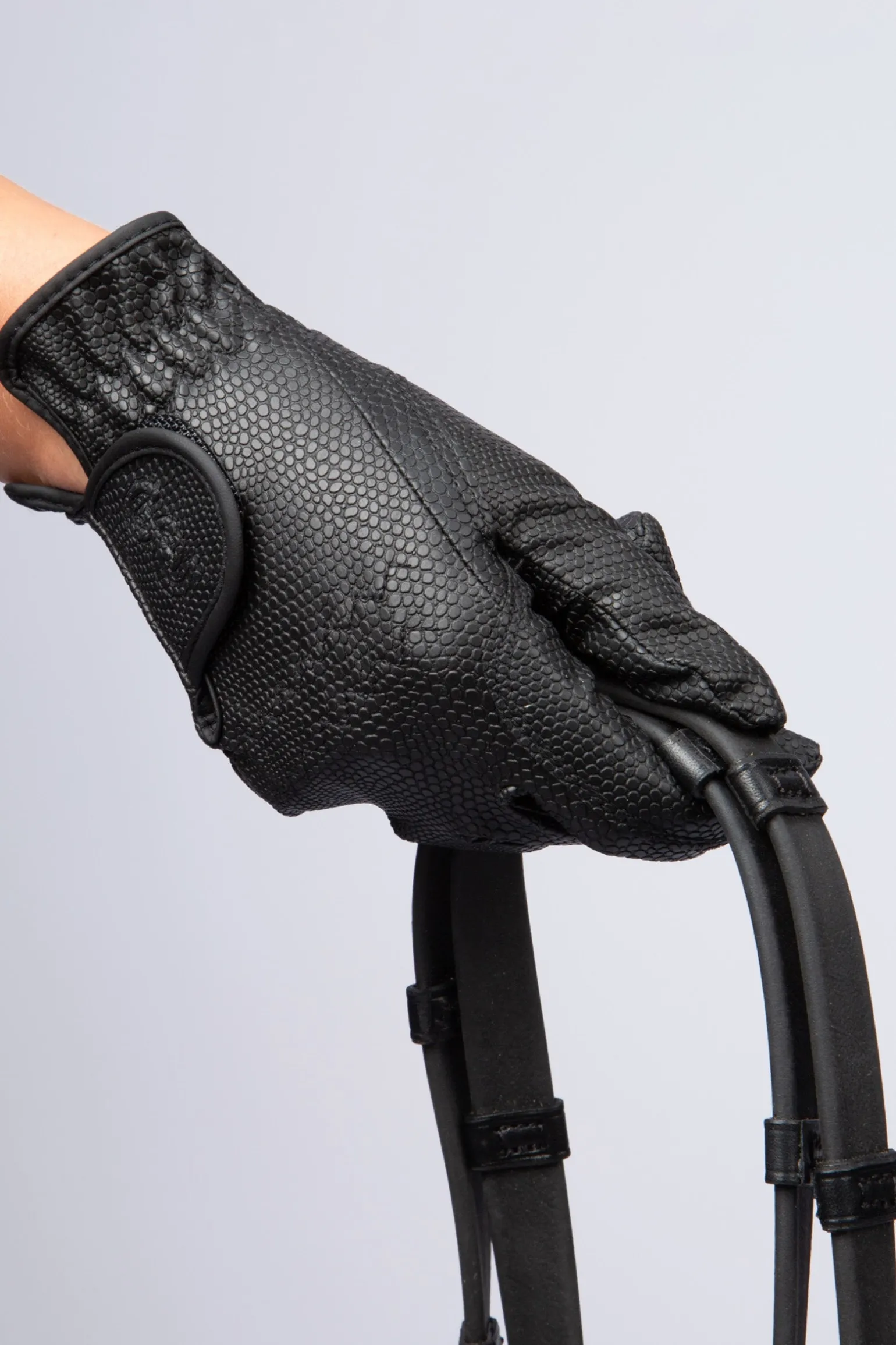 Grip gloves in leather imitation with a mini embossed croco pattern.