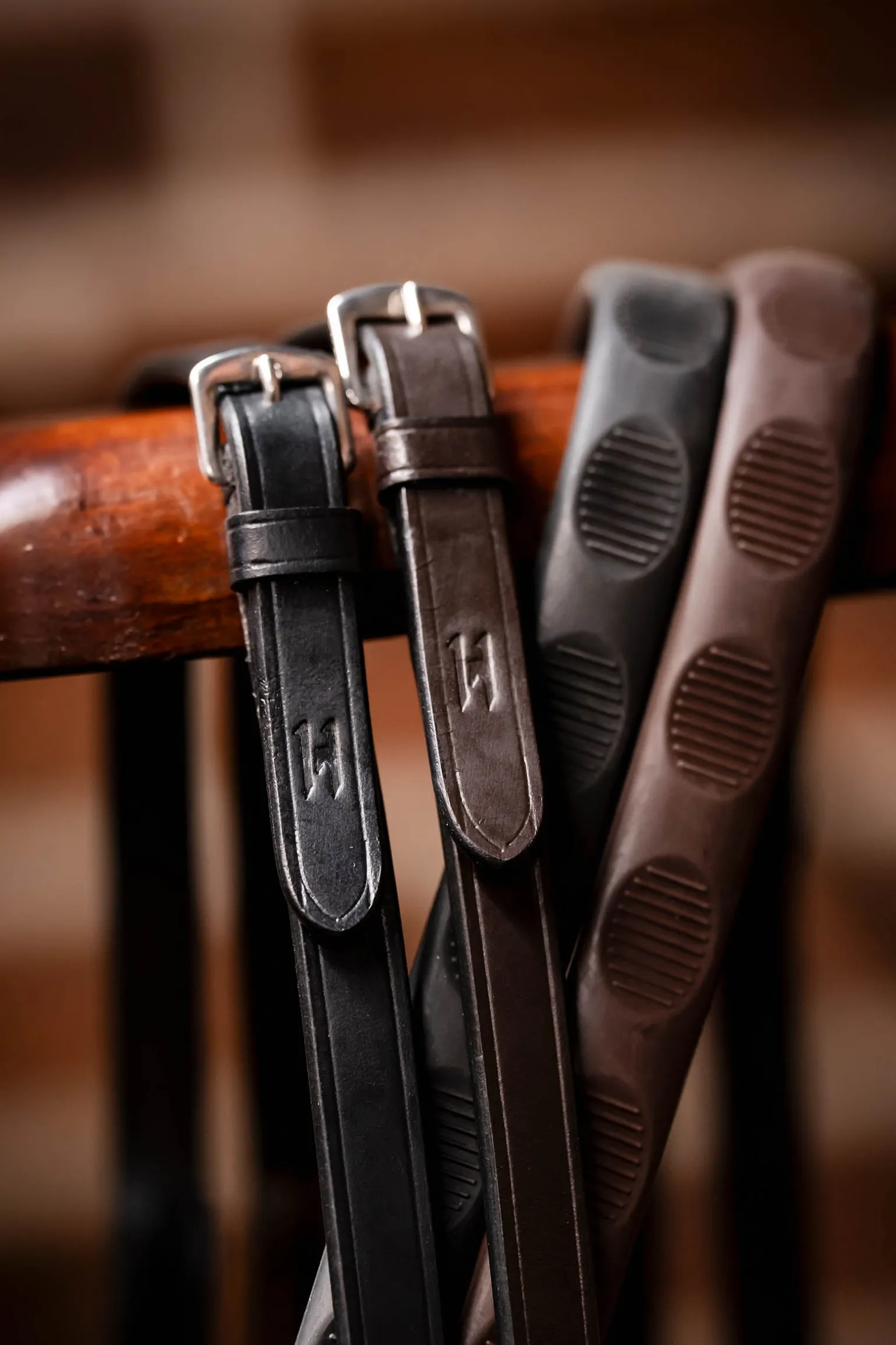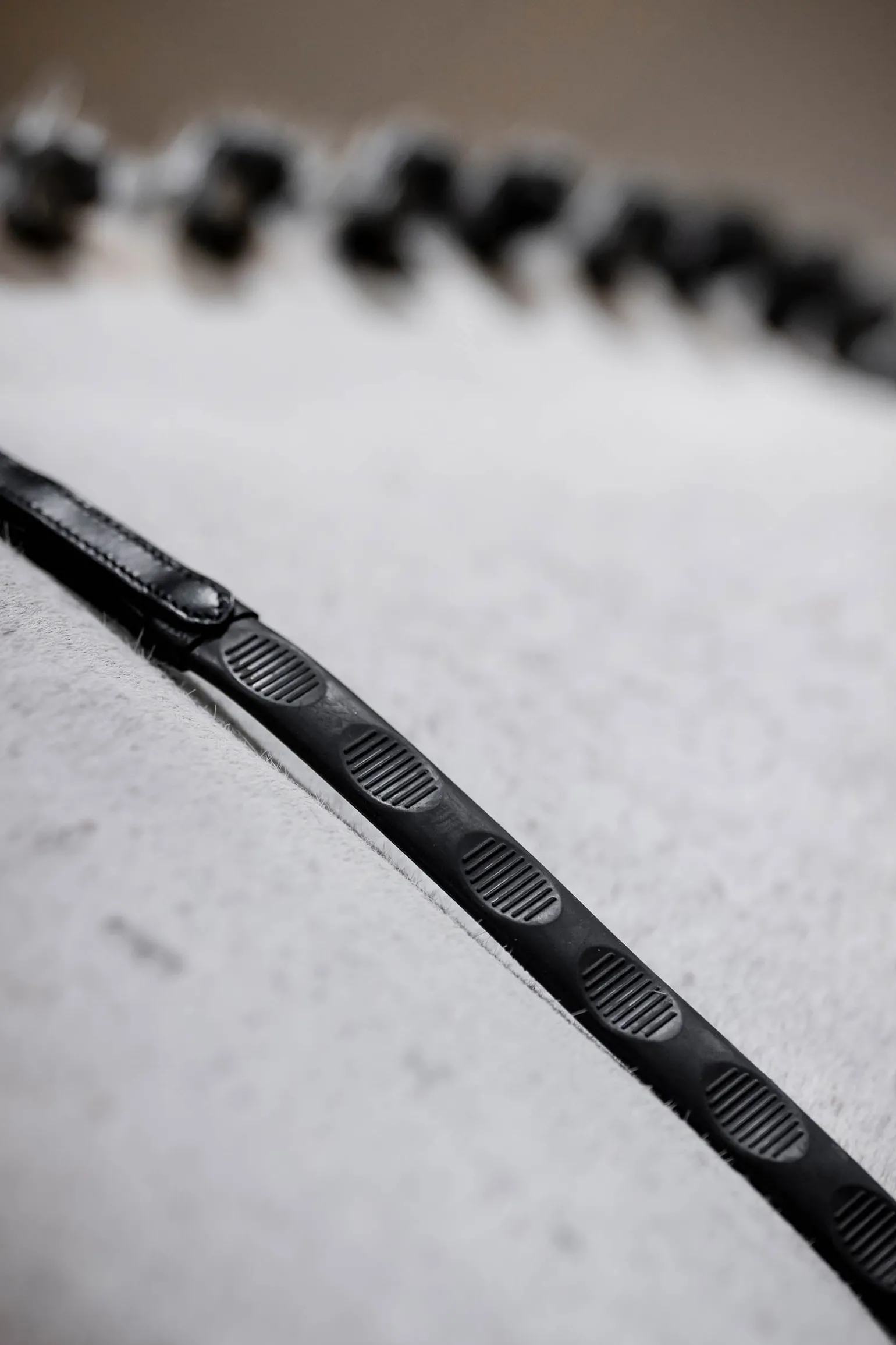 Die Horseware Micklem® Competition Zügel bestehen aus hochwertigem Leder und verfügen über einen griffigen Gummibesatz, der ein ausgezeichnetes Gefühl in der Hand und ein direktes Reiterlebnis bietet. Die Gummierung ist mit einem feinen, runden Reliefmuster ausgestattet – bekannt als „Bubble-Zügel“ – das selbst bei nassem Wetter besten Halt bietet. Diese Lederzügel sind schmaler als viele andere Modelle auf dem Markt und daher besonders beliebt bei Reitern, die weniger Volumen in der Hand und eine feinere Verbindung zum Pferd bevorzugen. Auch wenn sie speziell für die Horseware Micklem 2 Trensenserie entwickelt wurden, passen die Rambo® Micklem® Zügel hervorragend zu anderen Trensen. Optisch ansprechend und funktionell überzeugend!