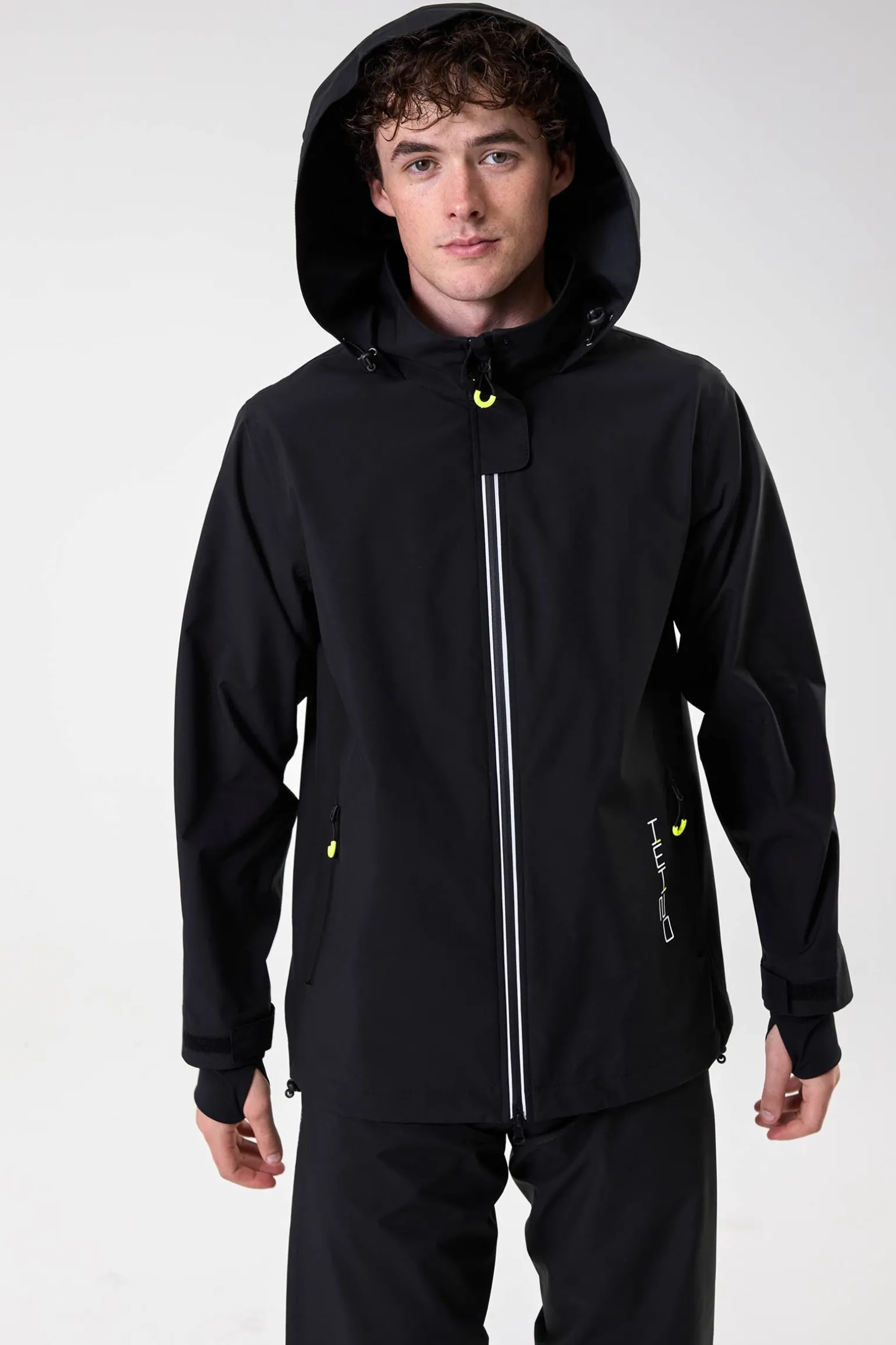 This multifunctional sport jacket is made from waterproof woven stretch fabric with taped seams to keep you dry in wet conditions. The TPU membrane provides excellent waterproofing and breathability, while the adjustable side hem and storm cuffs offer added protection against rain and wind. Reflective details ensure visibility in low-light environments, and secure zip front pockets keep your essentials safe. With a gender-neutral design and a performance rating of 20000 W/P 5000 breathable, this jacket is a versatile choice for riding, running, cycling, or walking.
