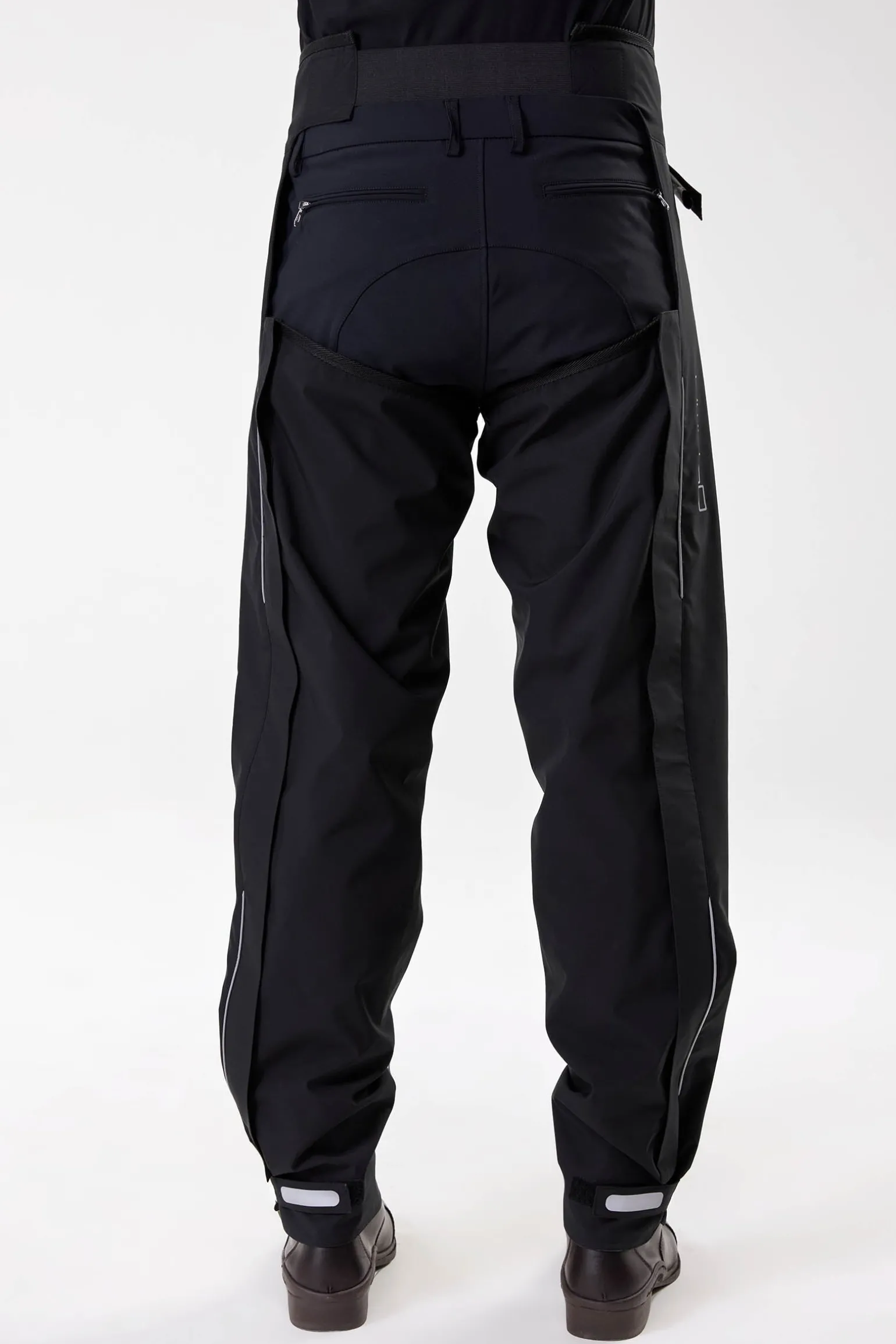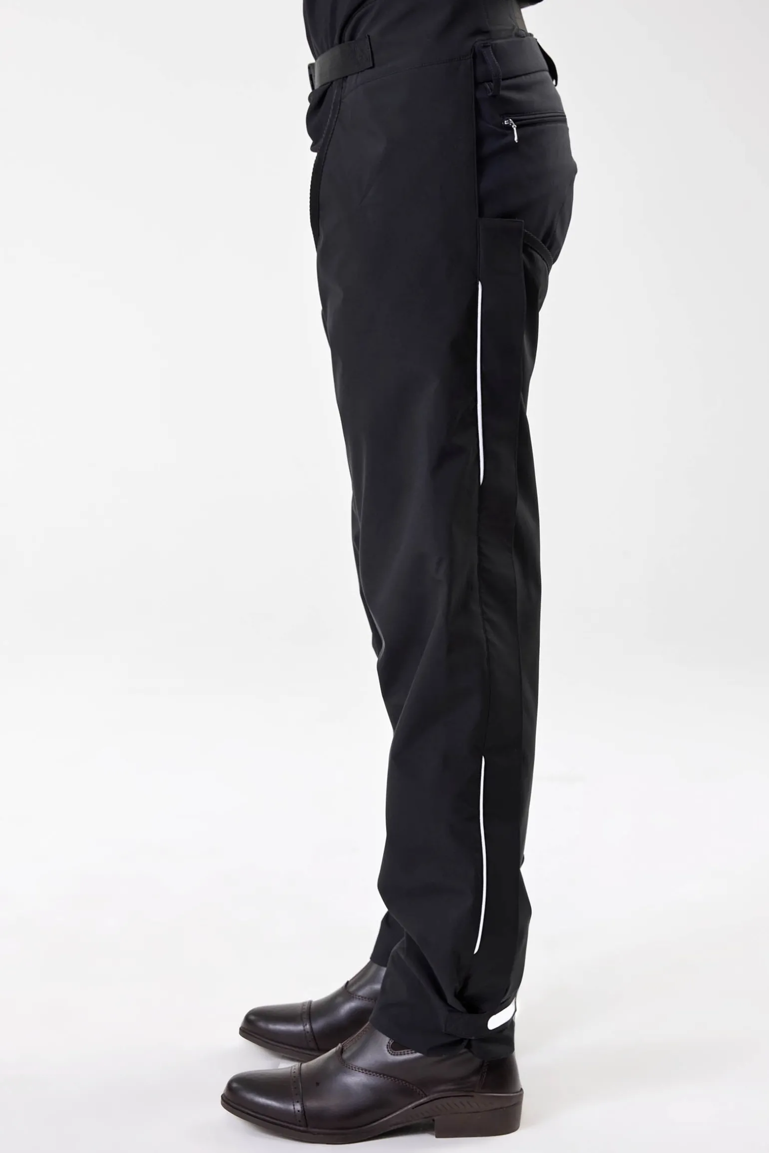 These waterproof over-trousers are crafted from 100% polyester with taped seams, ensuring you stay dry even in wet conditions. Designed to keep breeches clean and protected during competitions or schooling, they combine functionality with comfort thanks to the woven stretch fabric. The TPU membrane provides reliable waterproofing and breathability, while reflective details enhance visibility in low-light settings. Practical features include a 2-way side zip for easy on and off, along with a front adjustable buckle, ankle straps, and an elasticated waist with adjustable straps for a personalized fit. With a gender-neutral design and a performance rating of 20000 W/P 5000 breathable, these trousers are a dependable choice for all riders.