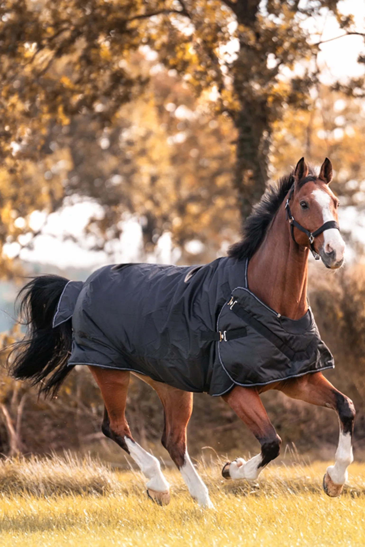 Dank des schnellen und einfachen Austauschs des Brustgurts kann die Decke Halifax sowohl als Weidedecke als auch als Führanlagendecke (im Freien) verwendet werden. Es gibt zwei Befestigungsoptionen für den Brustgurt: Die untere Befestigung ist besonders für schmalere Pferde geeignet. Die Decke Halifax 2in1 gibt deinem Pferd die Bewegungsfreiheit, die es in der Führanlage oder auf dem Laufband benötigt. Die Outdoordecke bietet ebenfalls diesen Komfort: Da die Decke an den Schultern nicht geschlossen ist, wie es bei herkömmlichen Outdoordecken der Fall ist, hat dein Pferd ausreichend Bein- und Schulterfreiheit, ohne dass sich die Decke an den Schultern dehnt. Der anatomisch geschnittene Rückenbereich mit hervorstehendem Widerrist sowie der Schweiflatz und der tiefe Schweifriemen sorgen für einen idealen Sitz ohne Verrutschen. Die tiefer geschnittenen Seiten der Decke Halifax 2in1 schützen auch den empfindlichen Bauchbereich vor Kälte. Die Polsterung am Widerrist und das glatte Innenmaterial geben deinem Pferd den Komfort, den es benötigt.