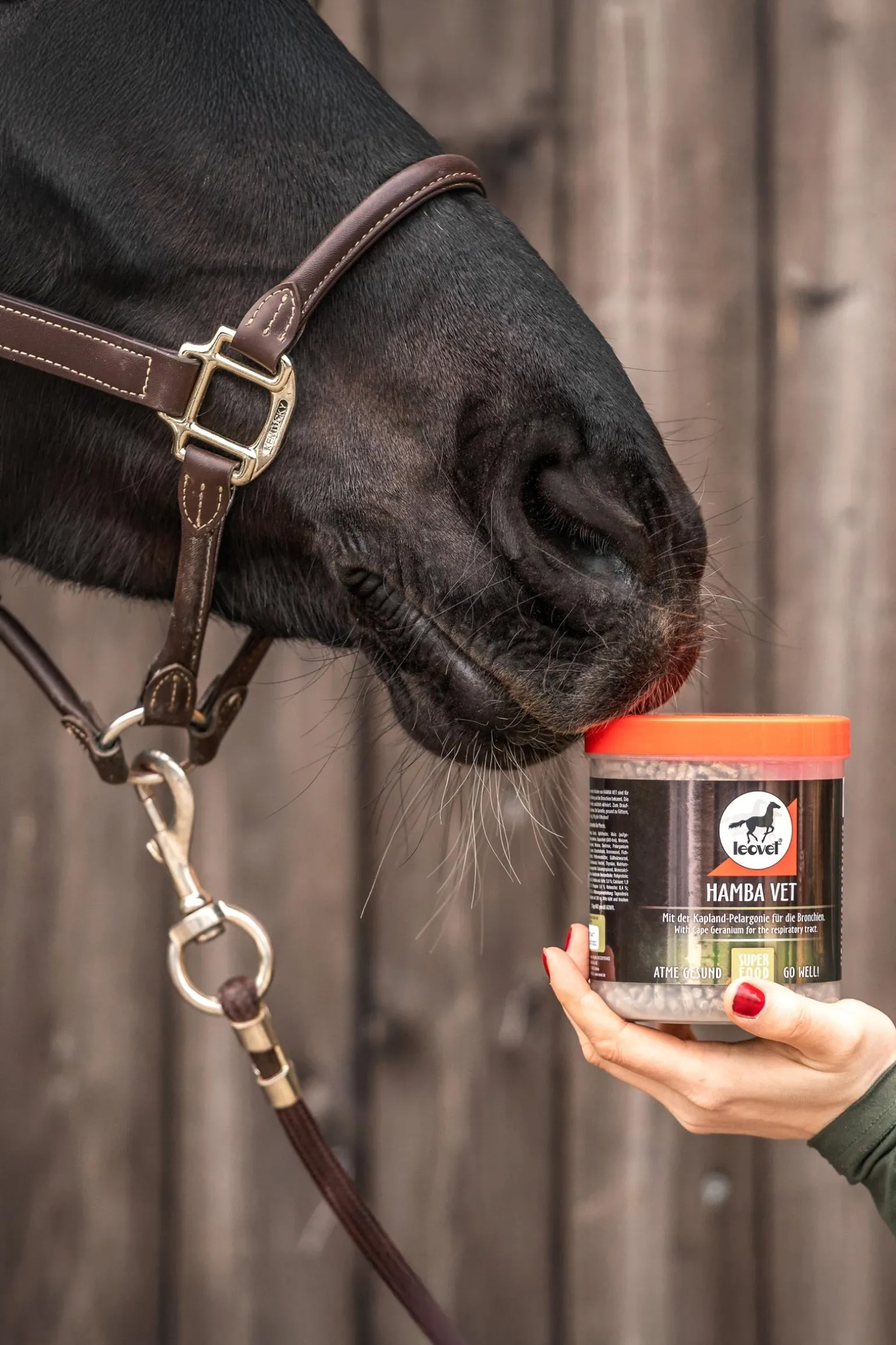Hamba-Vet enthält die Kapland-Pelargonie, eine lila blühende Geranienart, aus der bekannte Heilmittel gegen Infektionen der Atemwege hergestellt werden. Zusätzlich angereichert mit Kräutern wie Zinnkraut, Brennnessel, Huflattich und Süßholz, aktiviert Hamba-Vet die Abwehrkräfte und schützt vor Husten. Zum Draufbeissen und Durchatmen.