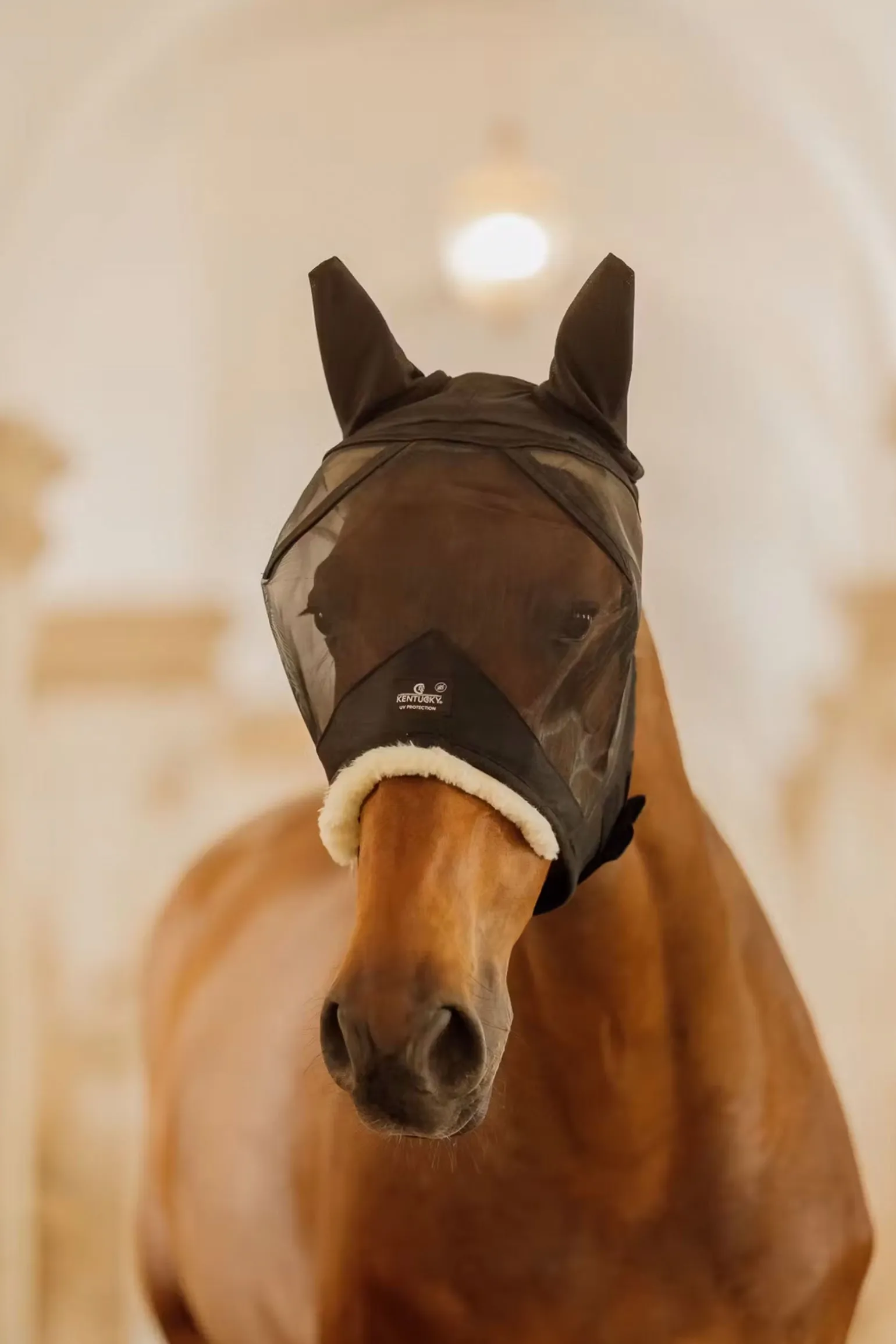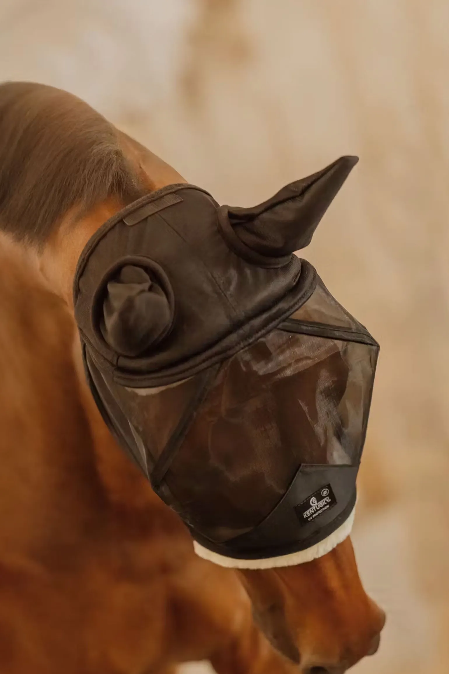 Die Fliegenmaske Skin Friendly mit Ohren wurde entwickelt, um die Augen und Ohren deines Pferdes vor lästigen Insekten zu schützen, ohne die Nase zu bedecken. Das zusätzliche künstliche Schaffell im Nasen- und Stirnbereich erhöht nicht nur den Komfort für Pferde mit empfindlicher Haut, sondern sorgt auch für maximalen Insektenschutz, ohne das Pferd zu beeinträchtigen. Das innovative Design der Fliegenmaske Friendly ist die beste Wahl für Zuchtstuten und Pferde, die 27/7 draußen sind. Sie kann auf der Weide verwendet werden und ist unempfindlich bei verspielten Pferden. Diese Fliegenmaske ist aus einem starken, ultra atmungsaktiven Netzgewebe gefertigt, das Langlebigkeit garantiert. Die Ränder sowie das zusätzliche künstliche Fell der Fliegenmaske Skin Friendly sind sehr weich, um Reibung zu vermeiden und zusätzlichen Schutz vor Hautirritationen zu bieten. Um einen bequemen Sitz zu gewährleisten, wird die Fliegenmaske mit einem doppelten Klettverschluss unter dem Kiefer des Pferdes geschlossen.