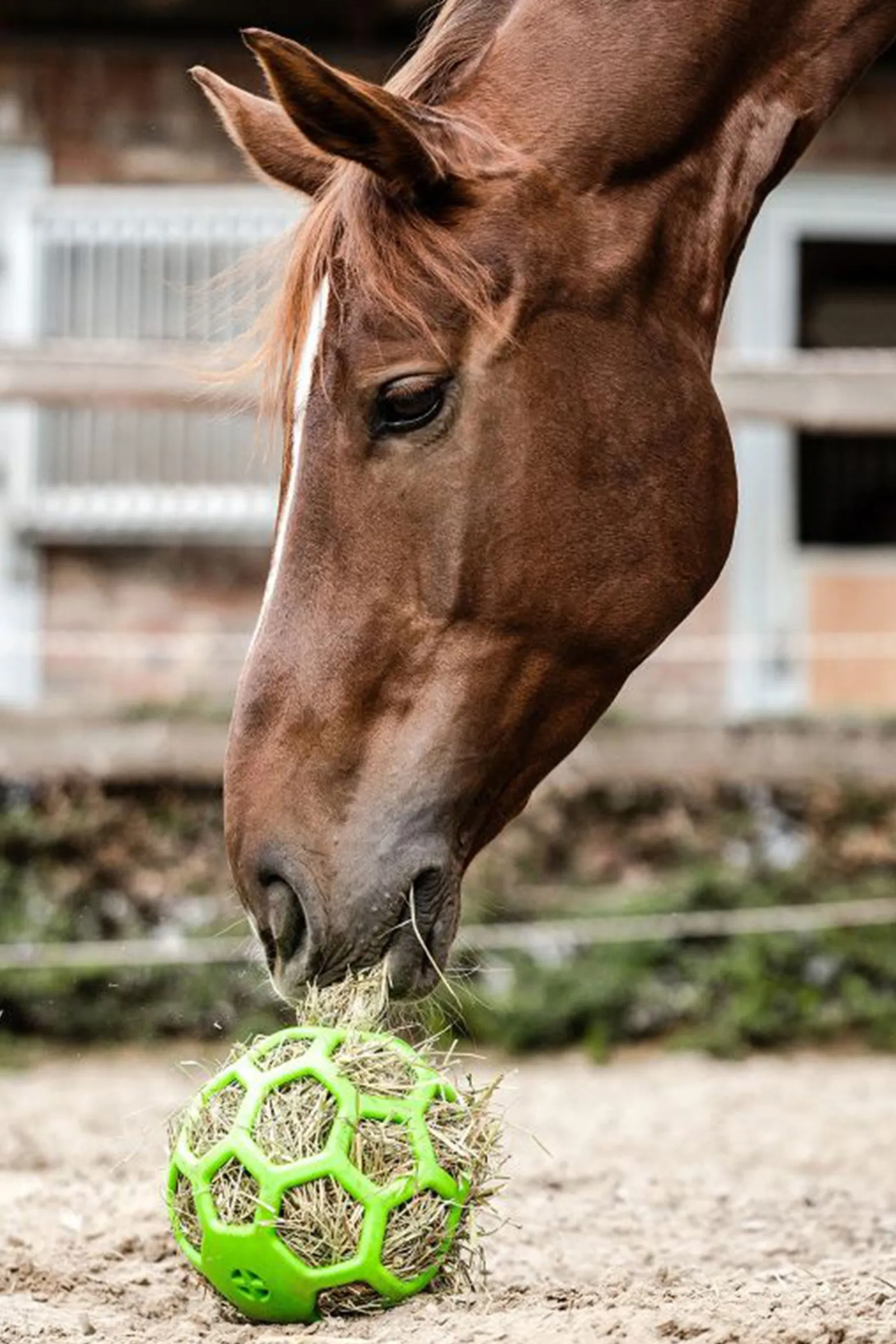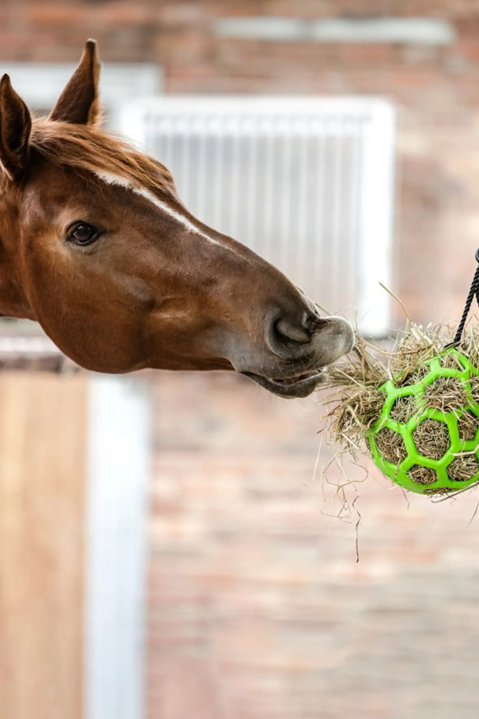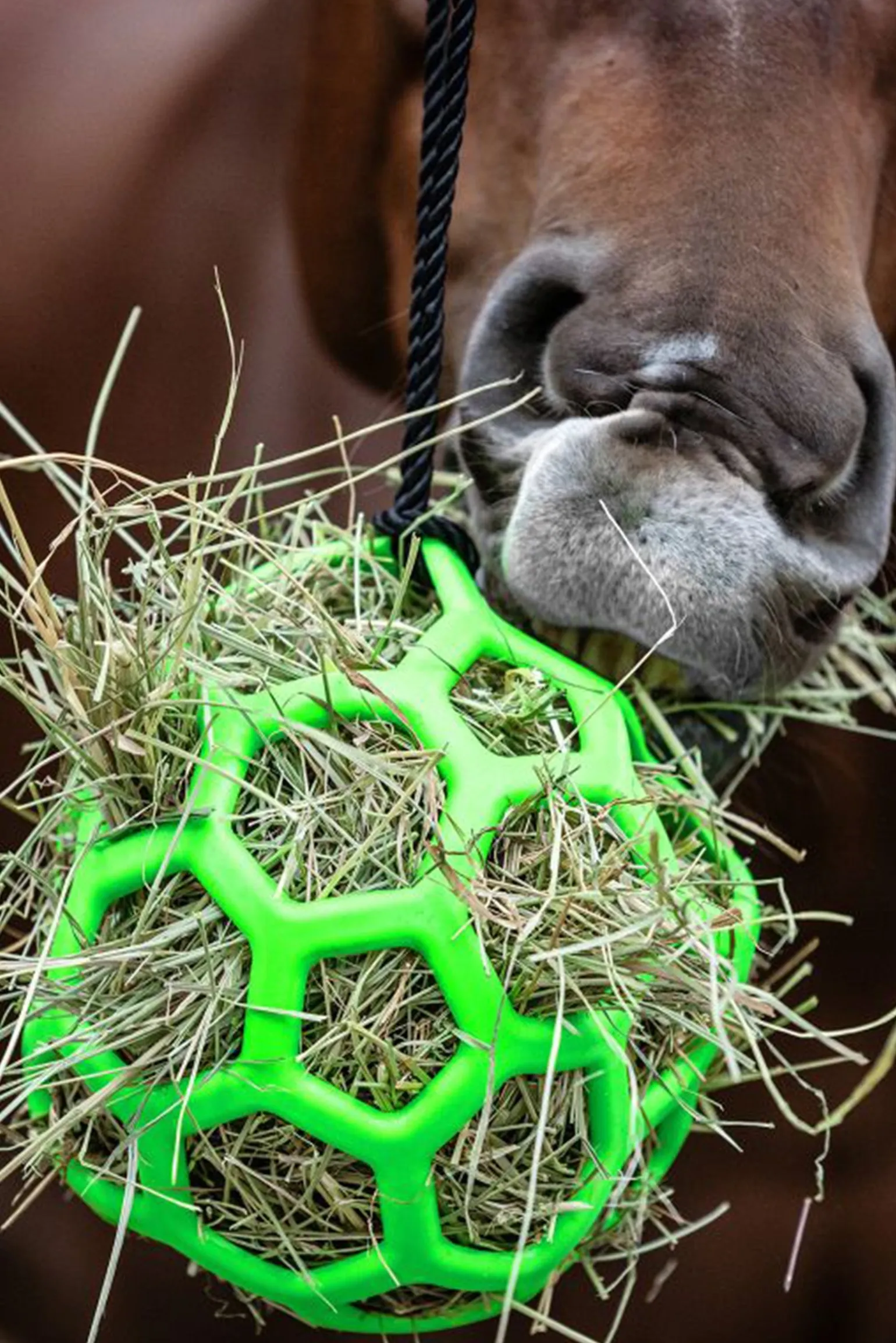 Der Waldhausen Heuball eignet sich ideal, um Langeweile vorzubeugen und die Heuaufnahme zu verlangsamen sowie zu rationieren. Dies ist besonders magenschonend und dient nebenbei der stundenlangen Beschäftigung. Der Ball kann ganz einfach mit Heu und weiteren Leckereien, z.B. Karotten und Apfelstücken, befüllt und über das 2 m lange mitgelieferte Band aufgehängt werden. Er ist vollständig aus thermoplastischem Gummi gefertigt, was ihn besonders flexibel und haltbar macht.