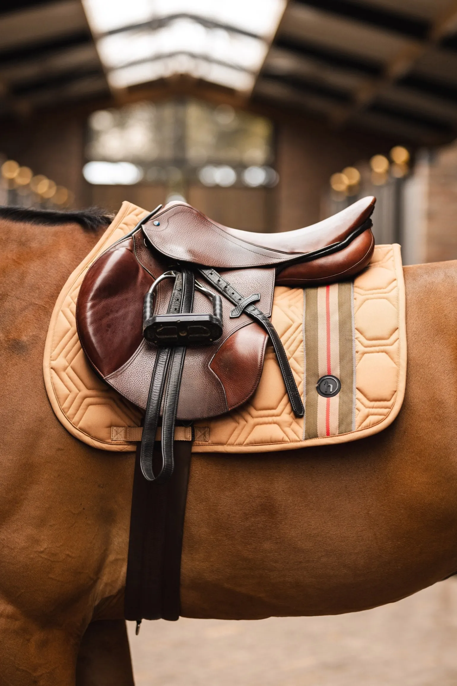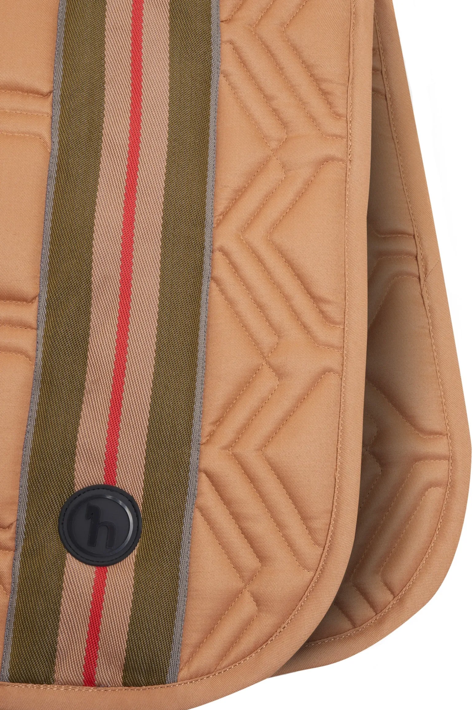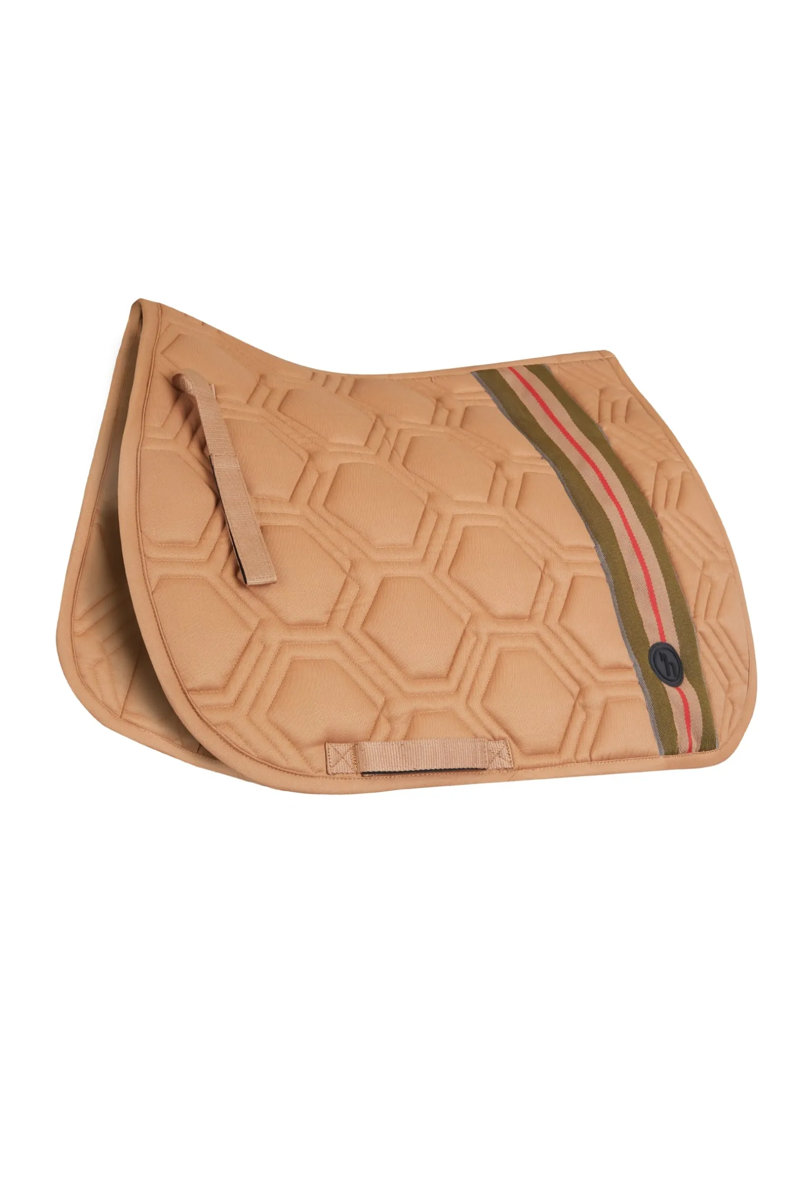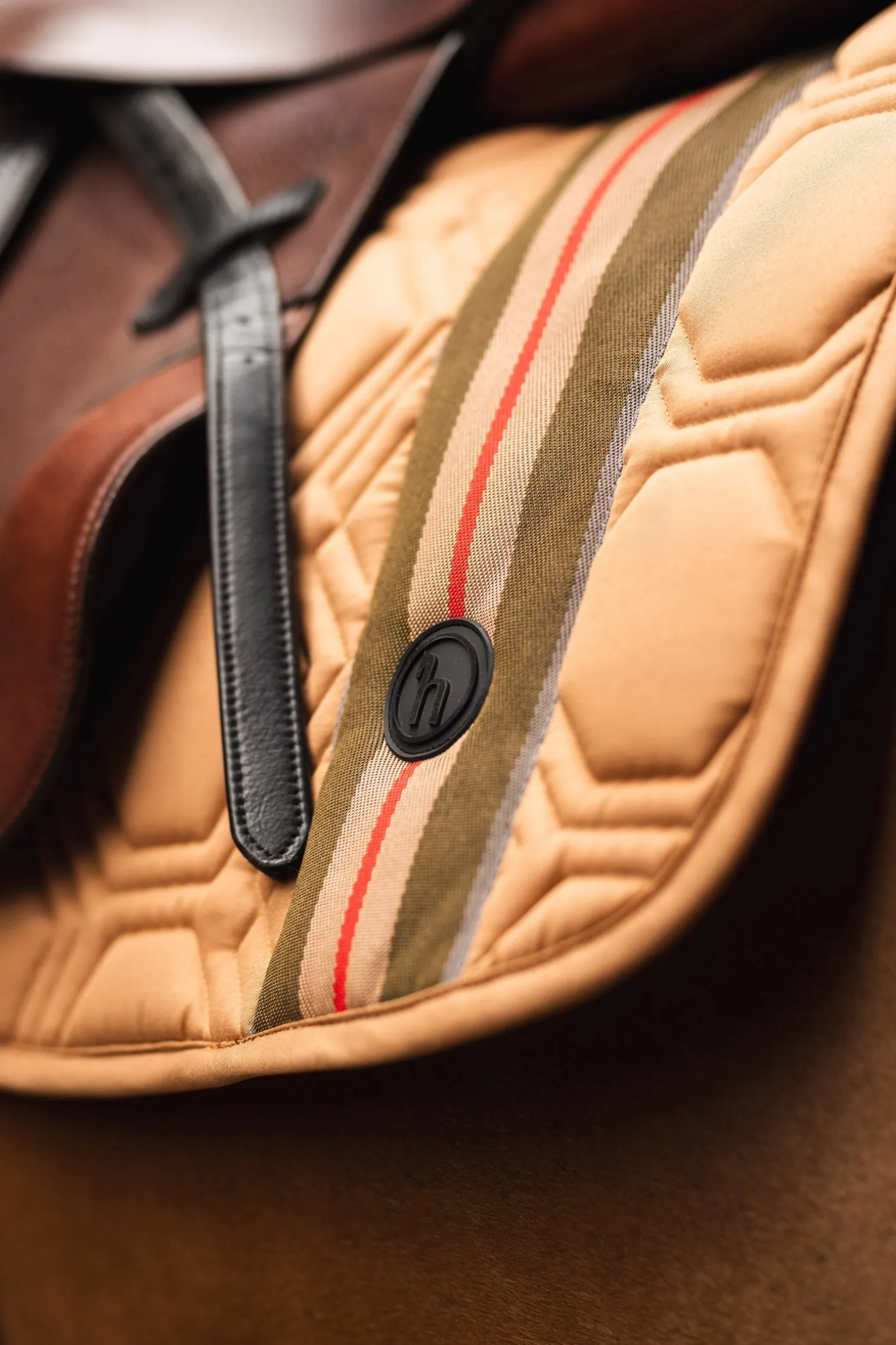 Das sportliche Design dieser Schabracke mit Jacquardtape und Silikonabzeichen sorgt für einen stilvollen Look im Parcours. Die langen Sattelbefestigungsriemen sorgen für einen sicheren und stabilen Sitz, während die verstellbaren Gurtschlaufen eine einfache Anpassung ermöglichen. Die anatomische Form und das sechseckige Steppmuster bieten optimalen Komfort und Unterstützung für den Rücken deines Pferdes. Das feuchtigkeitsableitende Material auf der Innenseite sorgt dafür, dass dein Pferd während des Reitens trocken und komfortabel bleibt.