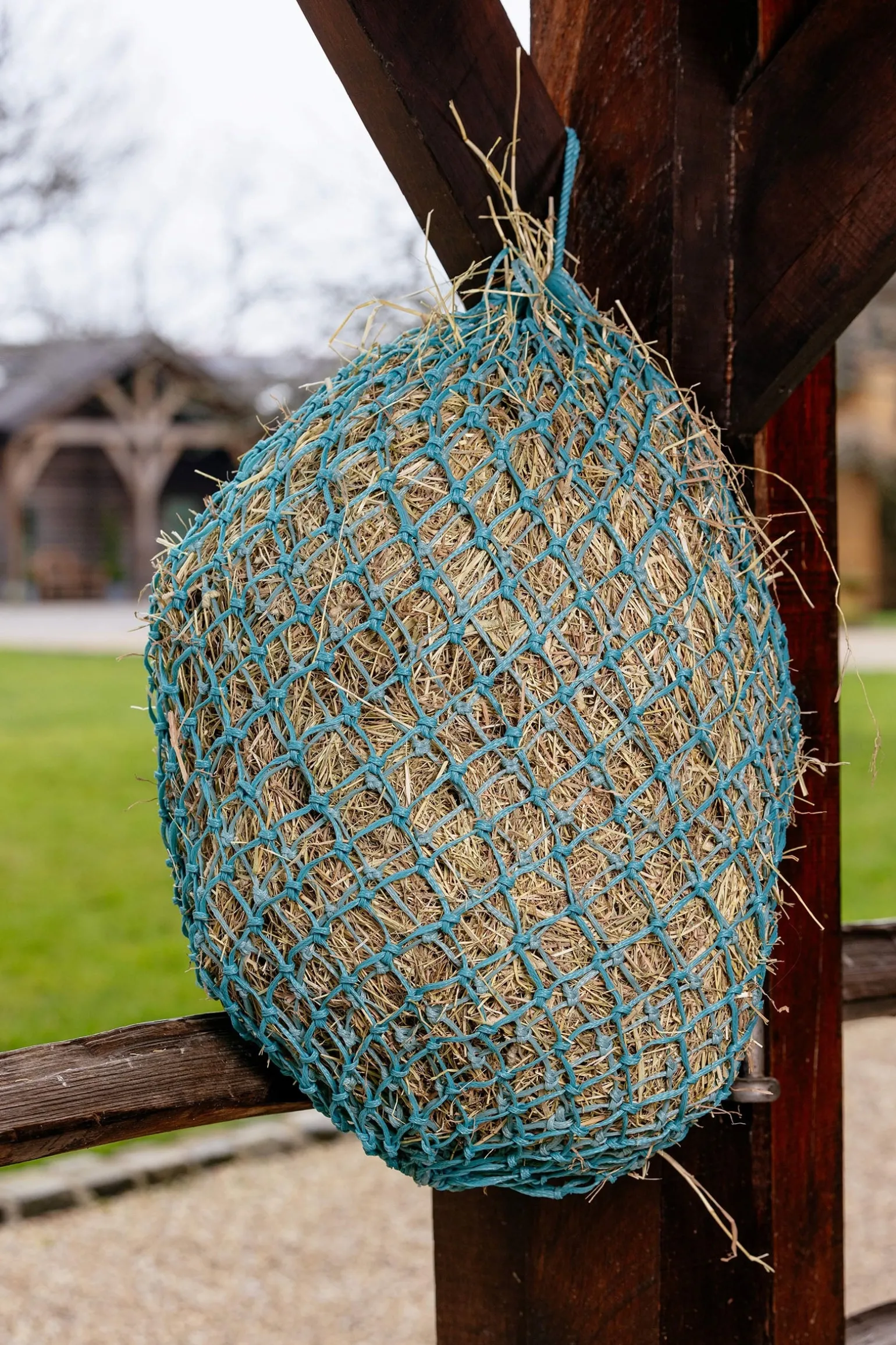 Slow down greedy feeders with this high-quality haynet. Metal rings and robust hanging rope make it a durable choice. This single-layer haynet has smaller holes, perfect for slowing down greedy feeders for better digestion – also preventing wasted hay from falling to the floor or mixing into bedding.