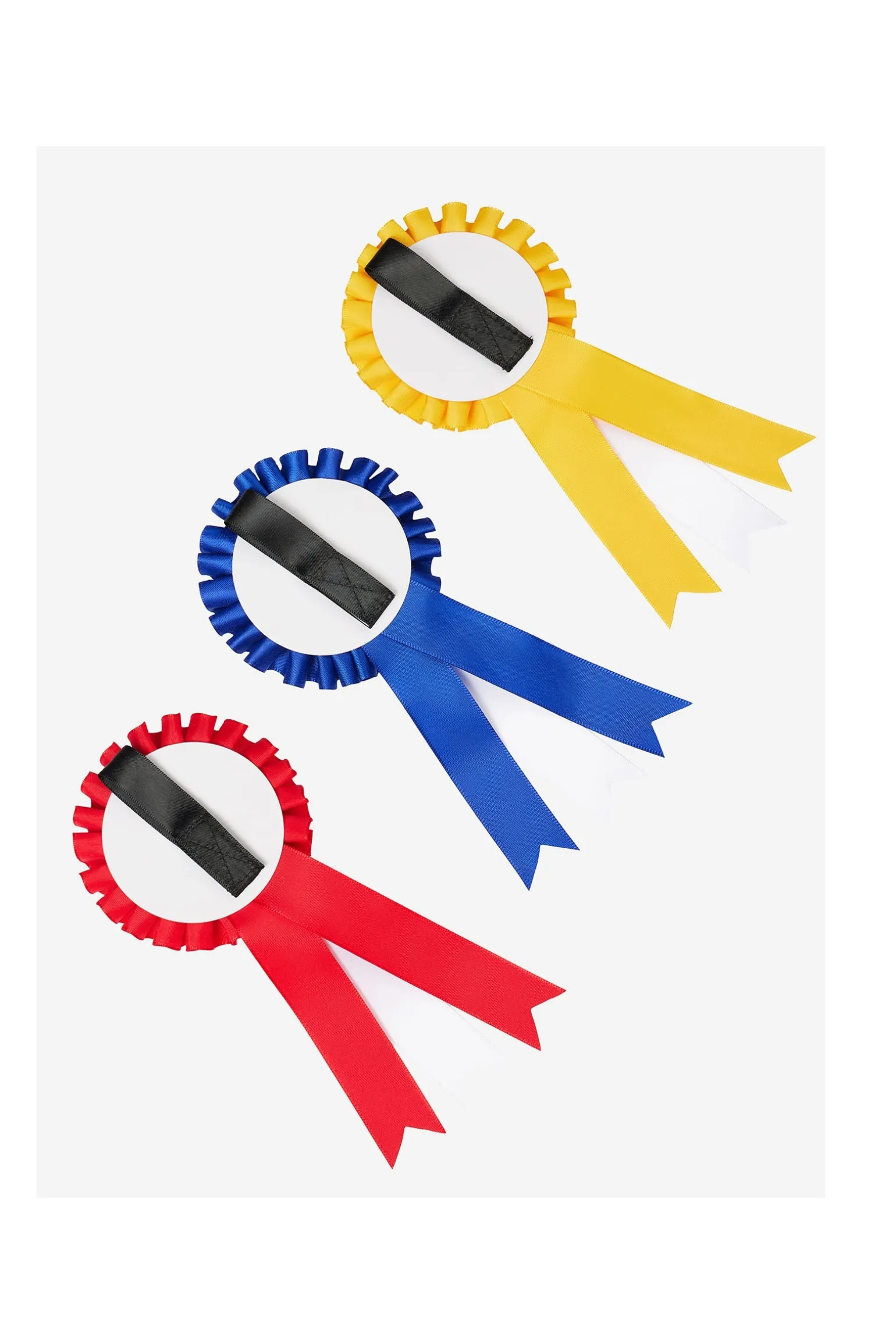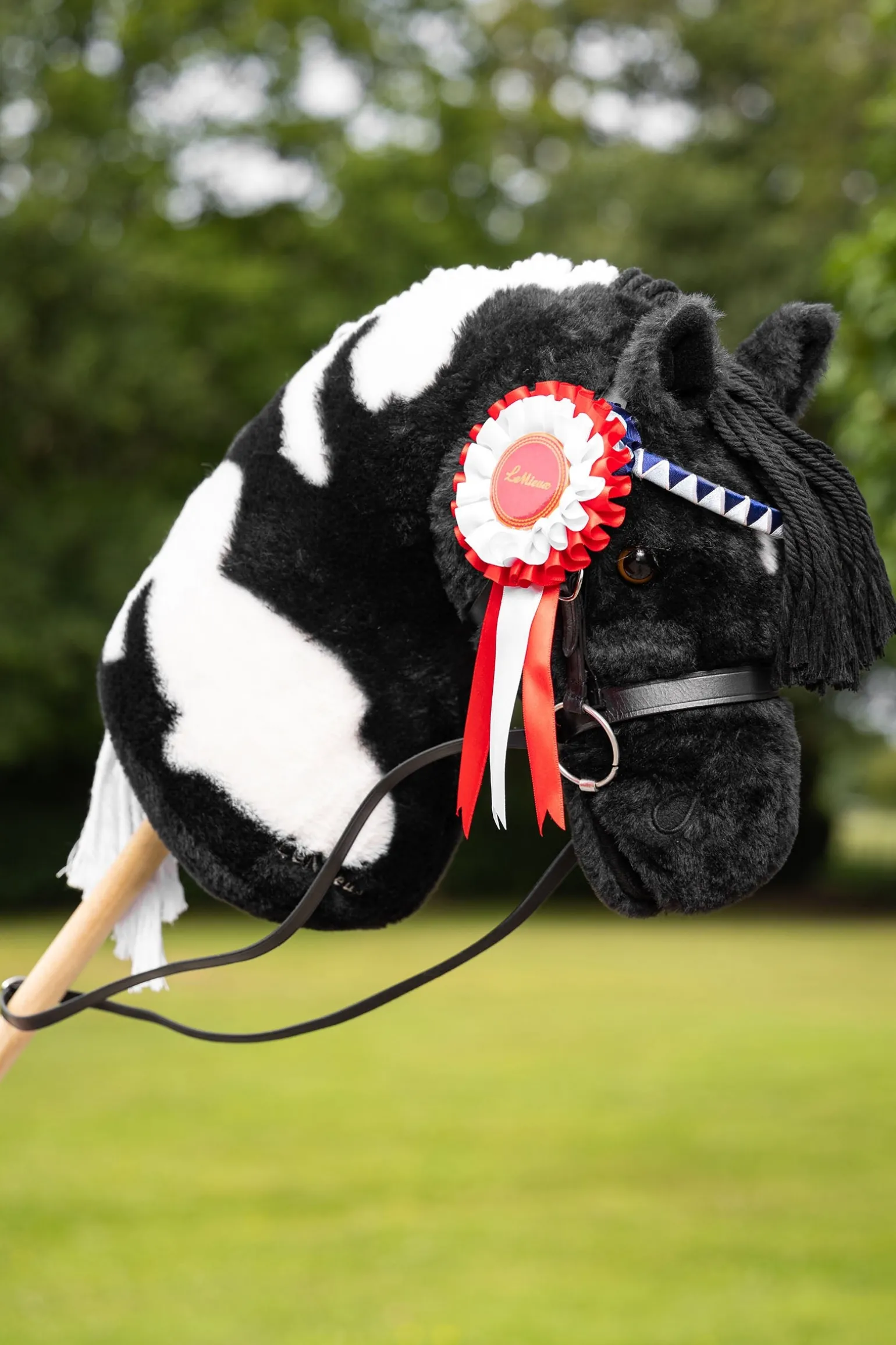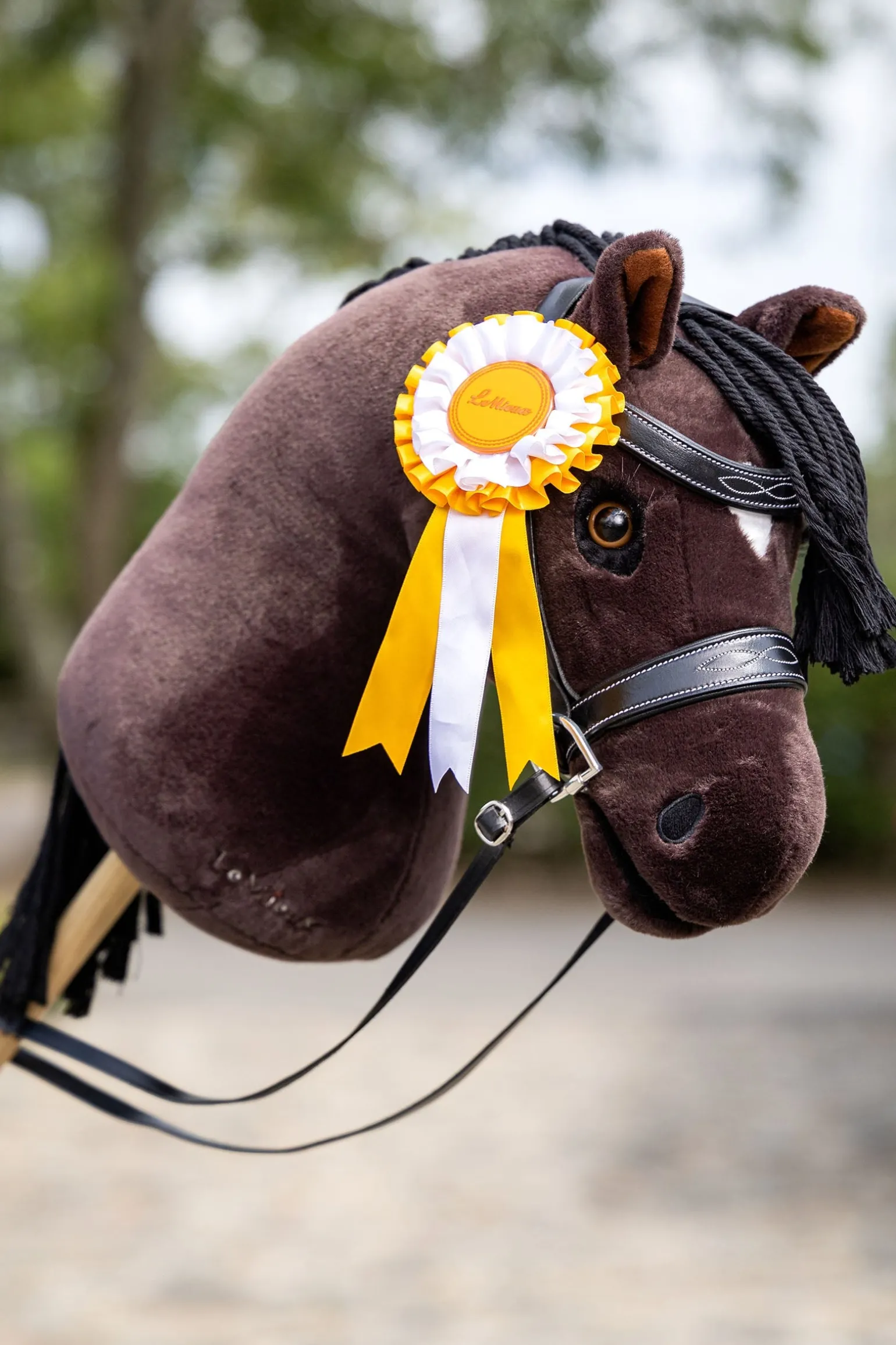 Gratuliere deinem Hobby Horse mit diesen Mini-Siegerschleifen für besondere Leistungen bei Wettbewerben! Das Set enthält drei Satin-Schleifen in deinen eigenen Farben – für den ersten, zweiten und dritten Platz. Jede Schleife ist mit einem Klettverschluss ausgestattet und lässt sich ganz einfach und sicher am Zaumzeug deines Hobby Horses befestigen (separat erhältlich). Entdecke auch die Hobby Horse Zubehörkollektion für weiteres Turnier- und Showzubehör. Geeignet für Kinder ab 3 Jahren.