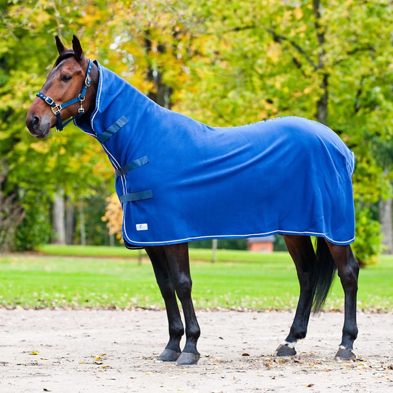 Abschwitzdecke mit hohem Hals, damit der gesamte Halsbereich geschützt wird. Exzellent für die Verwendung, um z. B. ein Pferd zu trocken oder im Winter unter einer dicken Decke, damit genügend Wärme während des Transports gewährleistet wird. Die Decke ist mit drei Klettverschlüssen an der Brust ausgestattet, sowie mit einer Schweifkordel.