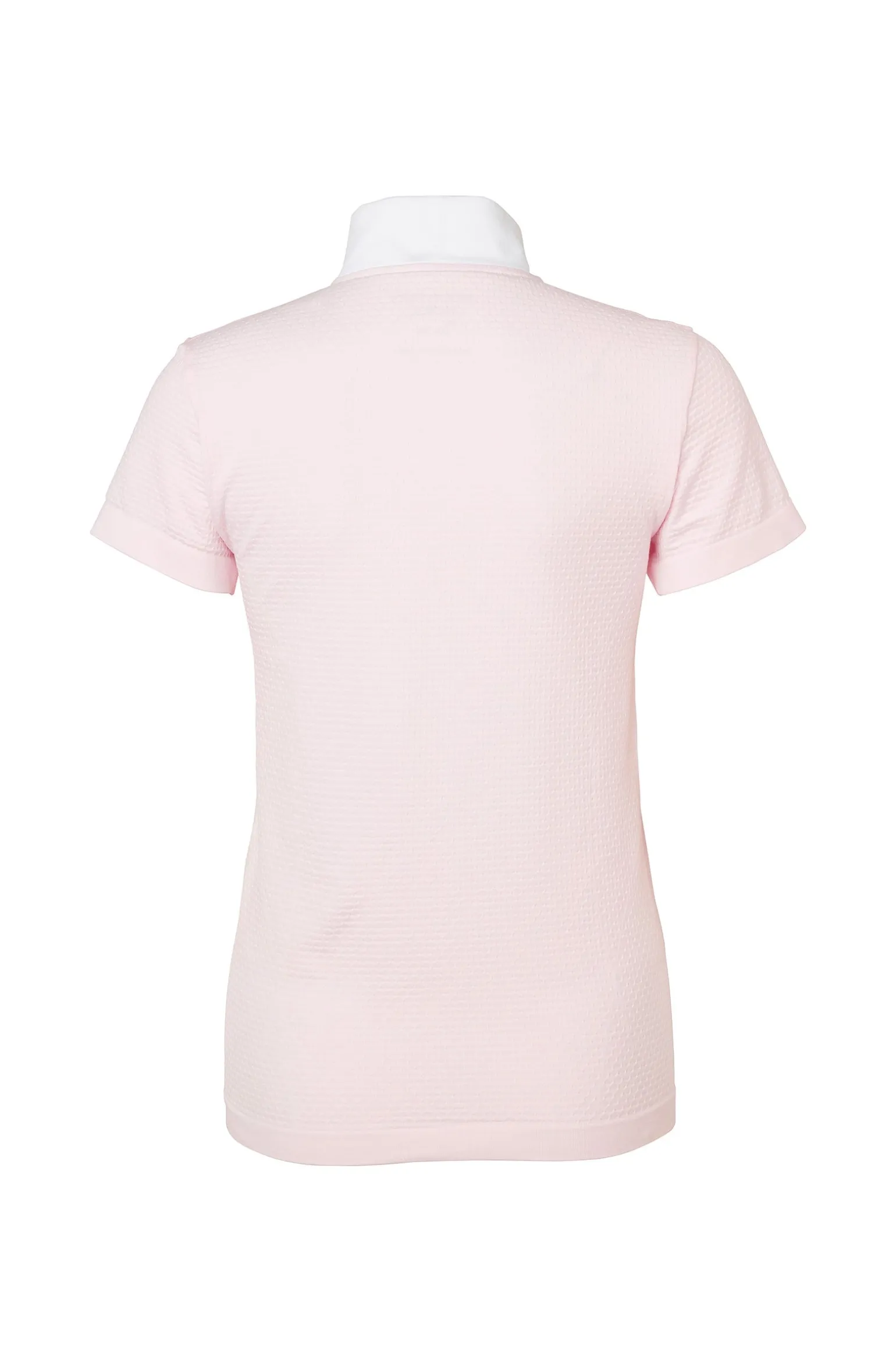 Feminines, nahtloses, turniertaugliches Tech-Top mit einem weißen Kragen.