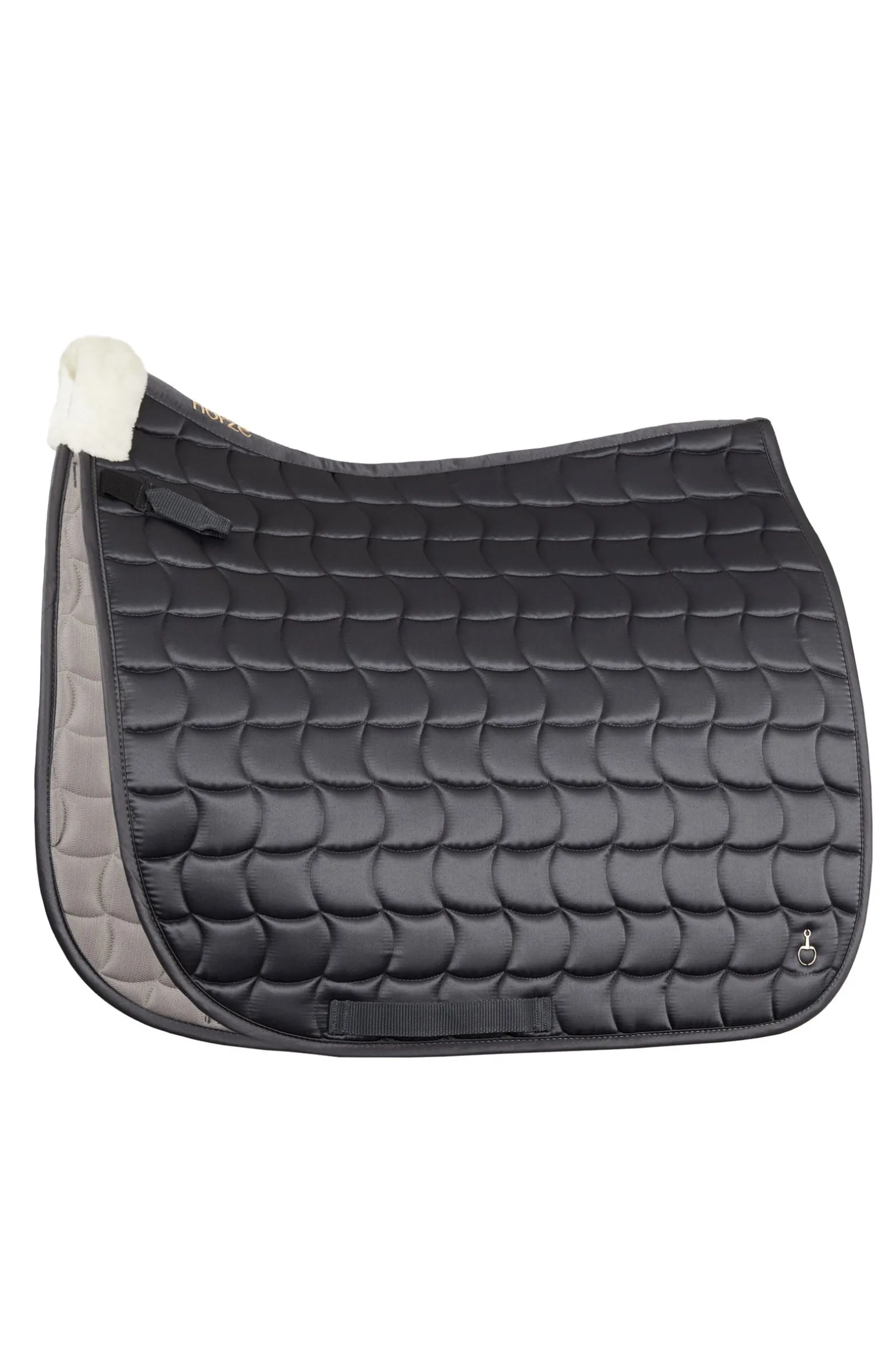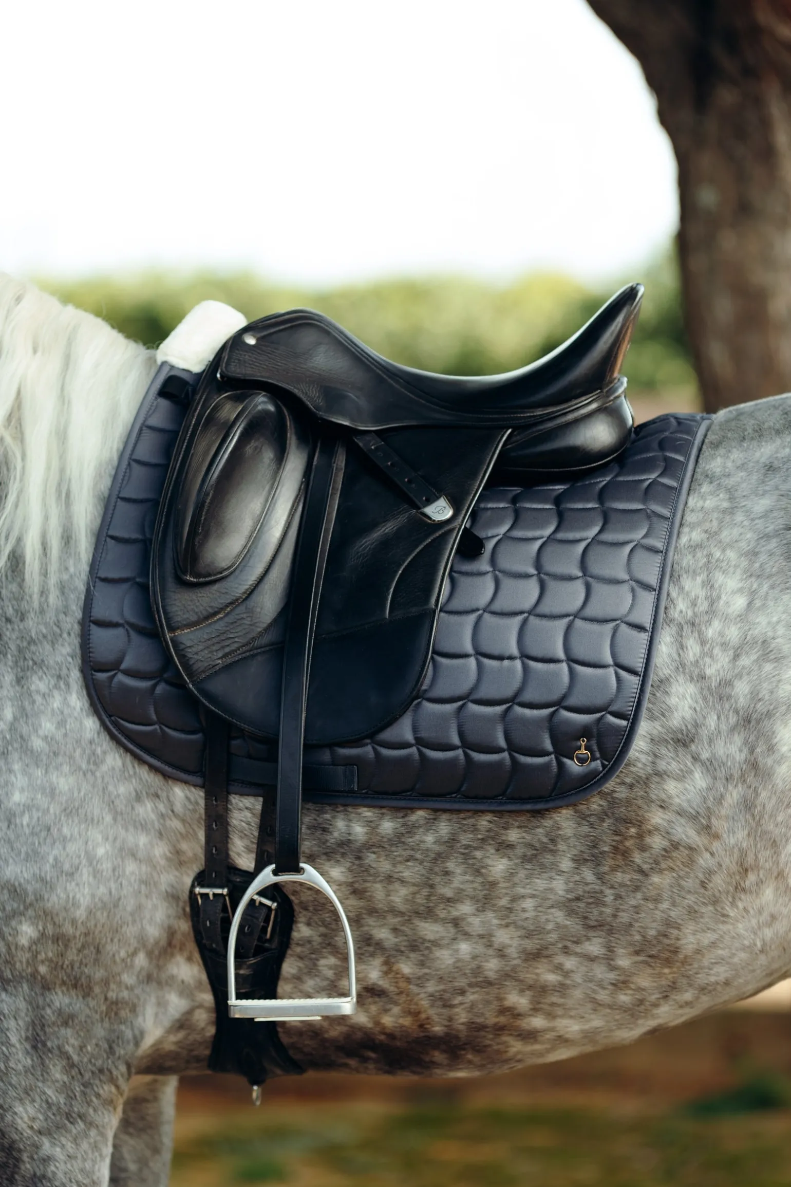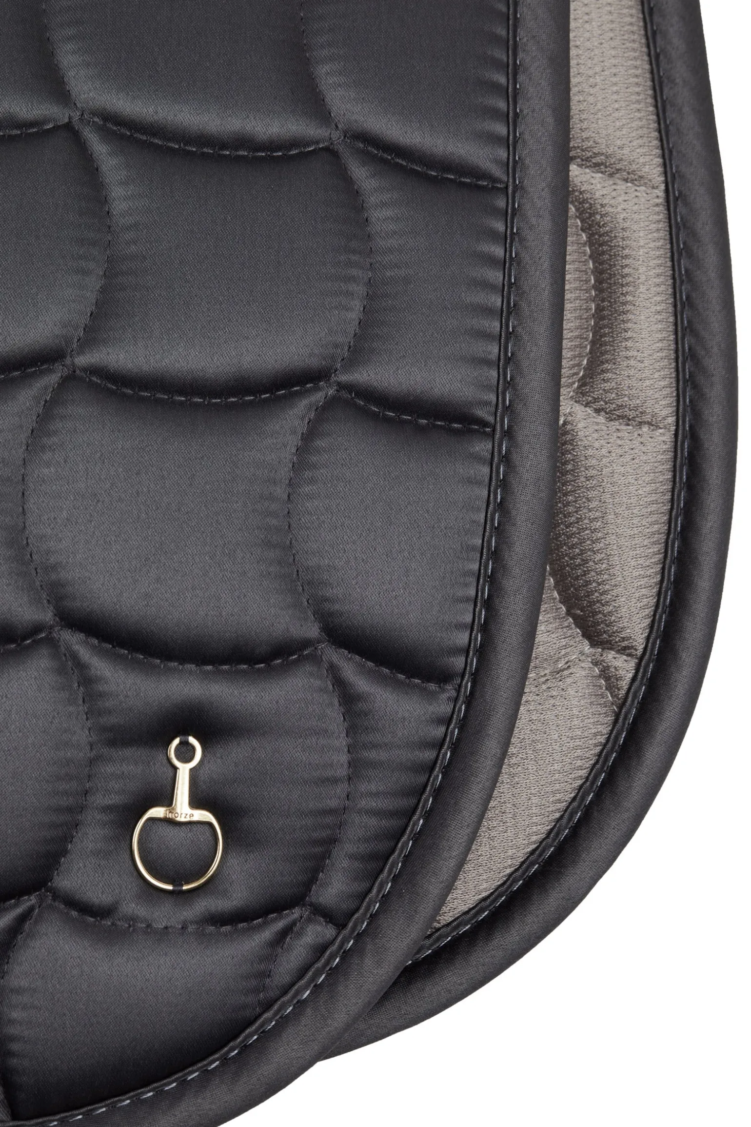 Die Horze Houston Schabracke ist mit einem atmungsaktiven Futter ausgestattet, das Feuchtigkeit ableitet. Die Wellensteppung sorgt für Komfort unter dem Sattel, und das Kunstfell am Widerrist ist besonders weich. Die gedeckten Farben sind zeitlos und passen gut zu deinem Sattelzeug. Diese Schabracke ist auch im Allzweckschnitt erhältlich. Kombiniere sie mit den Horze Houston Gamaschen für einen kompletten Look!