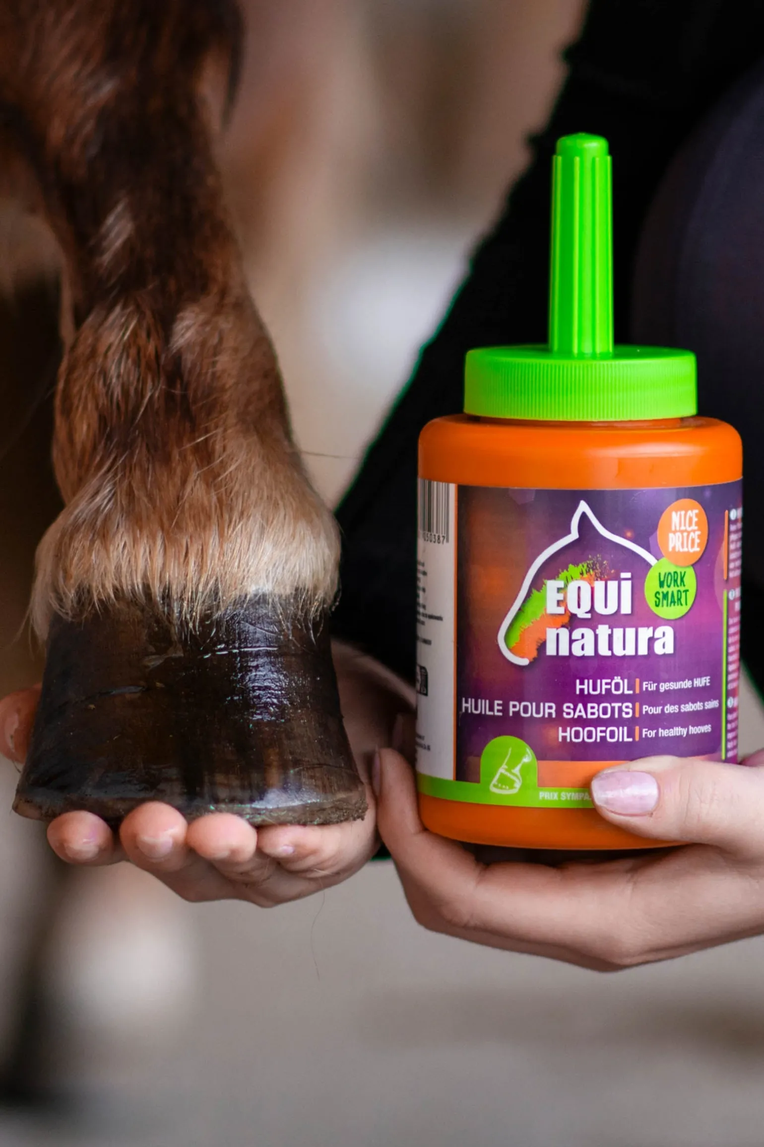 Für gesunde Hufe – Reine Pflanzenöle aus Avocado, Jojoba, Sesam und Ringelblume pflegen das Hufhorn und halten es elastisch. Huföl unterstützt das Hufwachstum, verbessert die Struktur und verleiht langanhaltenden Glanz. Avocadoöl: Wird von Haut und Hufhorn gut aufgenommen, pflegt brüchige Stellen, zieht schnell ein und hilft dank der enthaltenen Vitamine A und E sowie ungesättigter Fettsäuren, Feuchtigkeit besser zu speichern. Ringelblumenöl: Macht empfindliche, entzündete Haut widerstandsfähiger und unterstützt deren Regeneration, fördert die Durchblutung und steigert so das Hornwachstum. Jojobaöl: Pflegt intensiv, wird vom Horn nahezu rückstandslos aufgenommen und wirkt besonders feuchtigkeitsspendend, ohne zu fetten. Sesamöl: Enthält einen hohen Anteil an ungesättigter Linolsäure (Omega-6-Fettsäure), versorgt den Huf mit Vitaminen und Feuchtigkeit. Das Produkt ist ADMR-konform – bitte prüfe vor der Teilnahme an jeglichen Veranstaltungen außerhalb Deutschlands die jeweiligen lokalen Regeln.