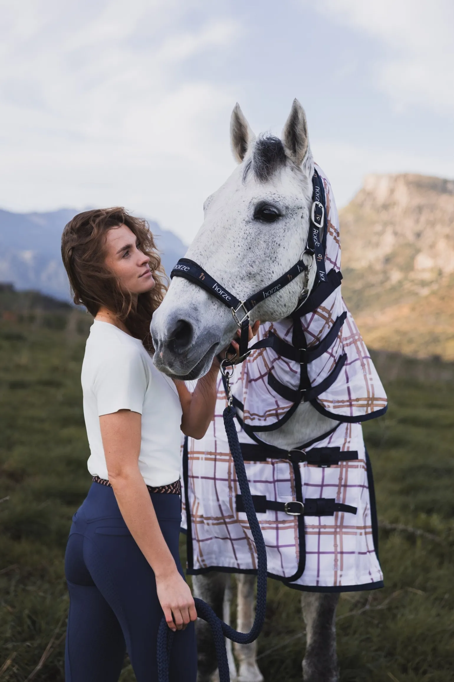 Dieses hochwertige Halfter bietet optimalen Komfort und individuelle Anpassungsmöglichkeiten. Die Genick- und Backenriemen lassen sich leicht verstellen, um eine perfekte Passform zu gewährleisten. Eine weiche Neoprenpolsterung an Nasenriemen und Genickstück sorgt für angenehme Dämpfung. Das Halfter ist zusätzlich gepolstert und besteht aus nachhaltigen Materialien, die Langlebigkeit und Umweltbewusstsein vereinen.