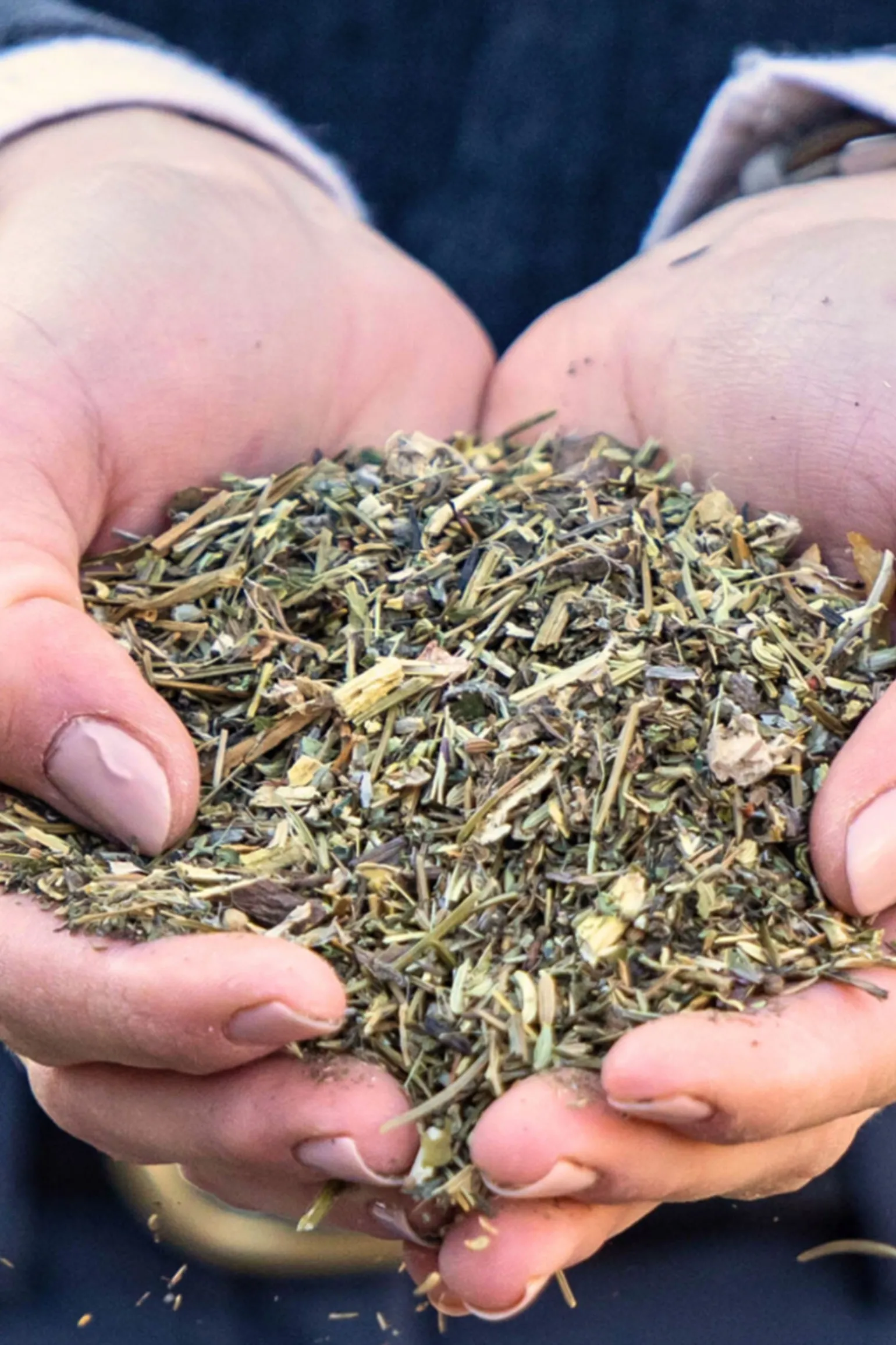 Zusammensetzung: 20 % Brennnesselkraut, 12 % Thymiankraut, 10 % Fenchelfrüchte süß, 10 % Fichtennadeln, 8 % Eibischwurzel, 6 % Süßholzwurzel, 6 % Spitzwegerich, 6 % Sonnenhutkraut, 6 % Anisfrüchte, 4 % Johannisbrotschrot, 4 % Isländische Flechte, 2 % Salbeiblätter, 4 % Kalmuswurzel, 2 % Lindenblüten. Dopingrelevanz: 48 Stunden Karenzzeit. Lagerhinweis: Futtermittel kühl, trocken und vor direkter Sonneneinstrahlung geschützt lagern. Nach Anbruch zügig verbrauchen.