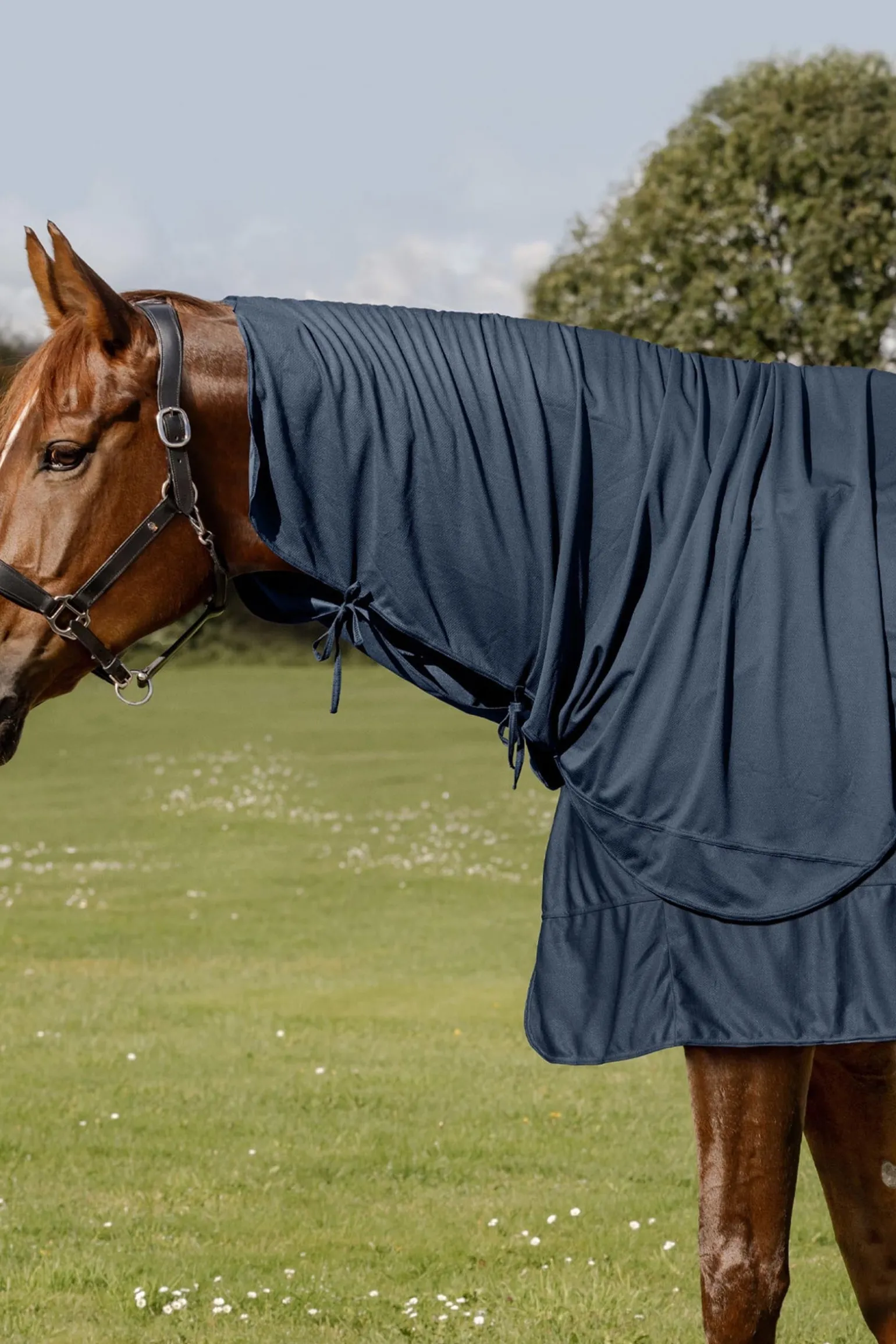 Für eine gleichmäßige Kühlung des Pferdehalses ergänzt das Waldhausen Health + Care Ice Layer Halsteil die dazugehörige Ice Layer Kühldecke perfekt. Die einfache, wassersparende Anwendung unterstützt effektiv die schonende Senkung der Körpertemperatur des Pferdes. Besonders an heißen Sommertagen und nach intensiven Trainingseinheiten sorgt das speziell ausgewählte Material für eine angenehme Wasserverdunstung. Dank des praktischen Klettverschlusses lässt sich das Halsteil sicher und einfach an Decke und Halfter befestigen. Bitte nur unter Aufsicht verwenden. Während der Benutzung sollte sich das Pferd weder frei noch viel bewegen, um die Kühlung in einer körperlichen Ruhephase zu ermöglichen. Die Decke ist im Lieferumfang nicht enthalten.