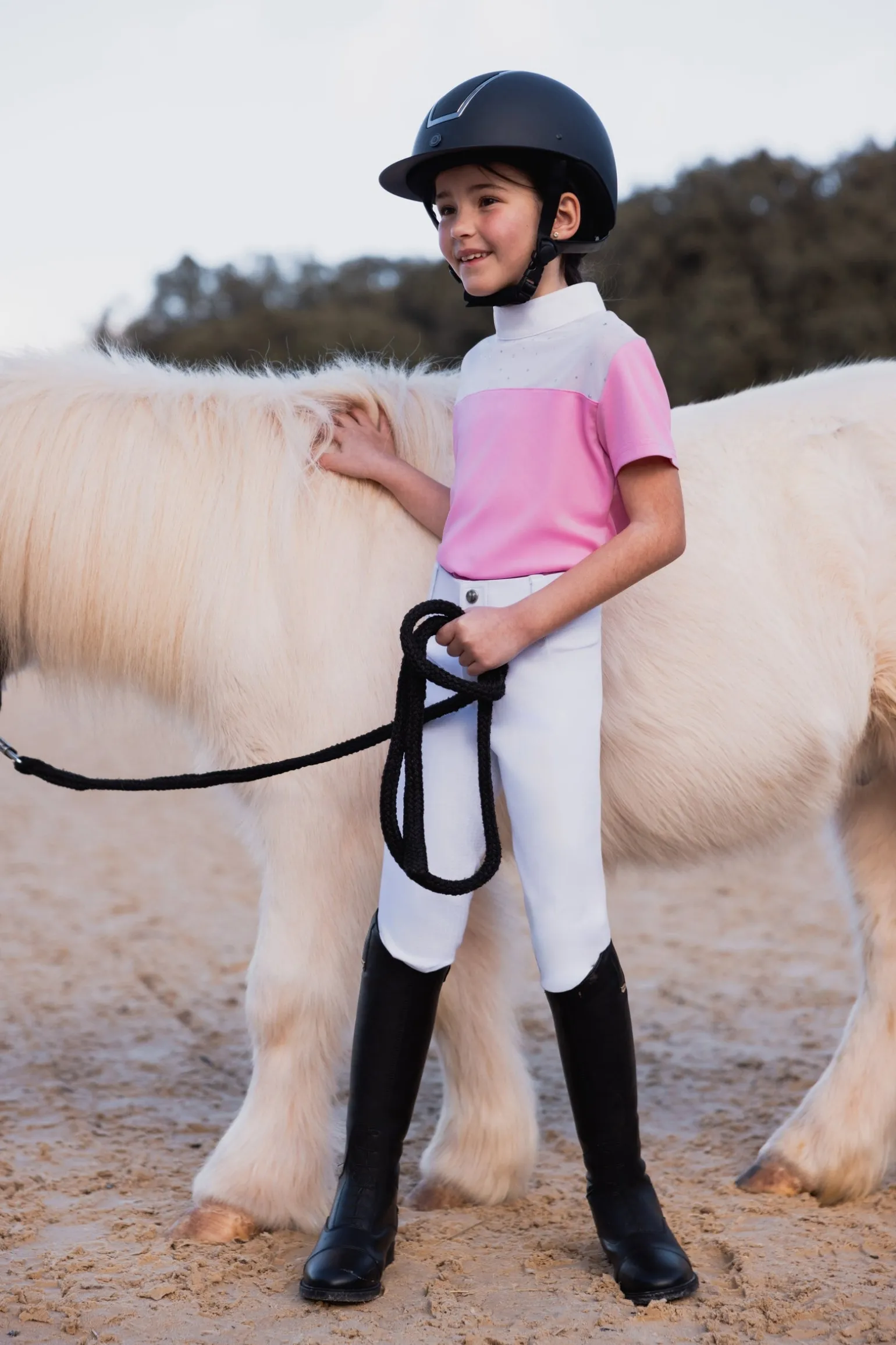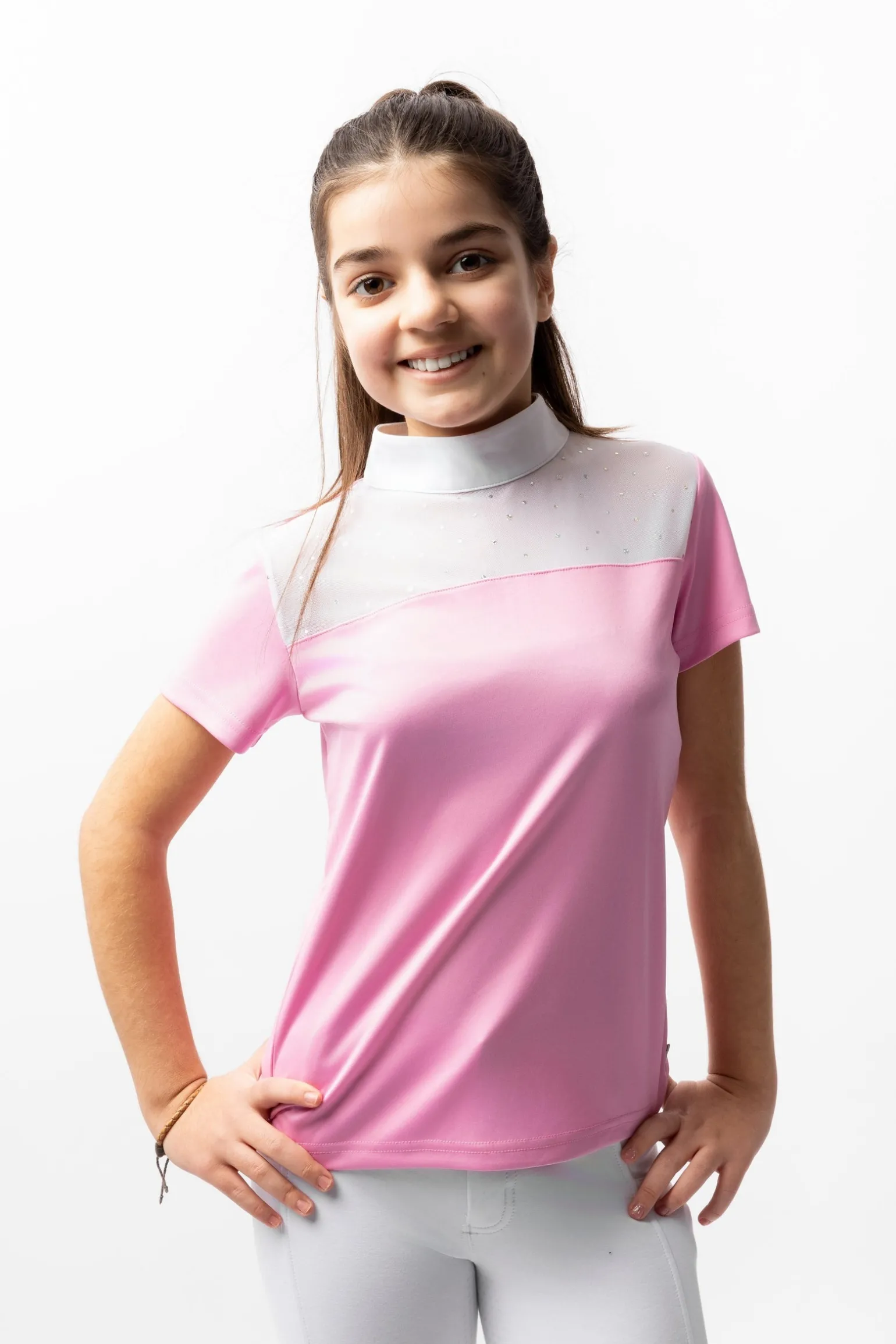 Glitzerndes Show Shirt mit funktionellem Stoff, damit du dich auf dem Turniergelände wohl fühlst.