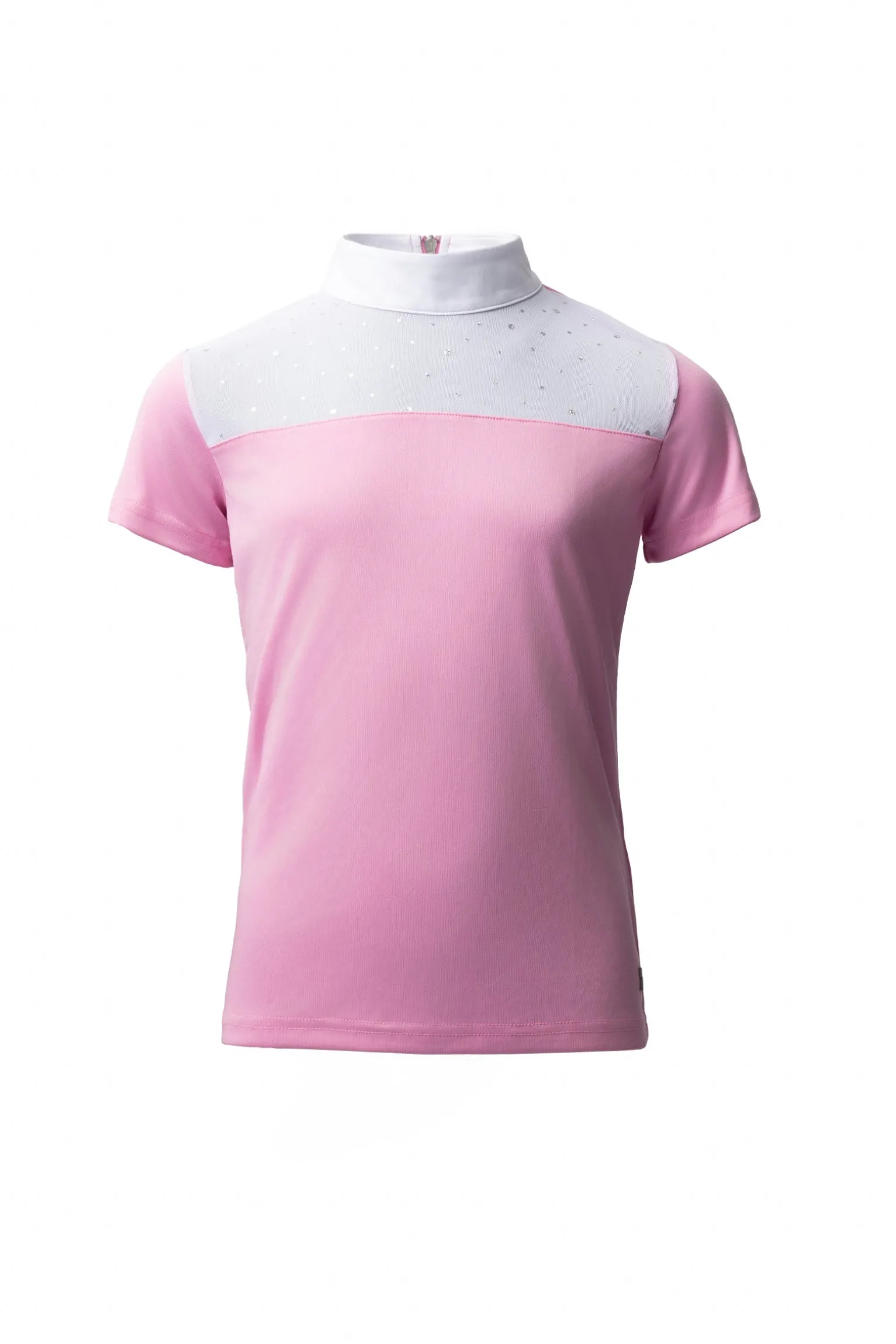 Atmungsaktives und schnell trocknendes Funktionsmaterial macht dieses Turnier-Shirt für dein Kind angenehm zu tragen. Die obere Vorderseite besteht aus Mesh und ist mit Strasssteinen verziert, damit es im Viereck besonders glänzt. Für ein einfaches An- und Ausziehen hat das Shirt einen halben Reißverschluss auf der Rückseite.