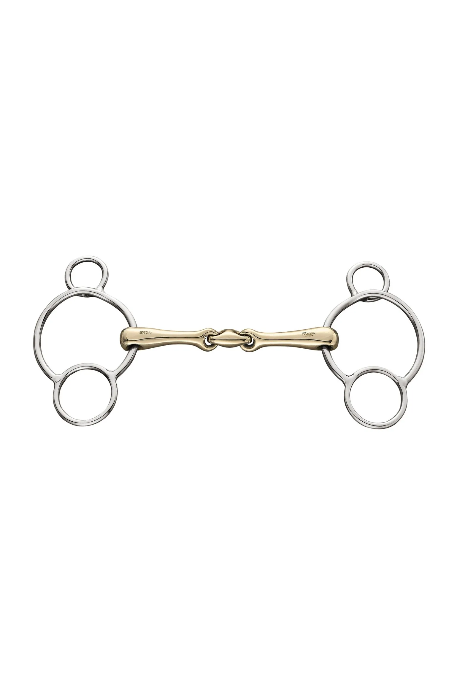 Mundstück: doppelt gebrochen.Material: Sensogan mit Edelstahlseiten.Gebissstärke: 16 mm.Ringdurchmesser: 70 mm.Gebissringart: Universal.