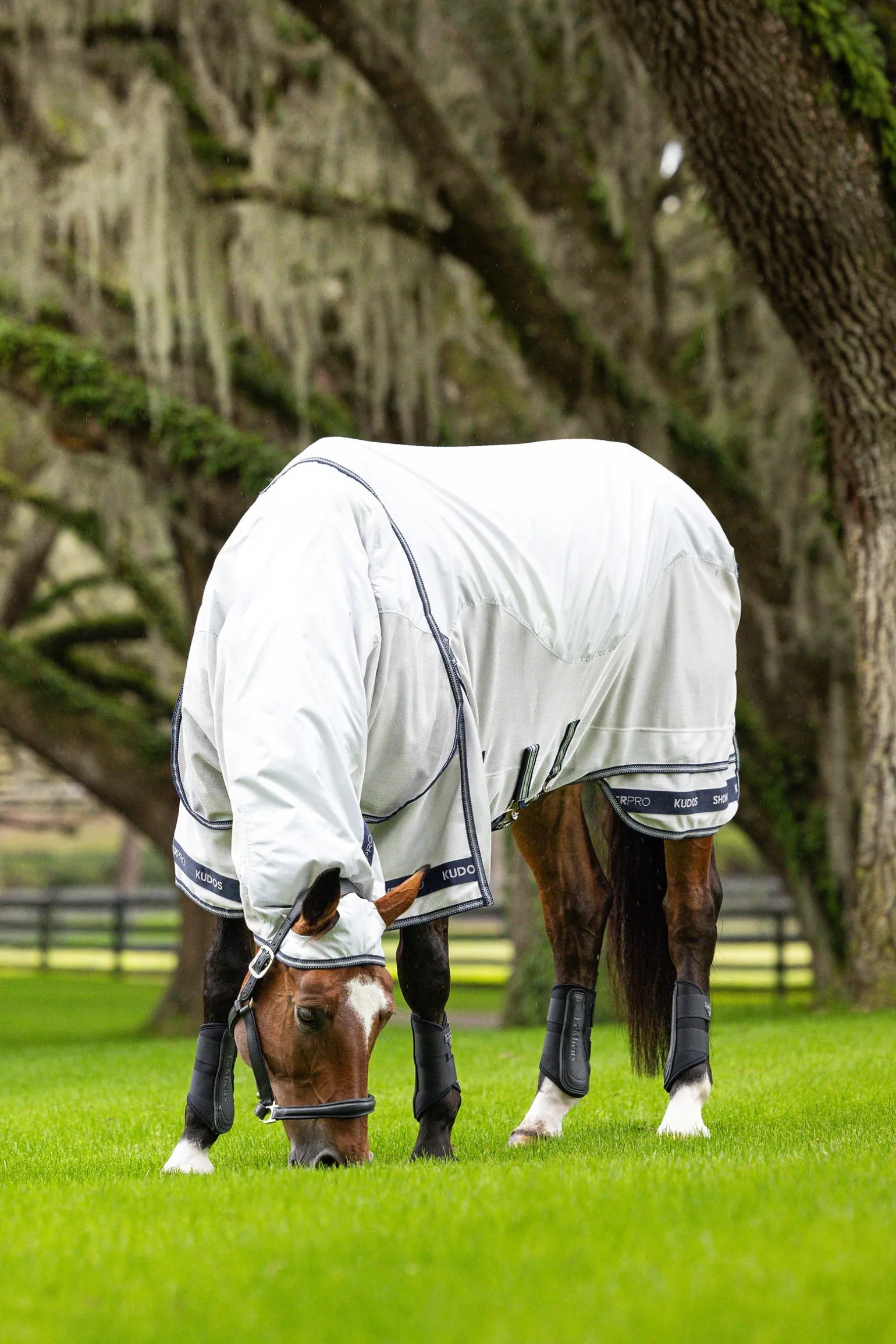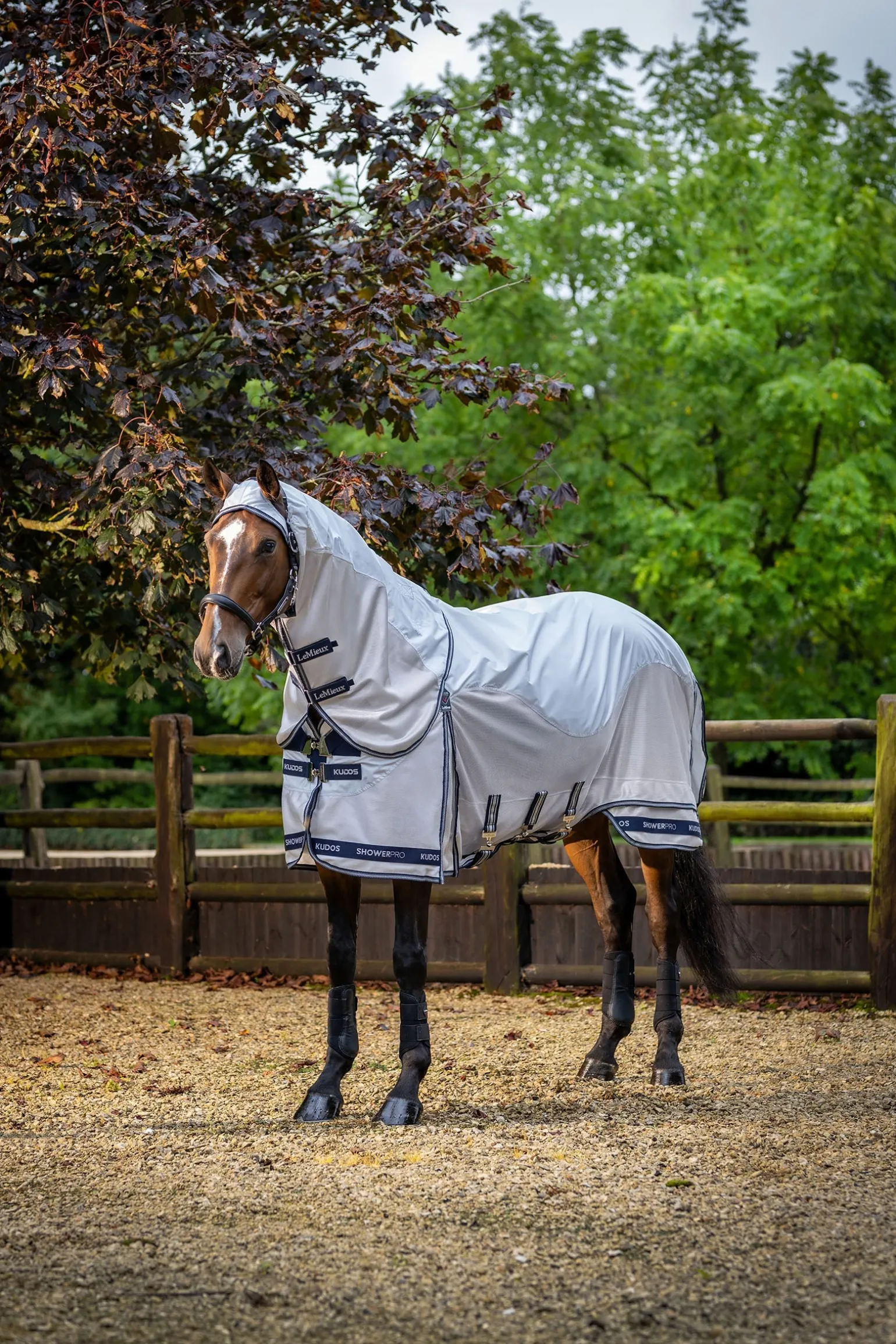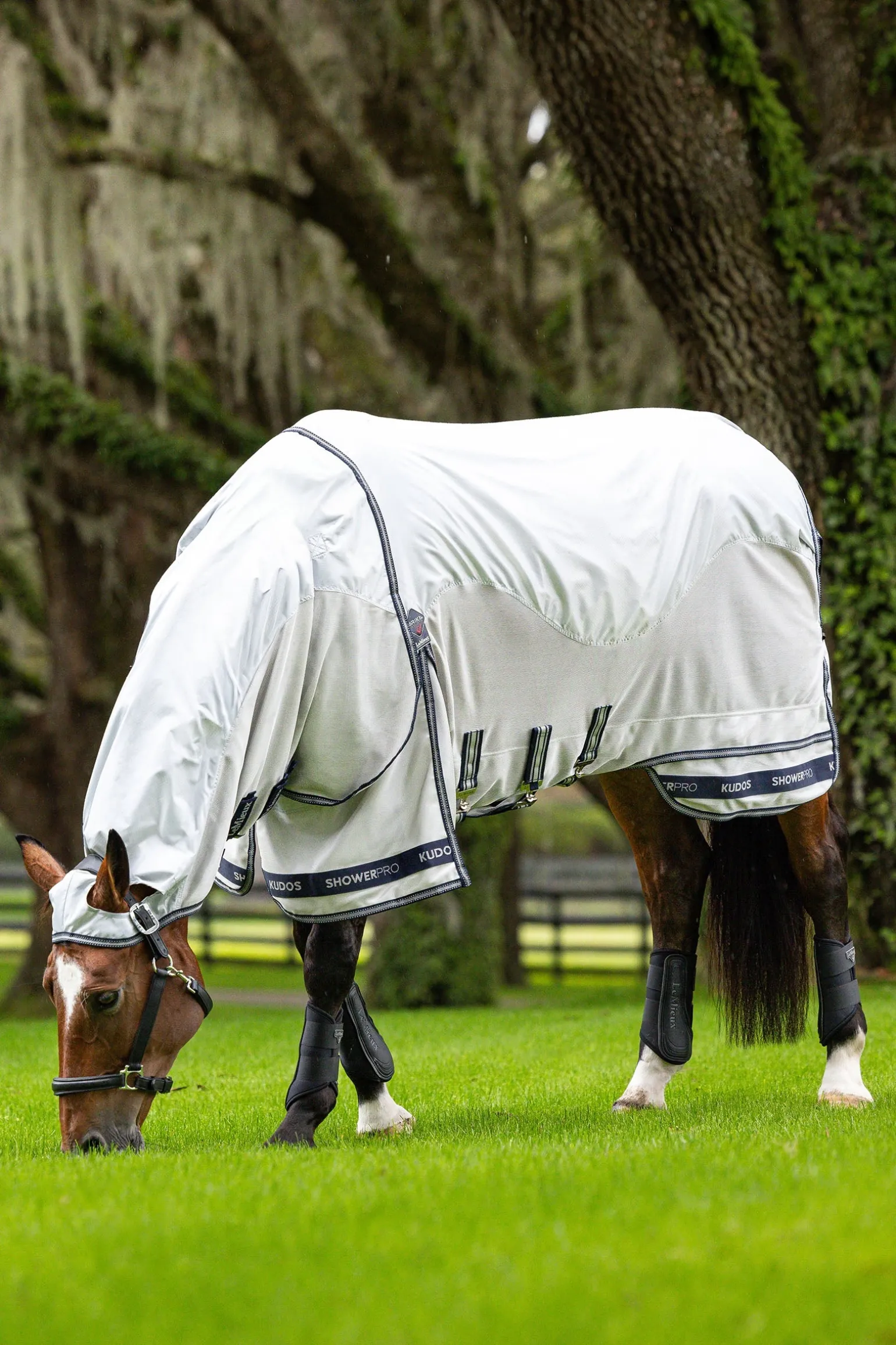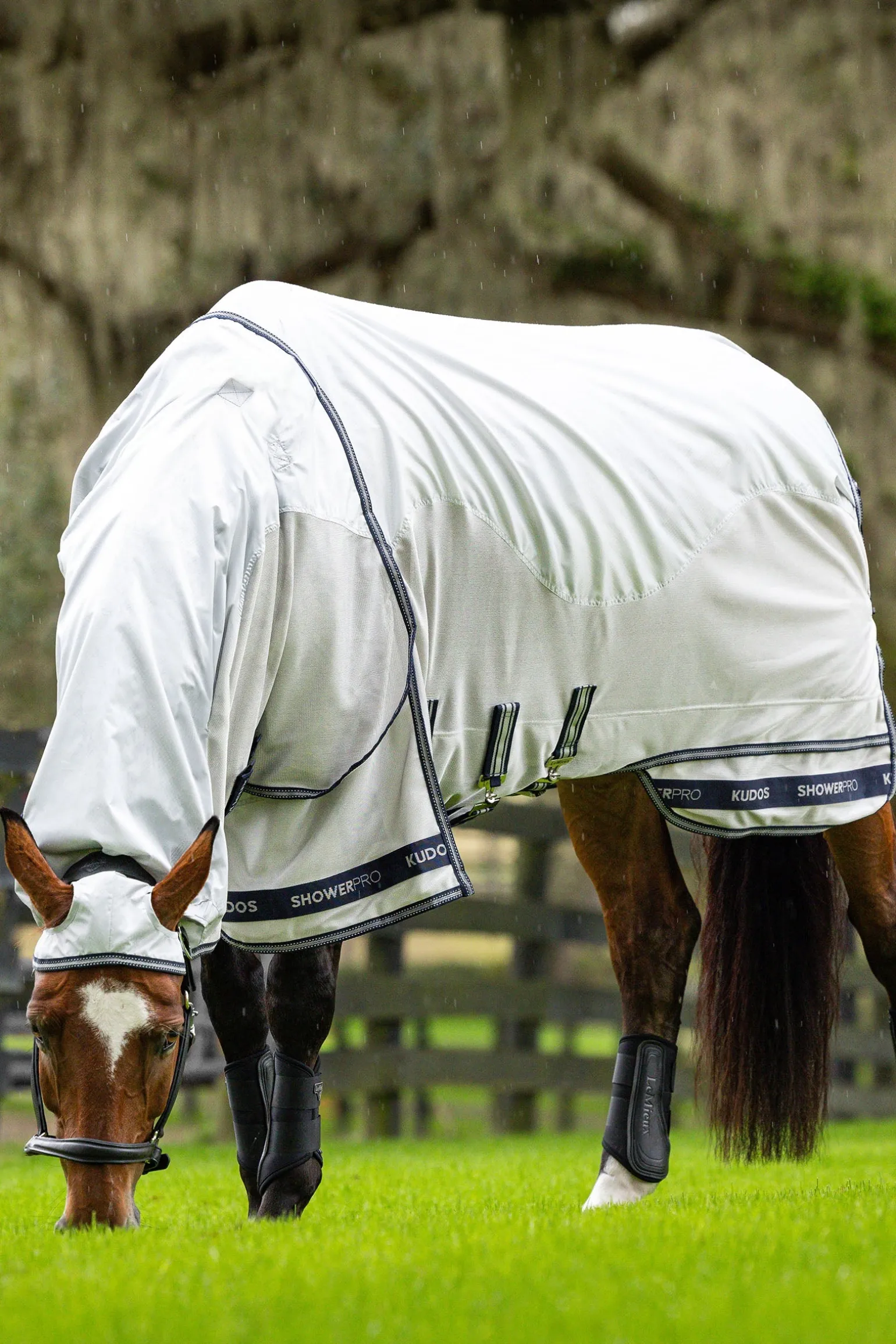 Unverzichtbarer Schutz vor Fliegen und stechenden Insekten bei nassem Wetter: Diese wasserdichte Fliegendecke besteht aus strapazierfähigem 420 Denier Diamond Ripstop-Material. Diamond Ripstop bietet eine verbesserte Reißfestigkeit, sodass eine leichtere Decke mit niedrigerer Denier-Zahl gewählt werden kann – ohne Abstriche bei der Robustheit. Sie wurde für umfassenden Körperschutz entwickelt und ist mit atmungsaktivem Mikromesh unter dem Bauch vollständig ausgekleidet. Am Widerrist sorgt eine 3D-Mesh-Polsterung für Komfort und Atmungsaktivität – ganz im Sinne des Pferdewohls. Die antistatische und antibakterielle Innenseite an Rücken, Schultern und Hals verhindert Scheuerstellen und verleiht dem Fell zusätzlichen Glanz. Der vollständig abnehmbare Halsteil reicht über die Ohren und sorgt für flexible Einsatzmöglichkeiten. Eine extra lange Schweifklappe schützt Schweifrübe und empfindliche Hautpartien im hinteren Bereich. Tiefe Schulterfalten ermöglichen maximale Bewegungsfreiheit auf der Koppel. Der einzigartige, patentierte zweiteilige Deckenschnitt von LeMieux reduziert die Spannung entlang des hinteren Saums – für besonders hohen Tragekomfort.