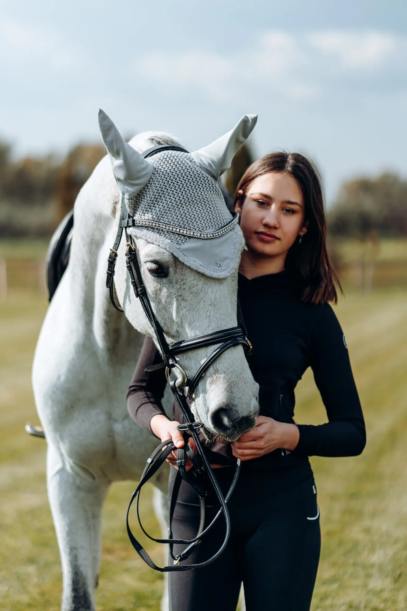 Unsere kühlende Horze Fliegenhaube schützt dein Pferd mit komfortablem Netzmaterial vor Überhitzung. Das Metallic-Logo ist ein subtiles Detail. Kombinierbar mit der kühlenden Schabracke (erhältlich im Dressur- und Vielseitigkeitsschnitt) für den kompletten Look.