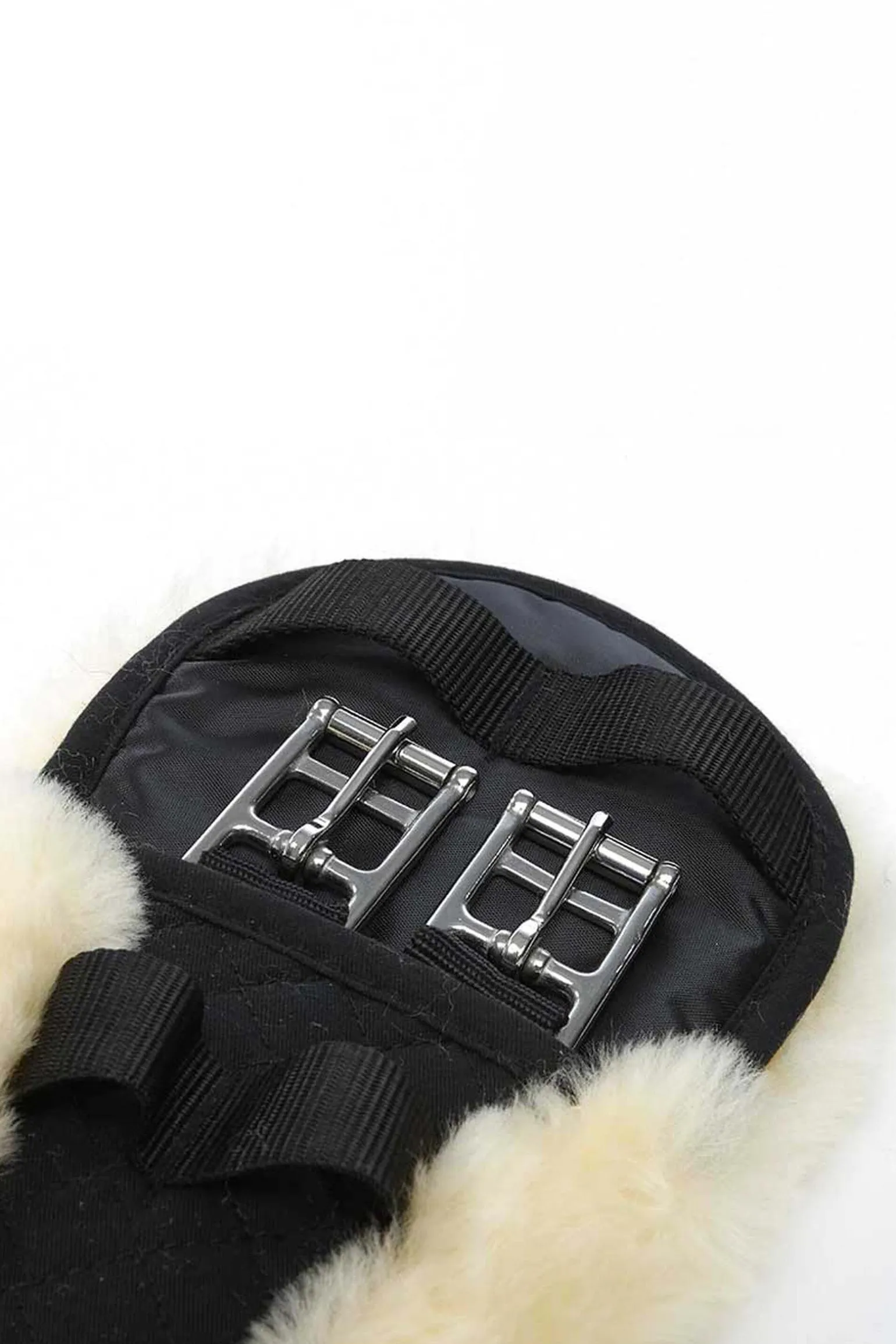 Anatomisch geformter Gurt mit echtem Lammfell. Die Verbreiterung in der Mitte sorgt für eine angenehme Druckverteilung, die Einschnürungen zu den Seiten hin geben mehr Ellbogenfreiheit.