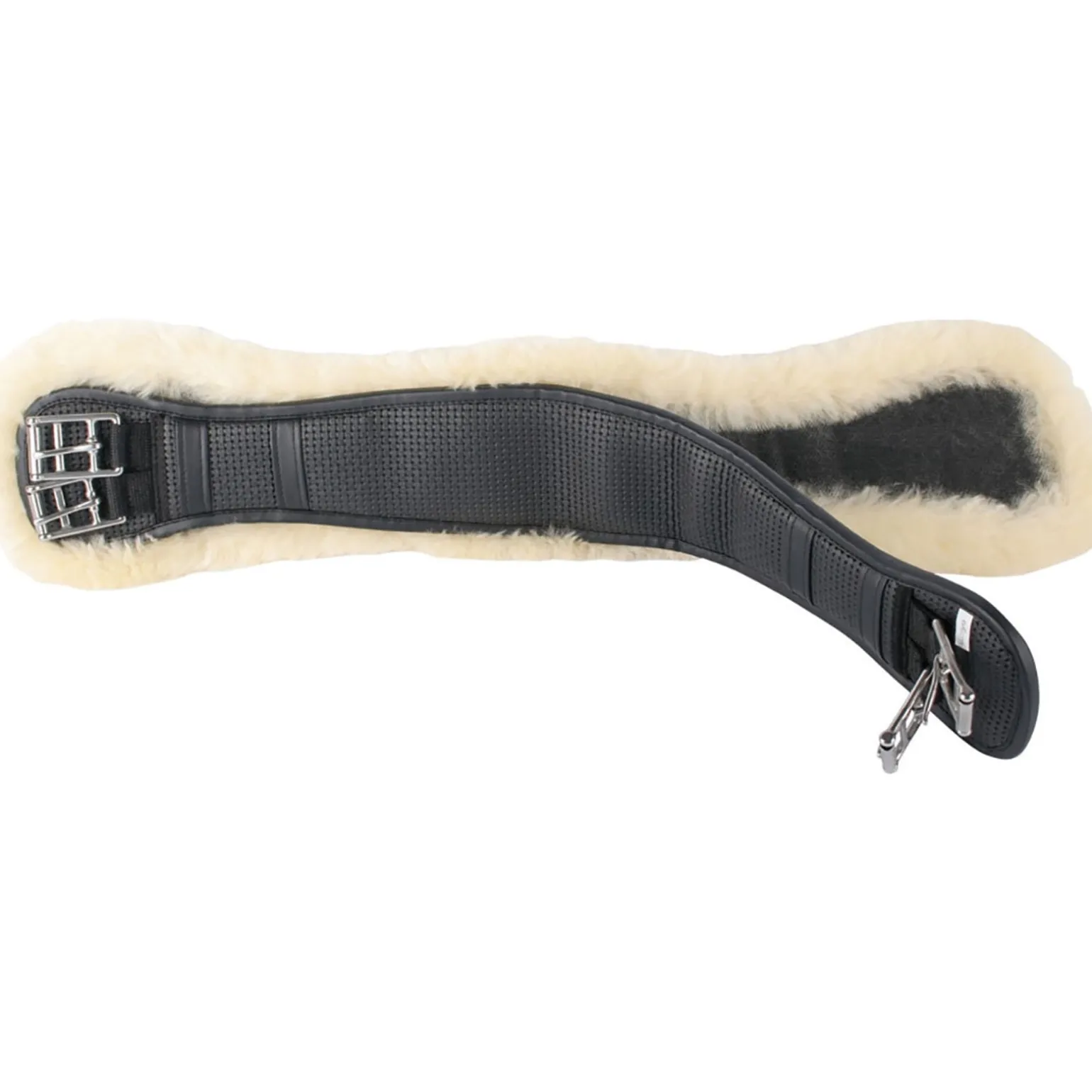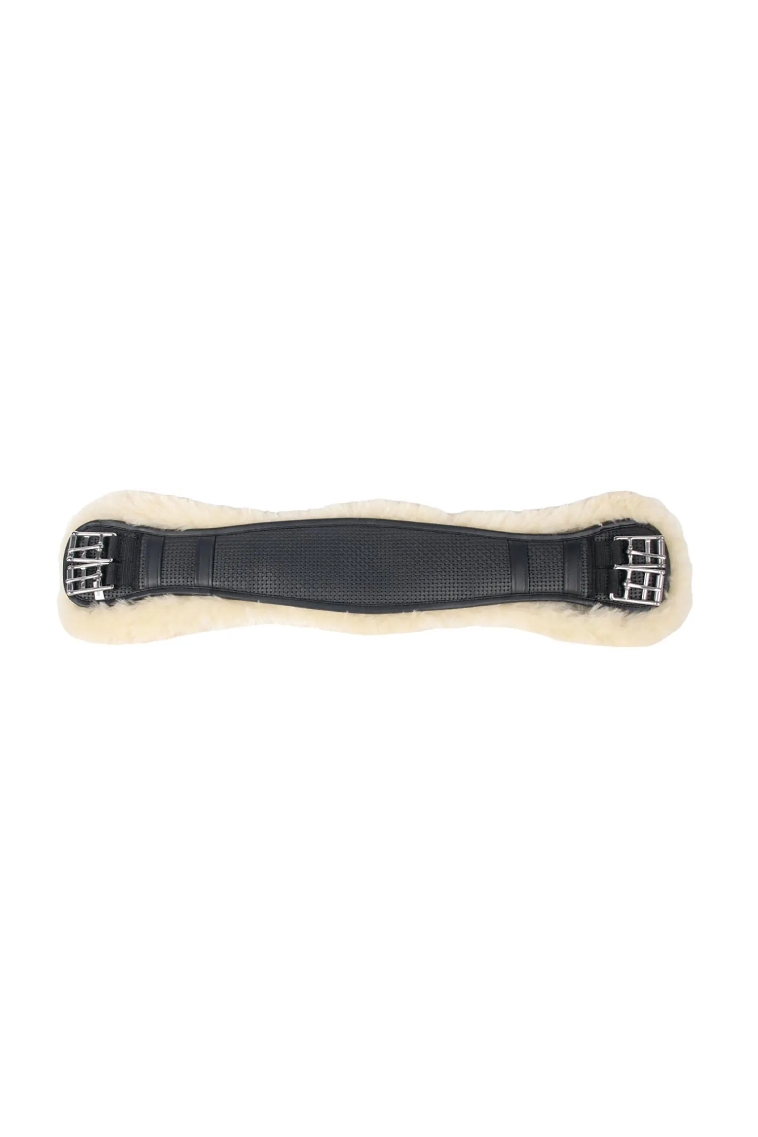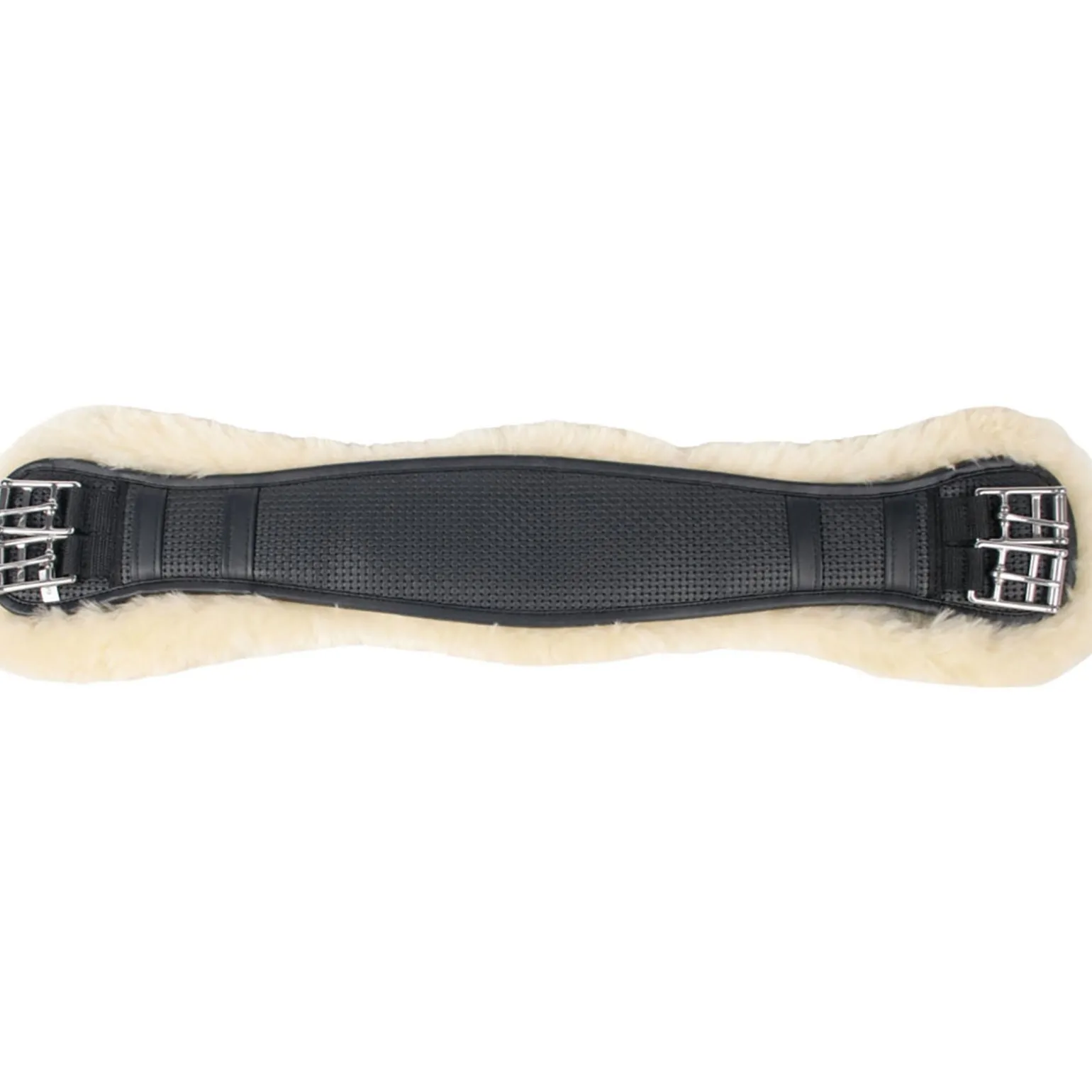 Anatomisch geformter Neopren-Dressurgurt. Der Gurt hat ein abnehmbares (waschbares) Futter aus 100% Merinowolle, um die empfindliche Pferdehaut zu schützen.