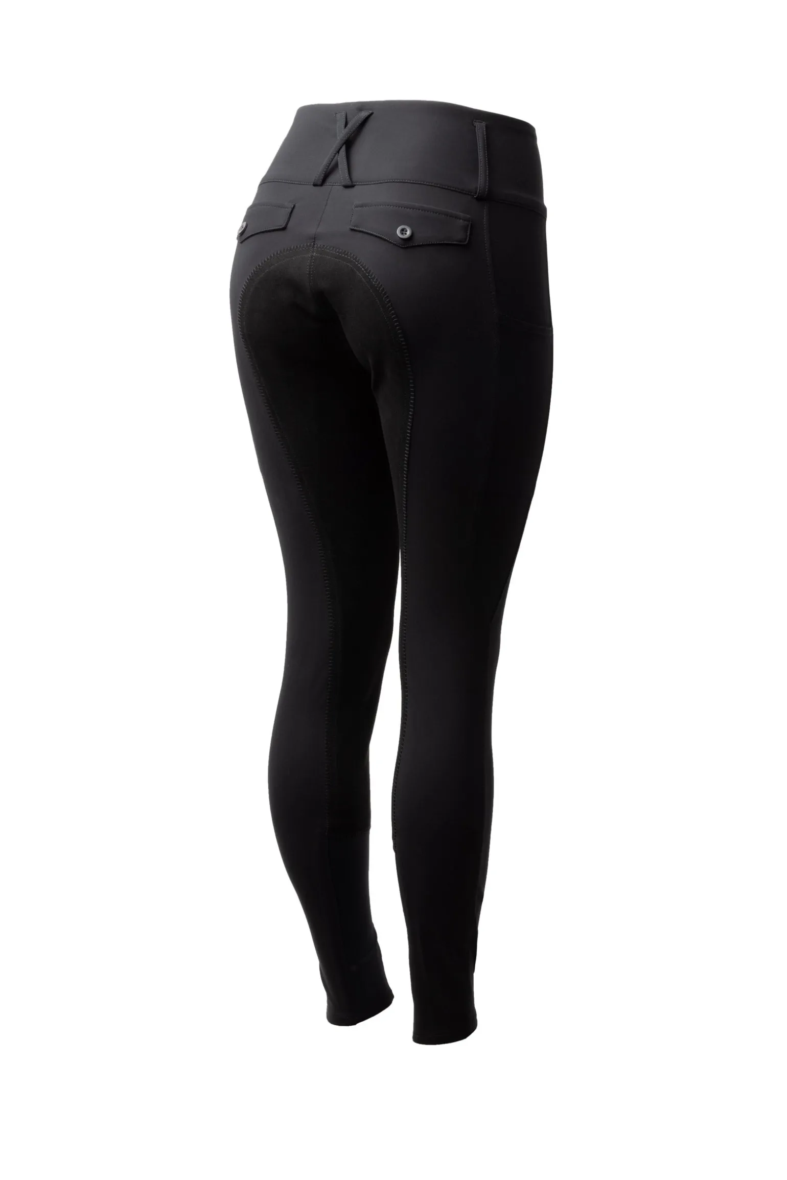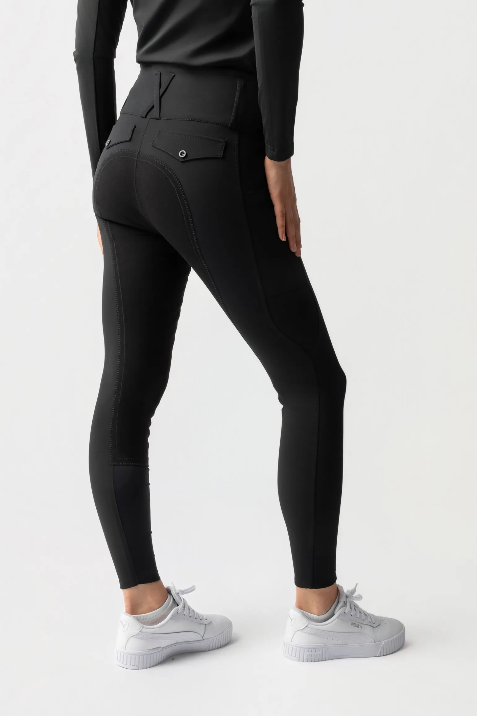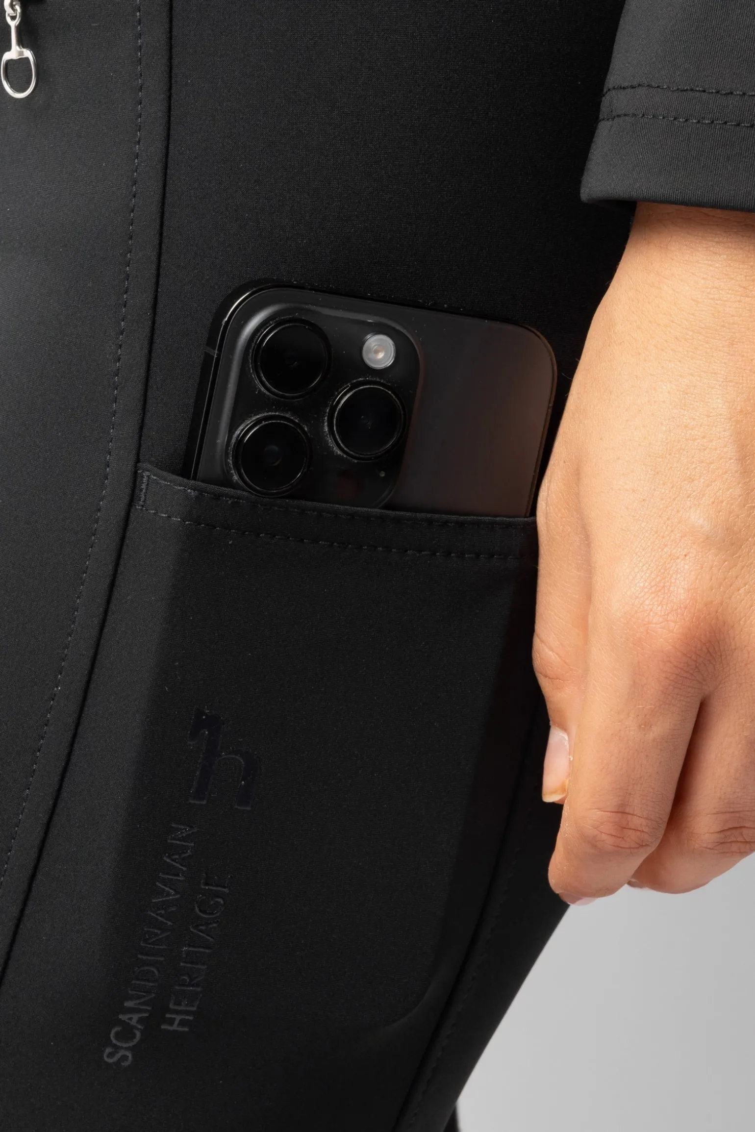 The Horze Leonie Breeches combine sustainability with performance. Their full seat is made of vegan suede leather, offering a secure grip in the saddle. A high waist and wide waistband ensure comfort, while belt loops add a polished look. Practical thigh pockets with zippers provide storage for your phone and essentials. Modern, comfortable, and eco-conscious, these breeches are a great choice for everyday riding.