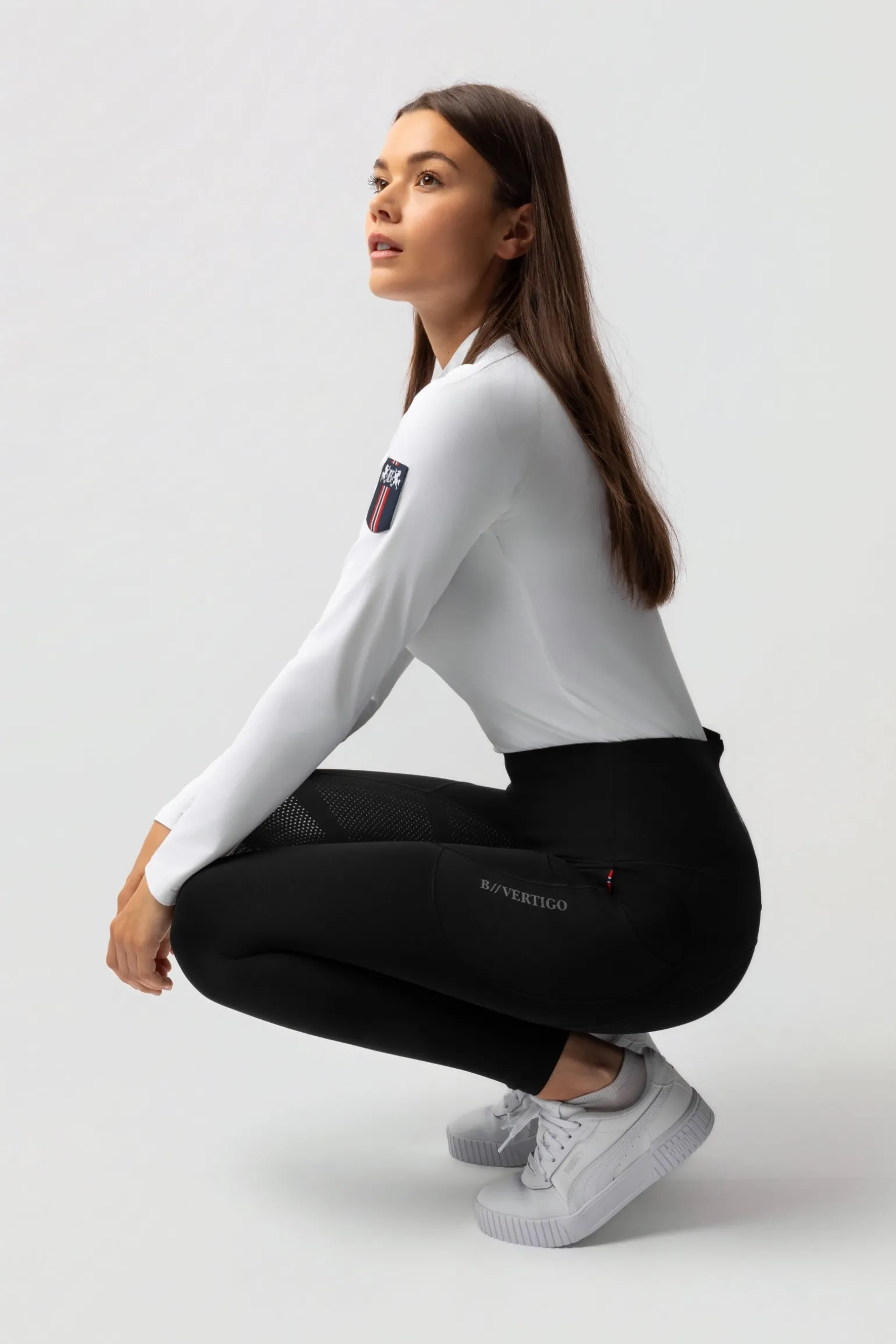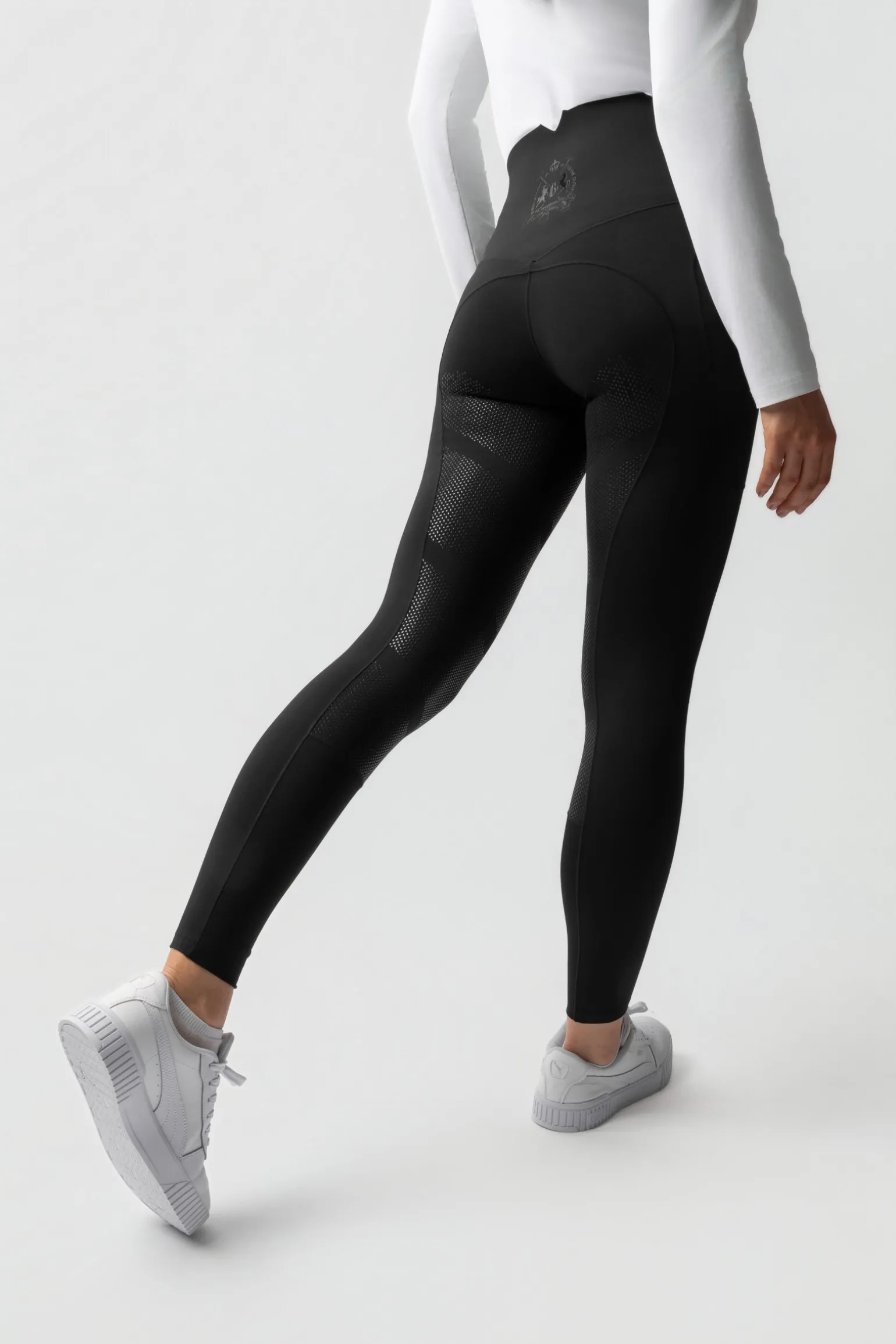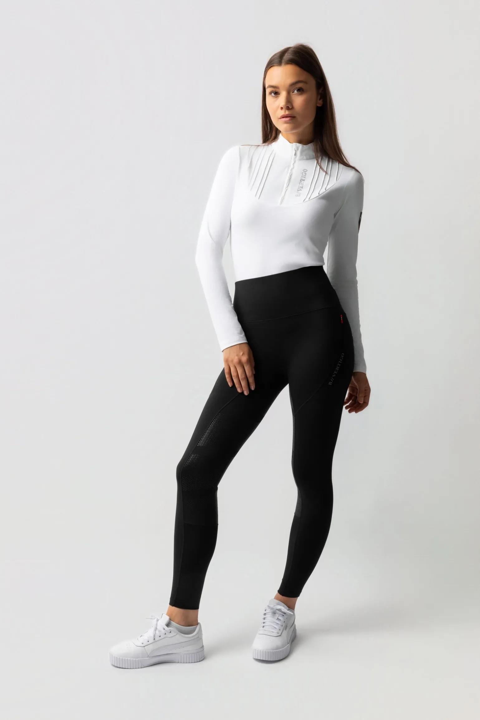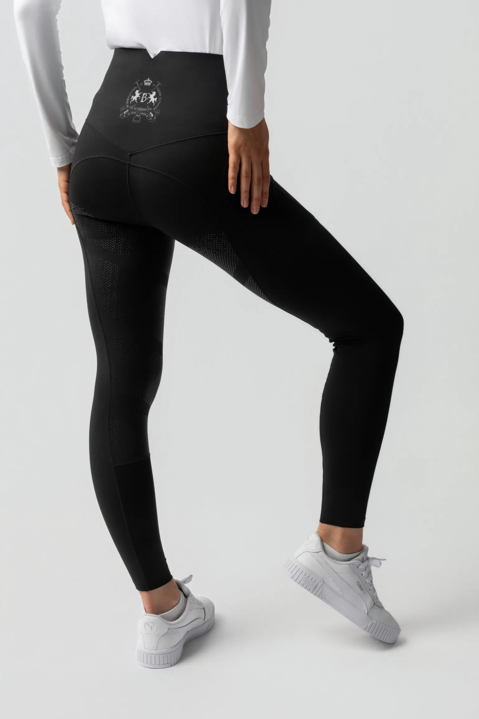 The B Vertigo Leonora Seamless Thermo Tights are designed for warmth and style during winter riding. Their insulating yet breathable fabric keeps you comfortable, while the seamless waistband creates a flattering silhouette. A silicone full seat offers secure grip in the saddle, and reflective logo details enhance safety. The brushed inside provides extra softness, and a thigh phone pocket adds practicality. With seamless edging and Lycra leg bottoms, these tights ensure comfort and elegance for daily training.