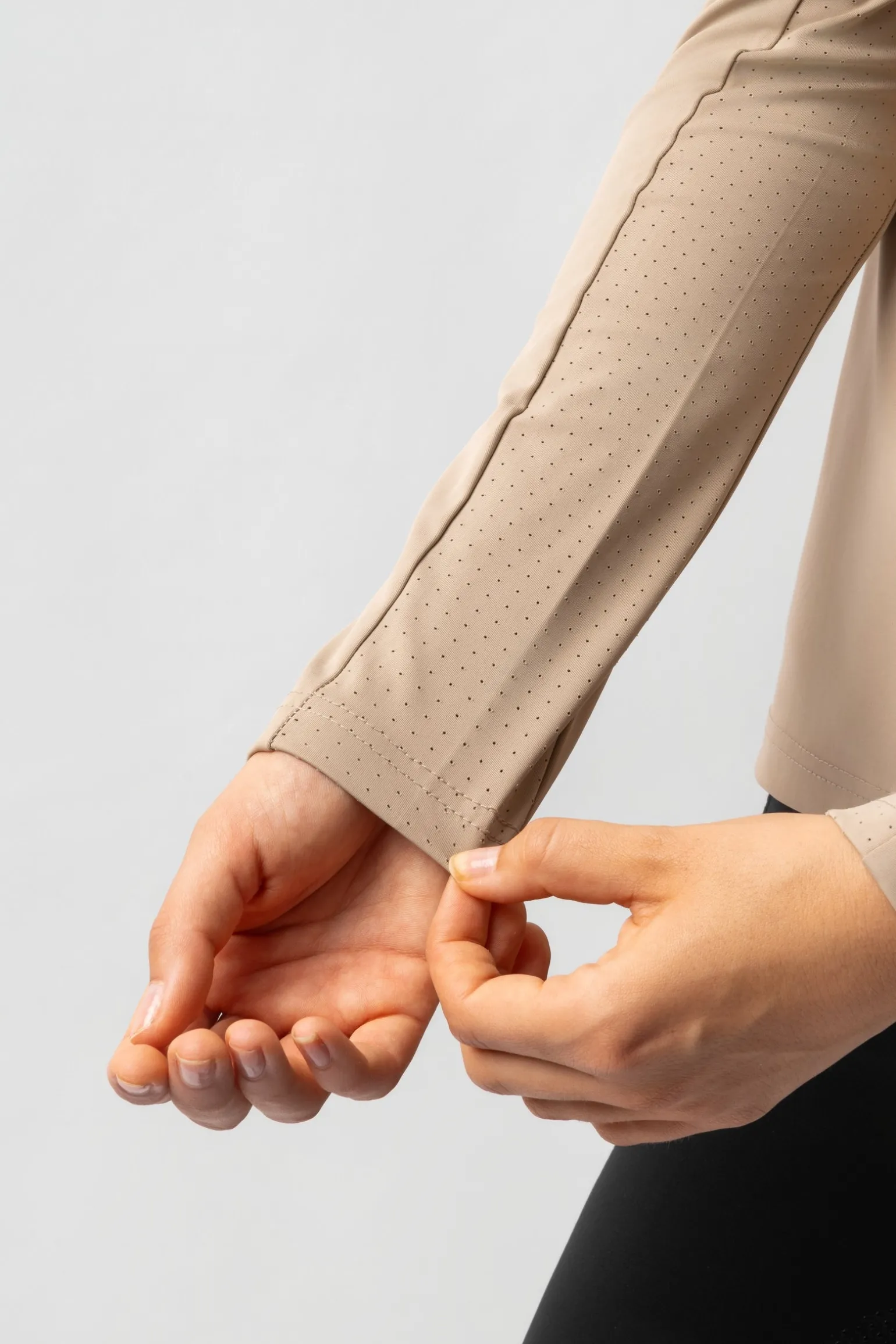 The Horze Lilian Longsleeve Training Shirt offers warmth and breathability for active riding. Its brushed inside fabric keeps you cozy, while laser-cut mesh inserts under the arms provide ventilation. A half zipper and stand-up collar make it practical for layering. Designed for both comfort and performance, this shirt is perfect for training sessions in cooler weather.