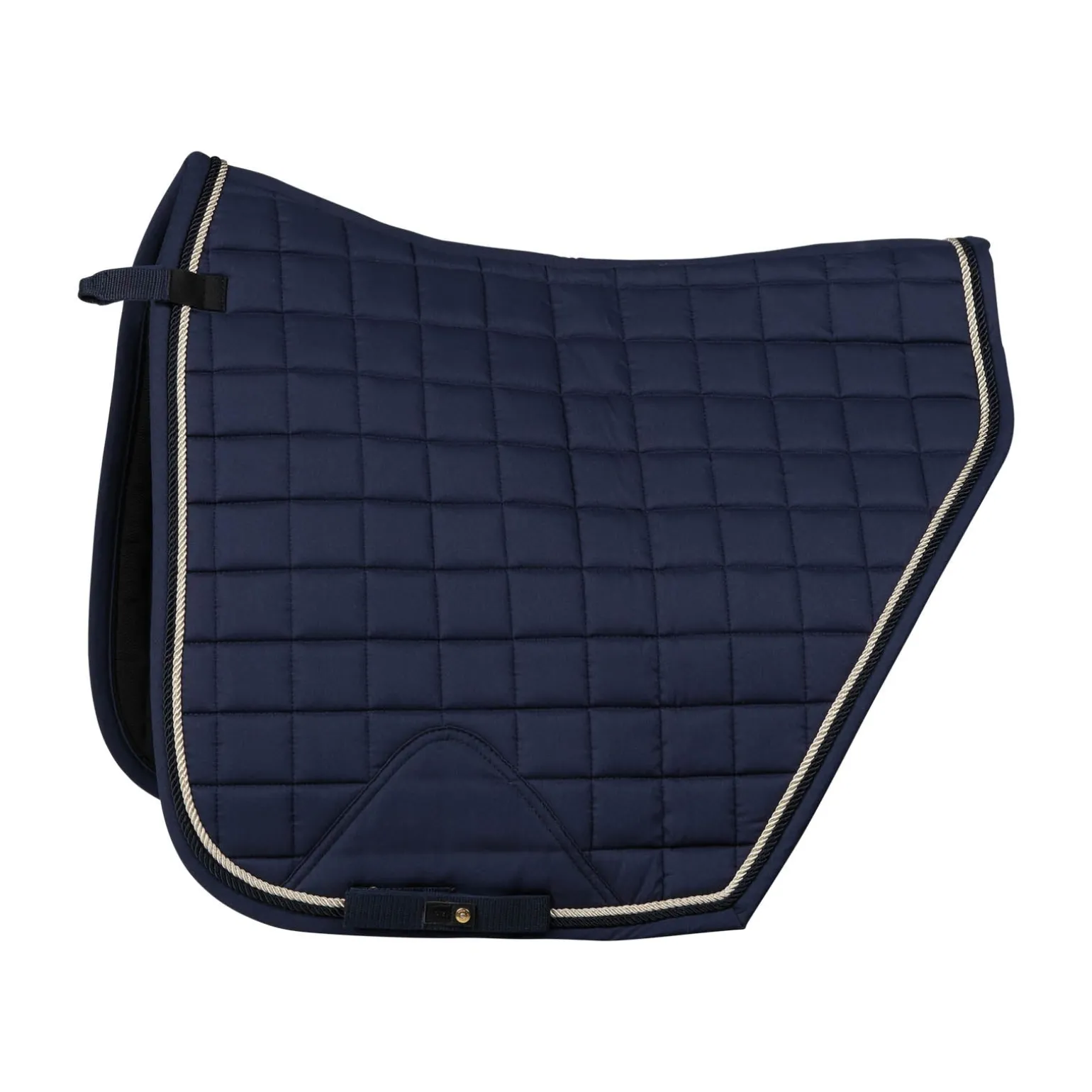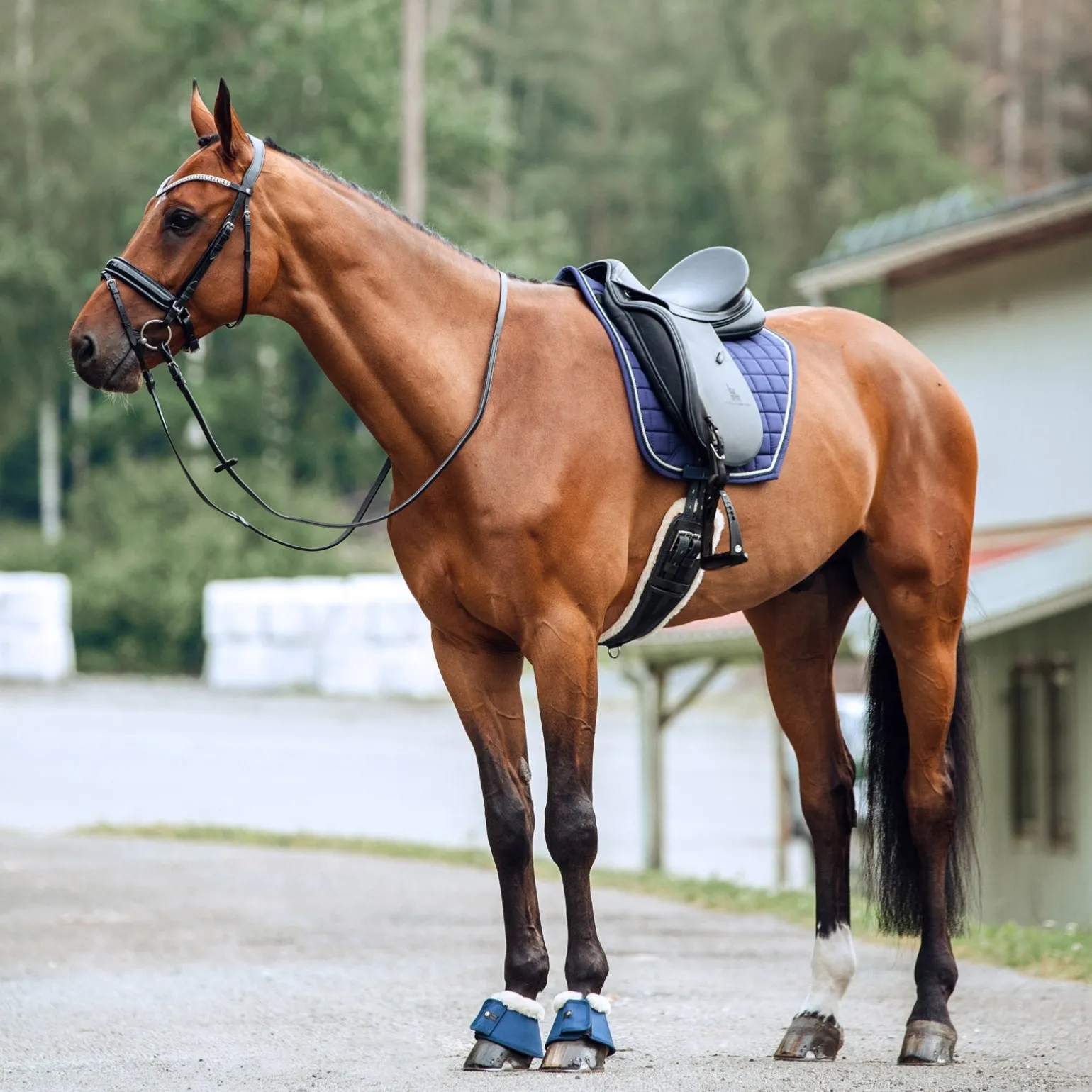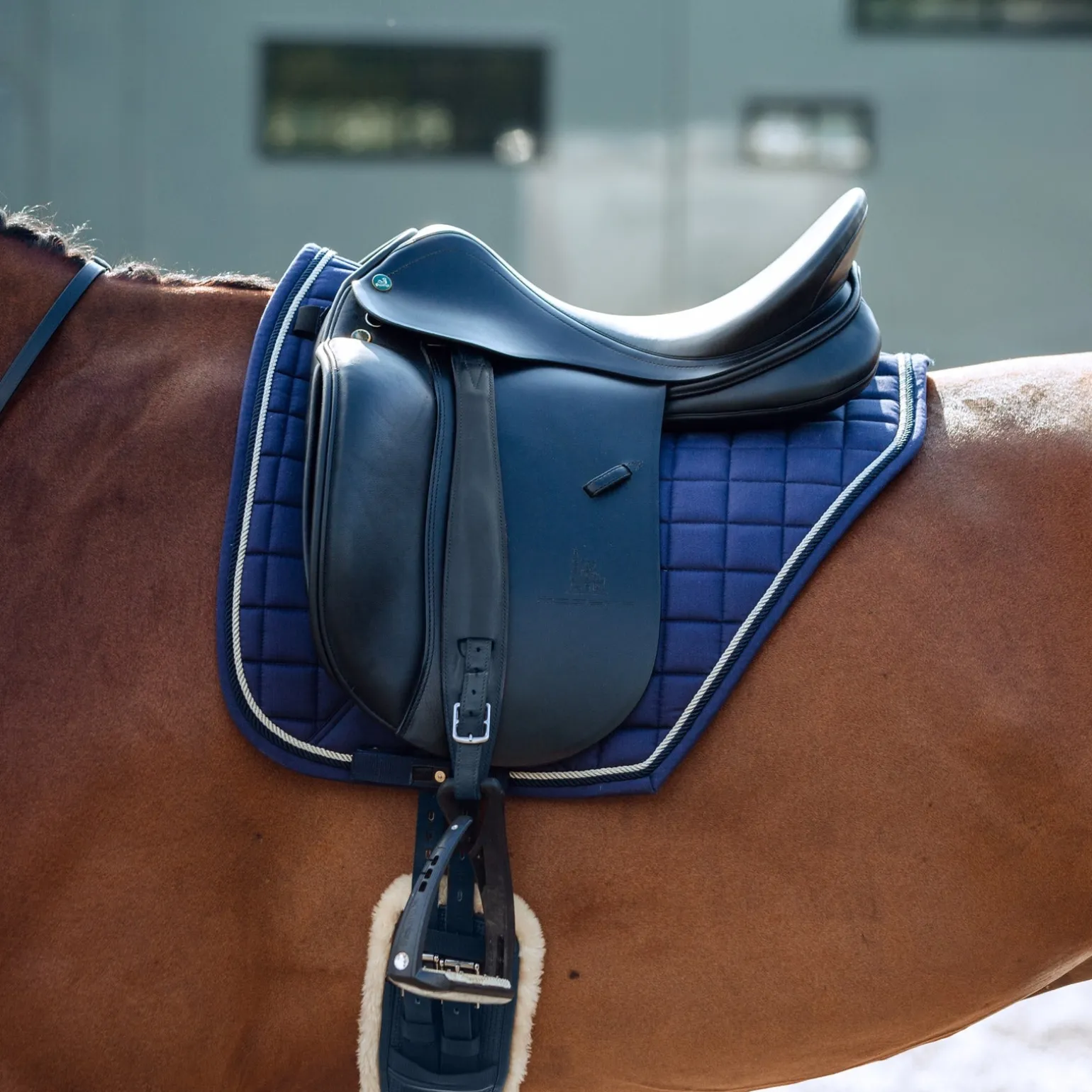 Die Horze Lincoln Dressurschabracke ist auf einzigartige Weise geschnitten, um deinen Sattel perfekt zu unterstützen. Die quadratische Steppung ist zeitlos, und die doppelte Kordel-Einfassung verleiht ihr einen hochwertigen Look. Klettverschlussriemen halten die Schabracke an ihrem Platz. Eine kleine Horze-Logo-Plakette an der Unterseite vervollständigt den Look.