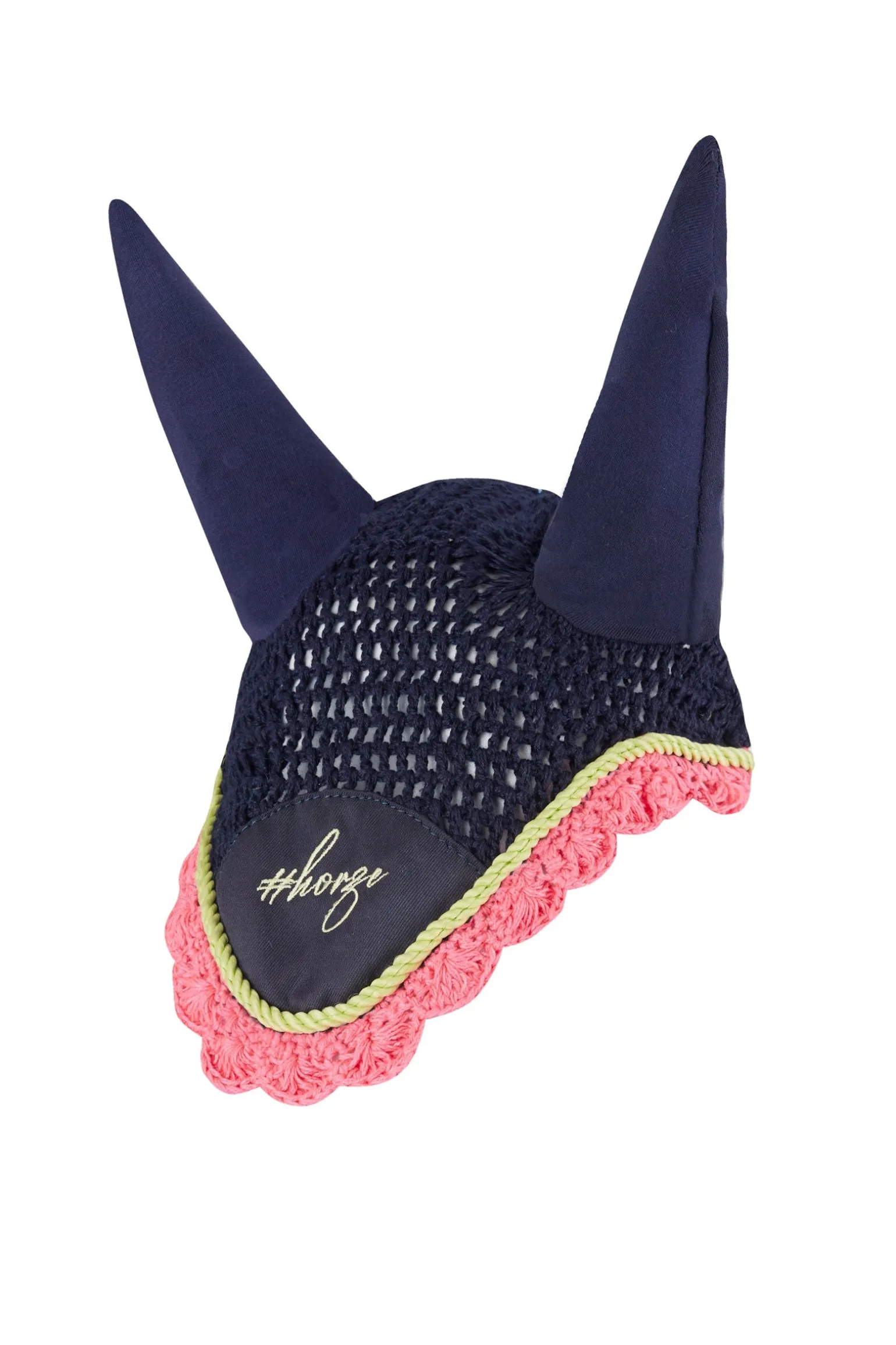 Klassisches gehäkeltes Hauptteil mit #Horze-Stickerei auf dem Schild. Der dehnbare Stoff um die Ohren erhöht die Passform und den Tragekomfort.
