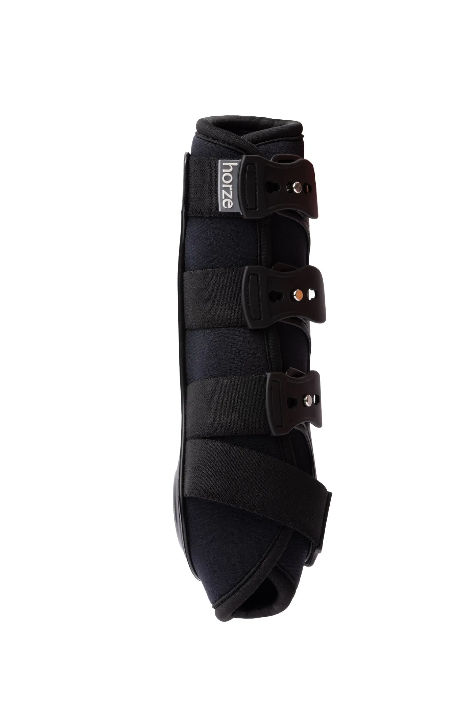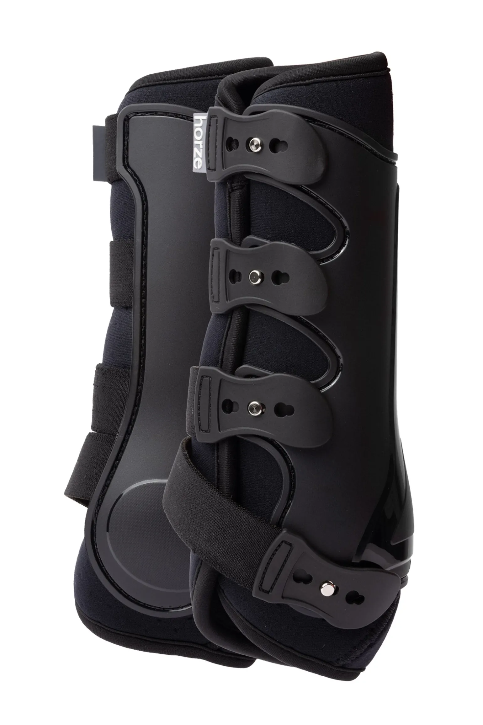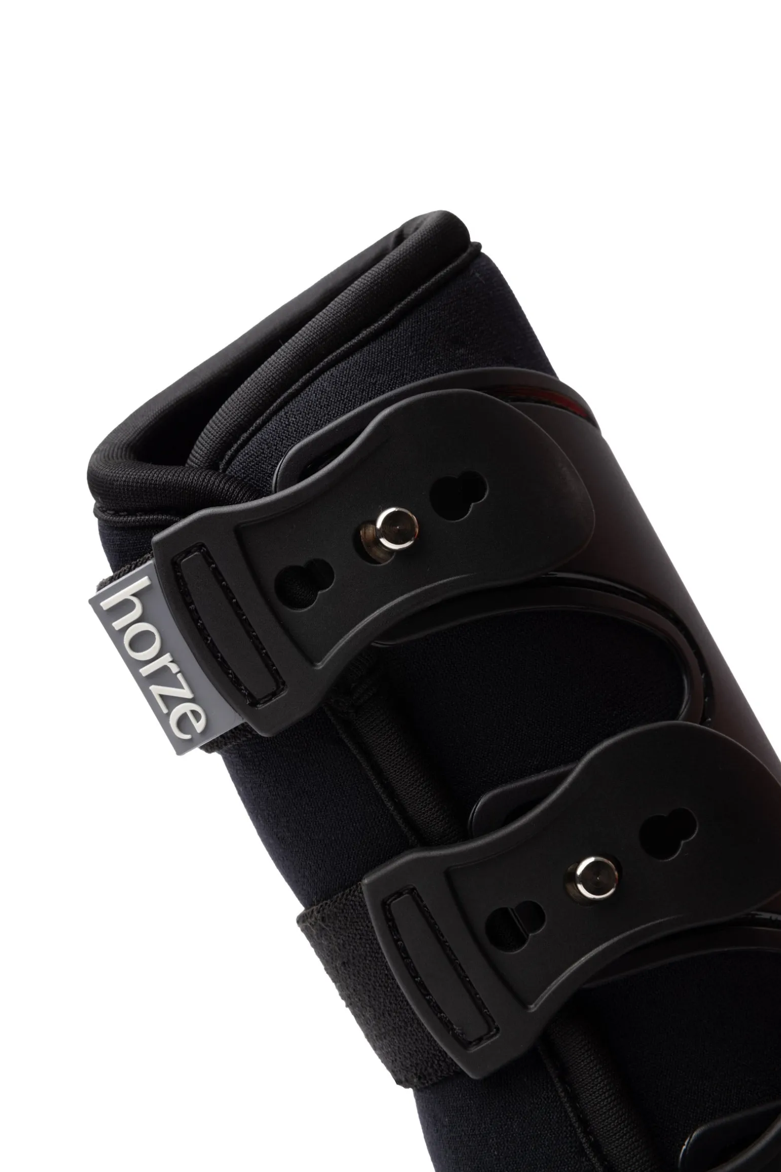 Diese Gamaschen vereinen die Funktionen von Springgamaschen und Dressurgamaschen und bieten vielseitigen Schutz für dein Pferd. Vier doppelt elastische Riemen mit Clip- und Pin-Verschluss sorgen für einen sicheren und individuell anpassbaren Sitz. Geformtes, perforiertes und gefüttertes Neopren ermöglicht eine optimale Luftzirkulation und Feuchtigkeitsregulierung. Die weiche Polsterung und stoßabsorbierende Eigenschaften bieten maximalen Komfort und Schutz. Pflegeleicht und schnelltrocknend – perfekt für den täglichen Einsatz.