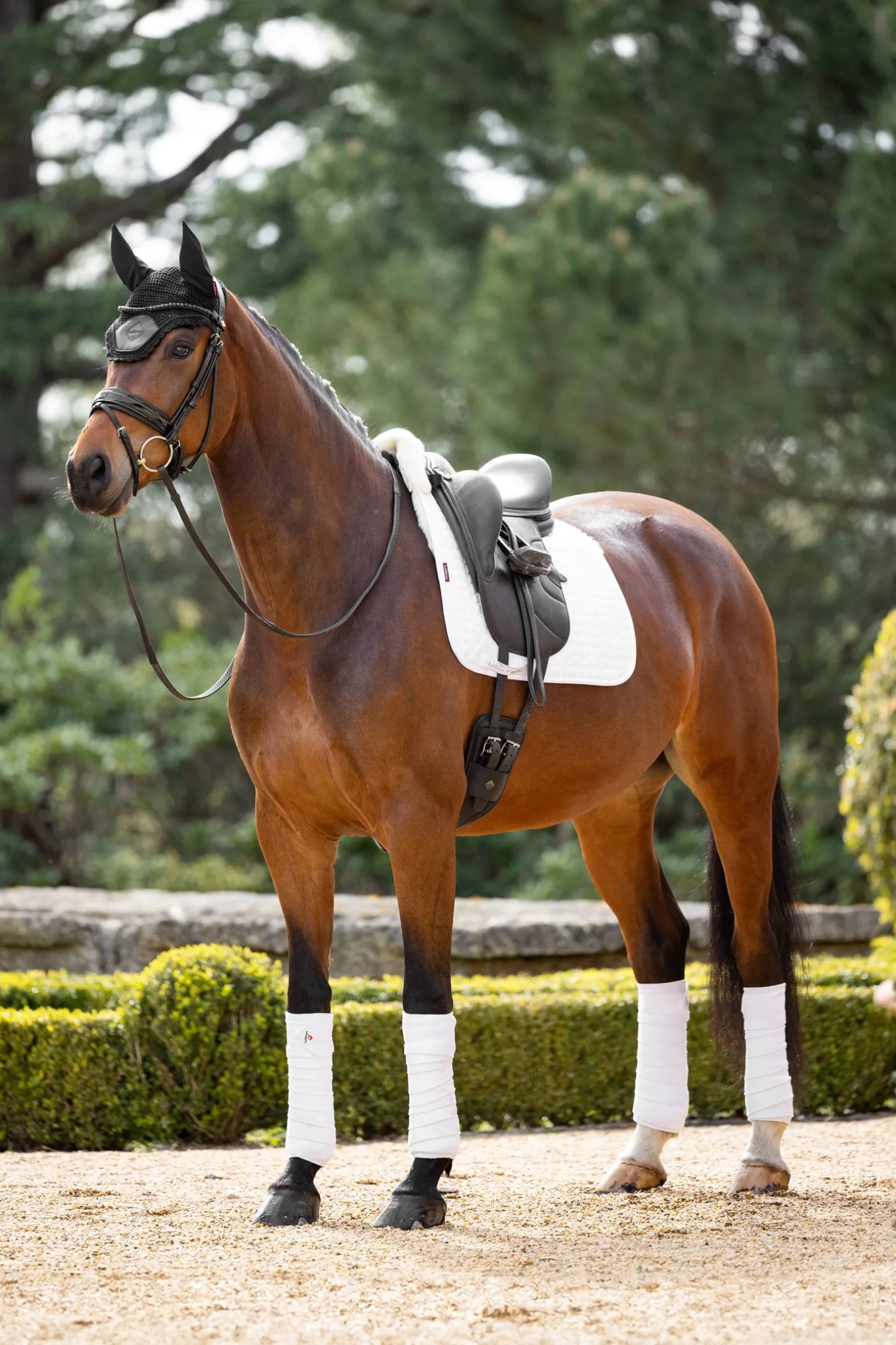 Entferne Haare, Schmutz und getrockneten Schweiß mit einer harten Bürste. Maschinenwäsche bei 30° im Schon- oder Wollwaschgang oder Handwäsche. Verwende Lemieux Wool Wash (erhältlich bei LeMieux). Nach dem Waschen den Baumwollstoff glätten. An der Luft in der Nähe einer Wärmequelle trocknen. Niemals im Wäschetrockner trocknen. Vermeide die Verwendung von starken Weichspülern. Bitte achte darauf, dass alle Klettverschlüsse vor dem Waschen fest geschlossen sind. Achtung: In seltenen Fällen kann Farbe von schwarzen Wollartikeln auslaufen und einen leichten blauen Schimmer hinterlassen. Graue Decken können Flecken bekommen.