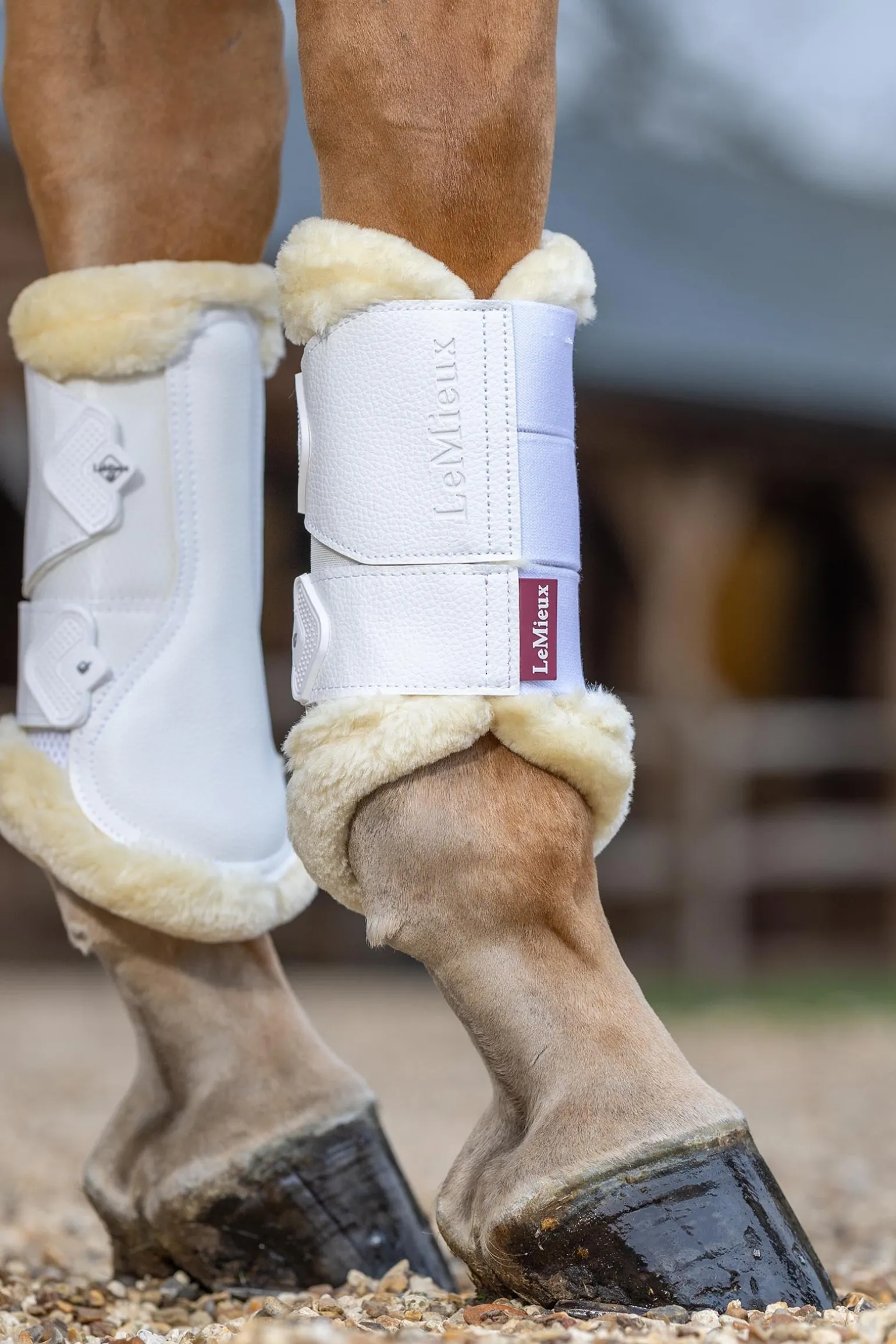 Das robuste, langlebige PU-Leder schützt vor Stößen und Schlägen und der neue, flache Klettverschluss verhindert die Aufnahme von Material auf dem Reitboden. Der für Le Mieux charakteristische doppelte obere Riemen sorgt für eine schnelle und einfache Befestigung. Starke, elastische Riemen halten die Stiefel an Ort und Stelle, ohne sie zu fest anzuziehen, und sind mit Gummizügen versehen, die ein bequemes Ausziehen ermöglichen.