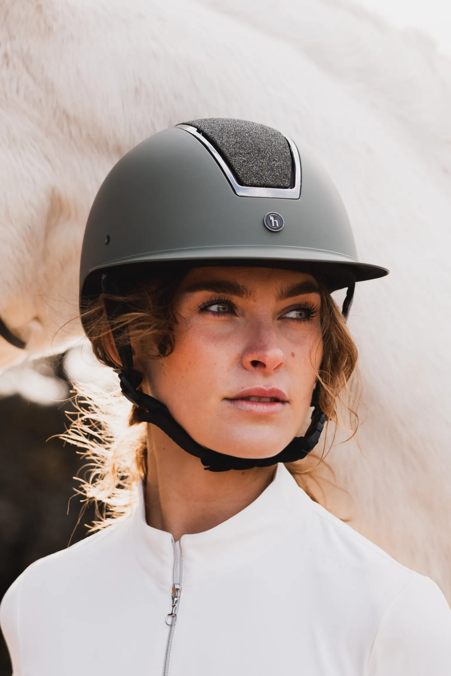 Der Horze Monarch Glitzer Reithelm wurde konzipiert, um hohen Belastungen standzuhalten. Die Belüftungsschlitze bieten Komfort und halten deinen Kopf durch eine hohe Luftzufuhr kühl. Die metallischen Flächen mit Glitzerpartikeln auf der Außenschale geben deinem Reitoutfit eine Spur Eleganz und sind in verschiedenen stylischen Farben erhältlich. Der breite Schirm sorgt für zusätzlichen Schutz. Das Größenverstellrad ermöglicht den perfekten Sitz. Das Memory Foam Futter bietet deinem Kopf Komfort und liefert bei einem Sturz den nötigen Schutz. Die flexible Krempe sorgt für zusätzliche Sicherheit.